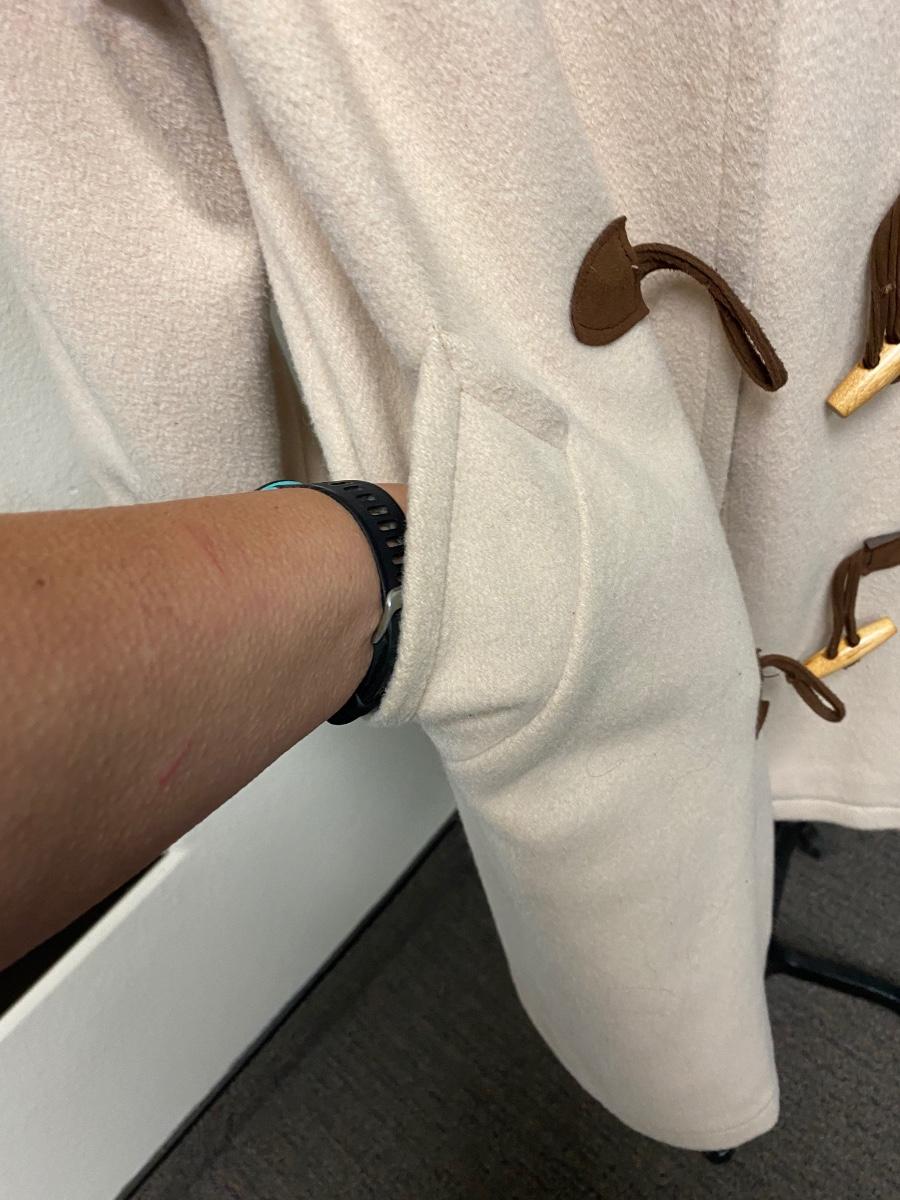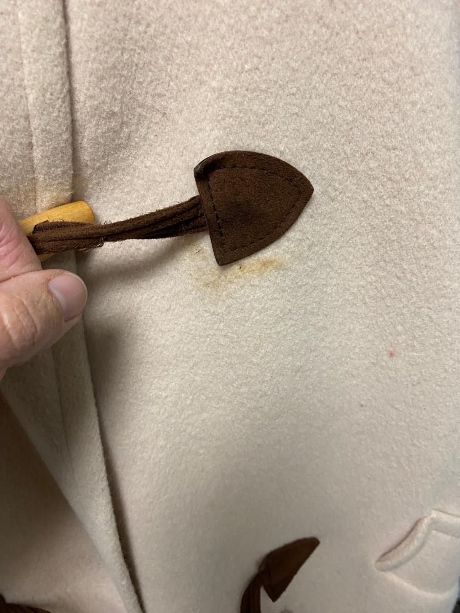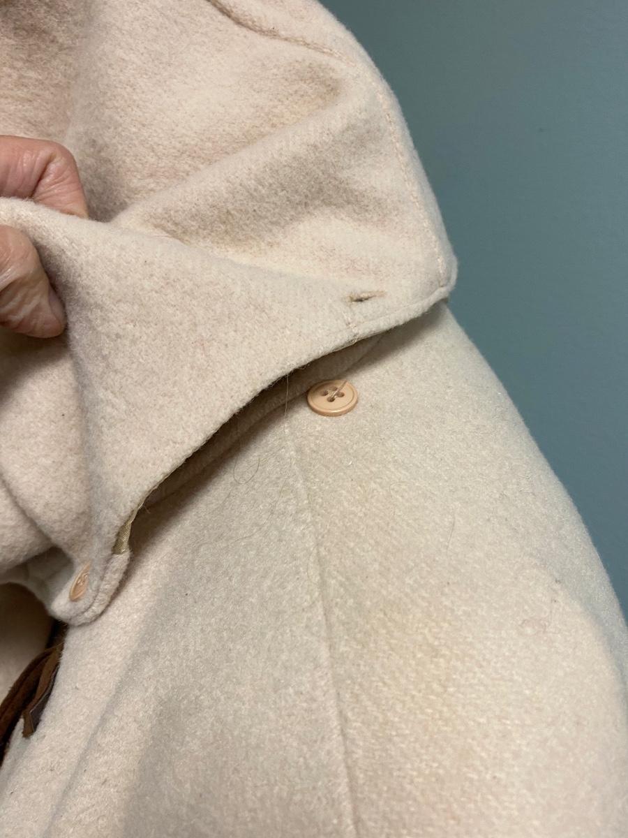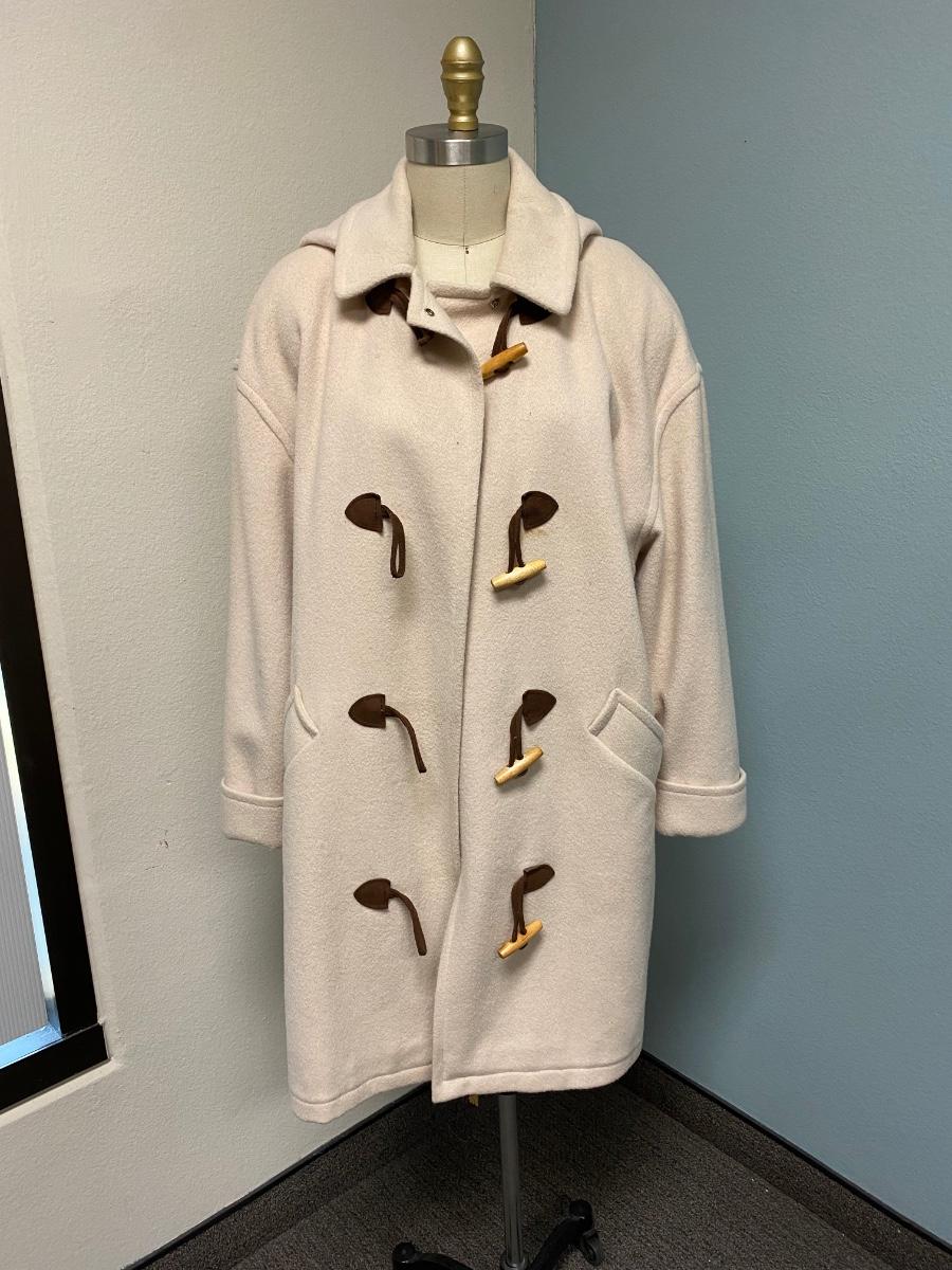 J.G. Hook Off White Wool Blend Knee Length Winter Trench Coat Jacket with Hood. Removeable hood. A couple of spots but they look surface, may just need to be cleaned. Size 10.