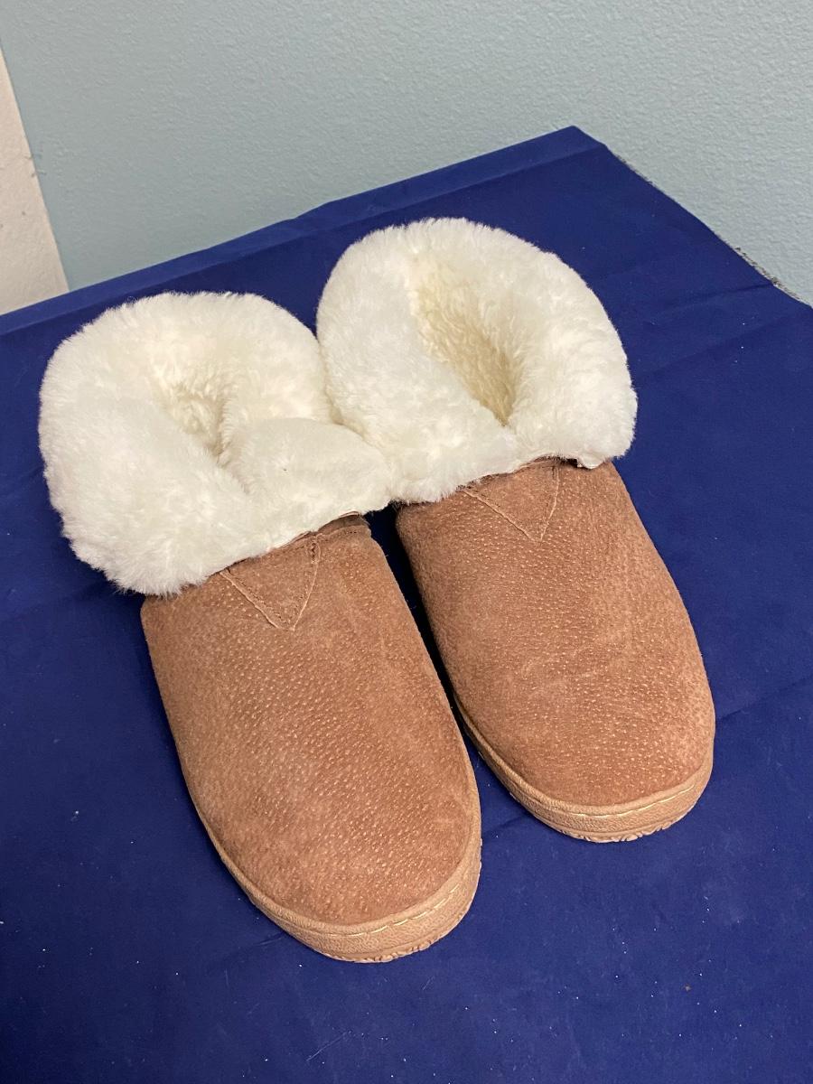 Women's Size 10 Leather Fleece Lined Slip-on Slippers Old Friend Footwear. In good condition.