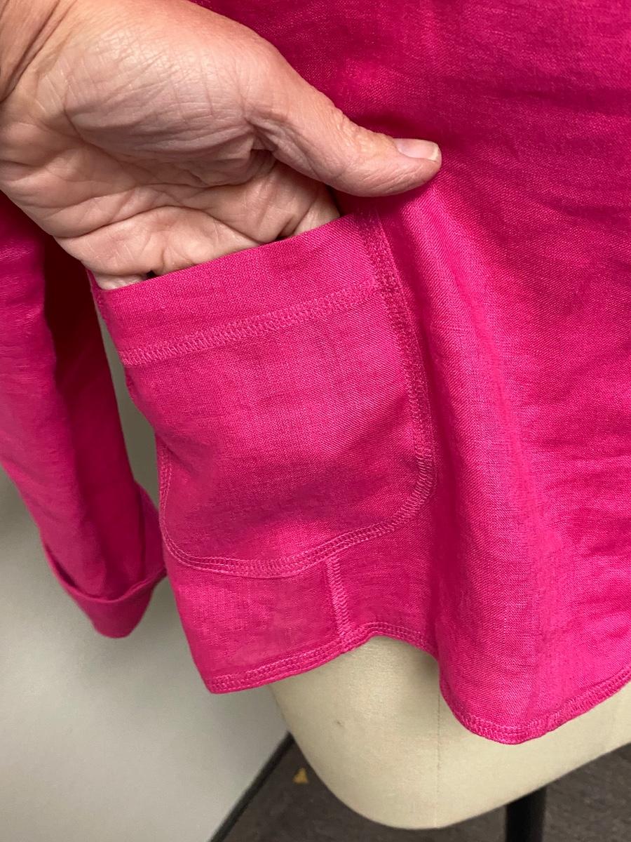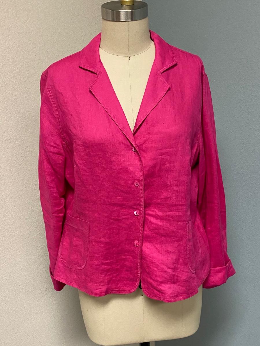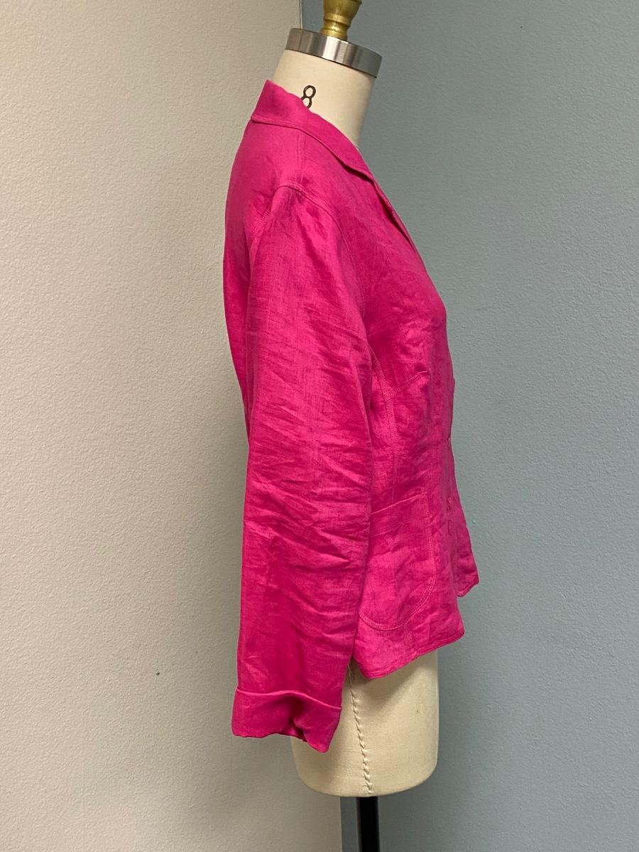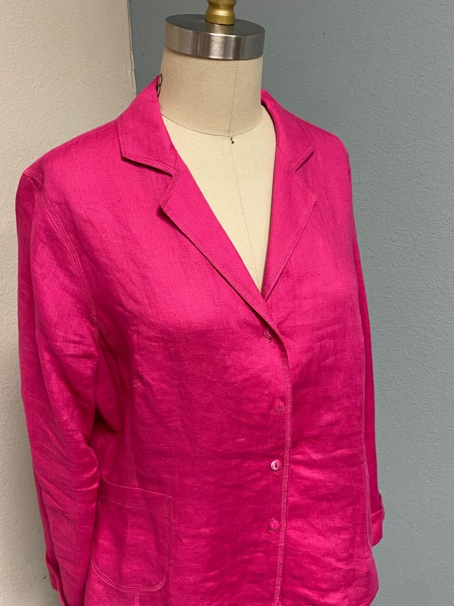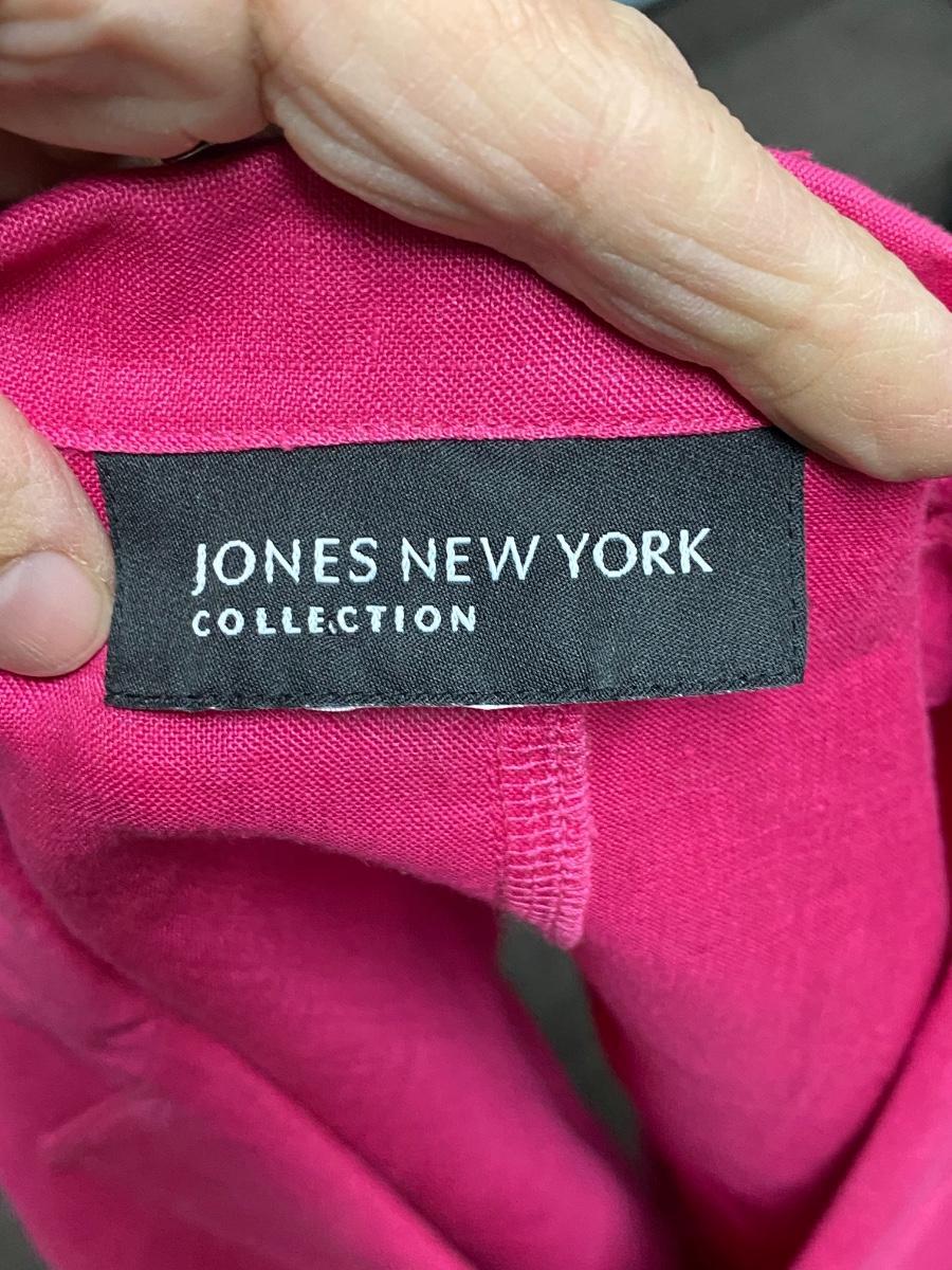 Bright Pink Jones New York Collection Linen Button Front Jacket Blouse. No size, looks large.