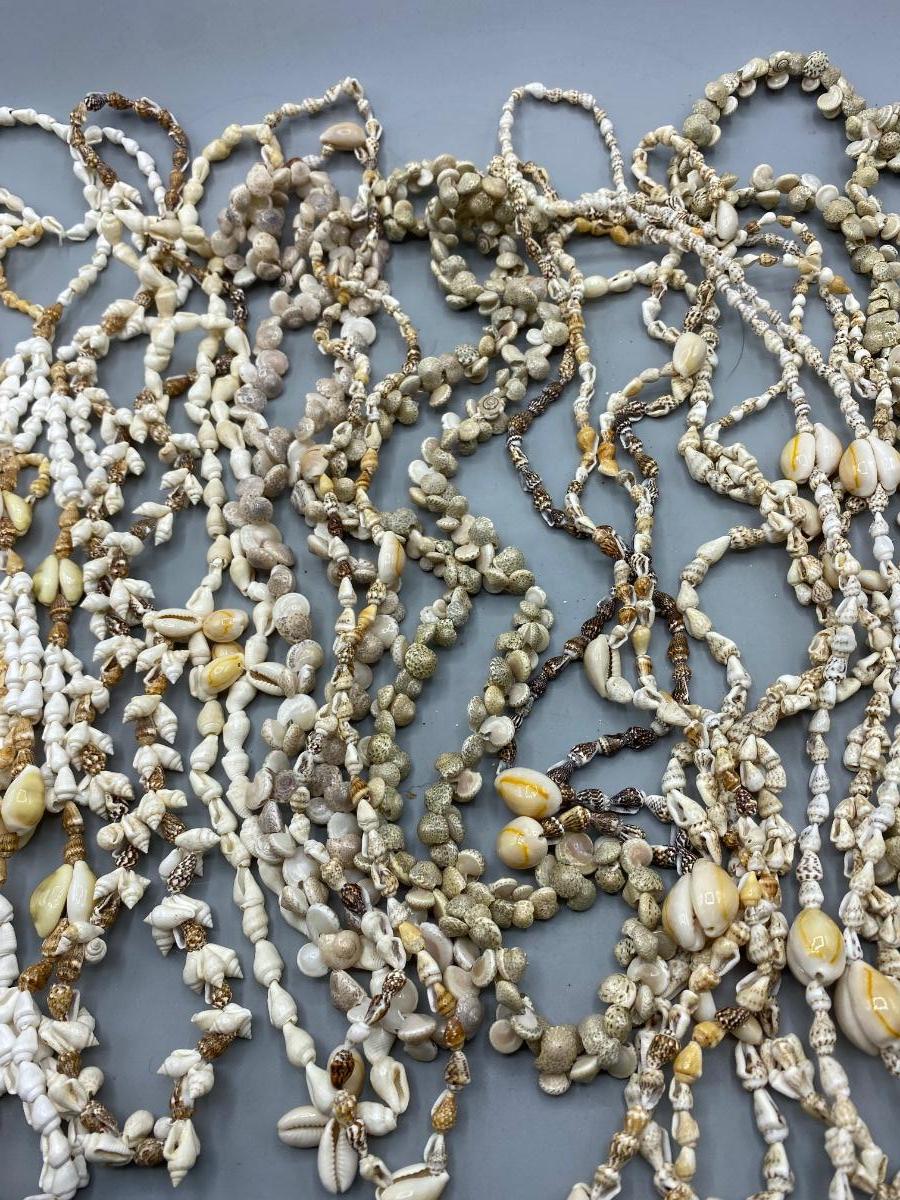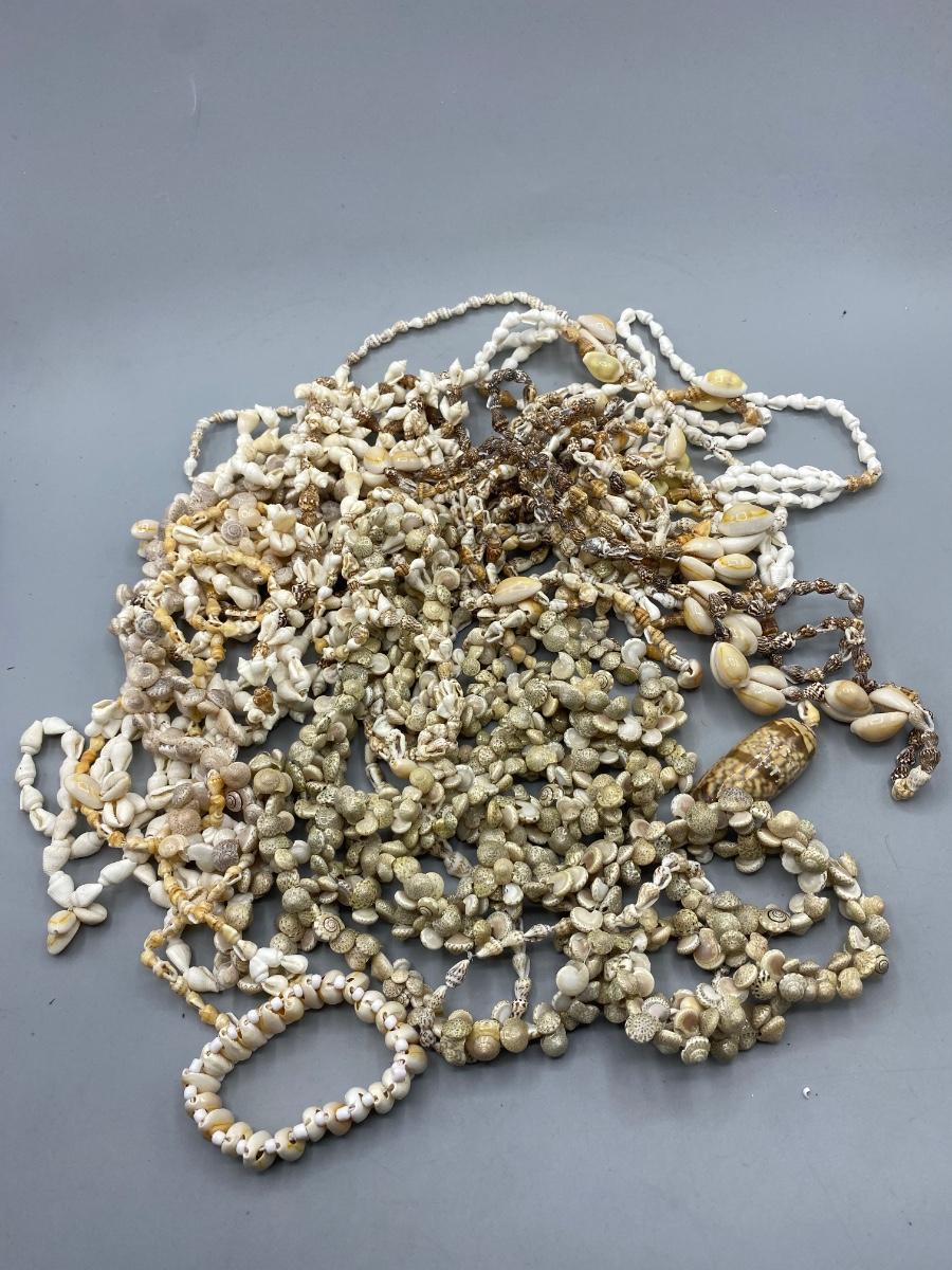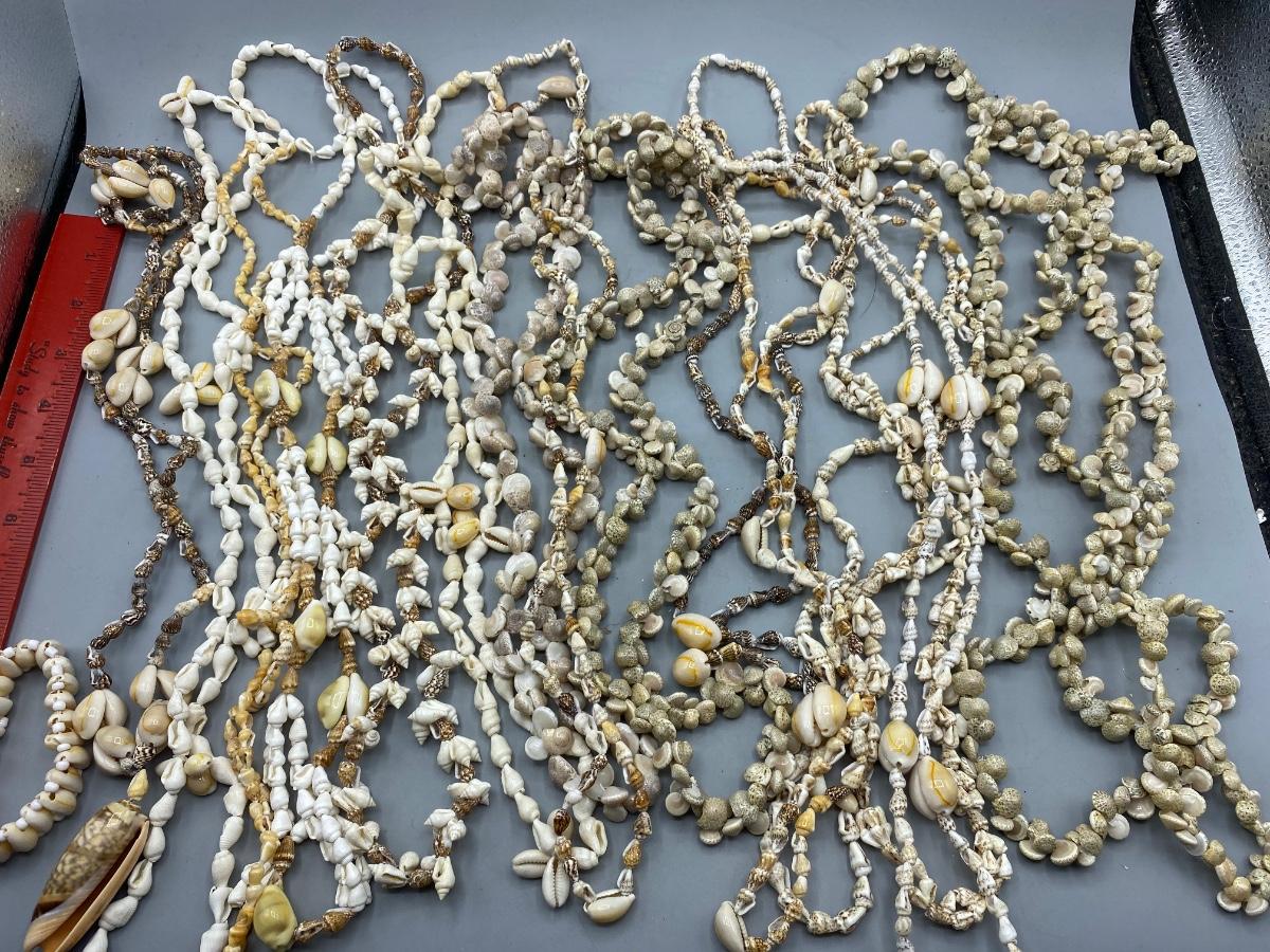 Large Mixed Lot of Shell Strand Necklaces. Most are different shell patterns only a couple duplicate designs. Good condition.