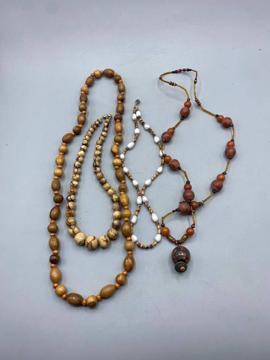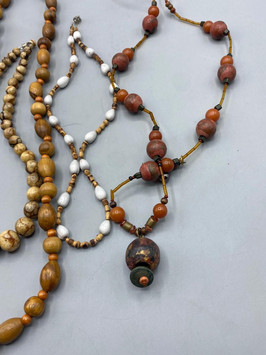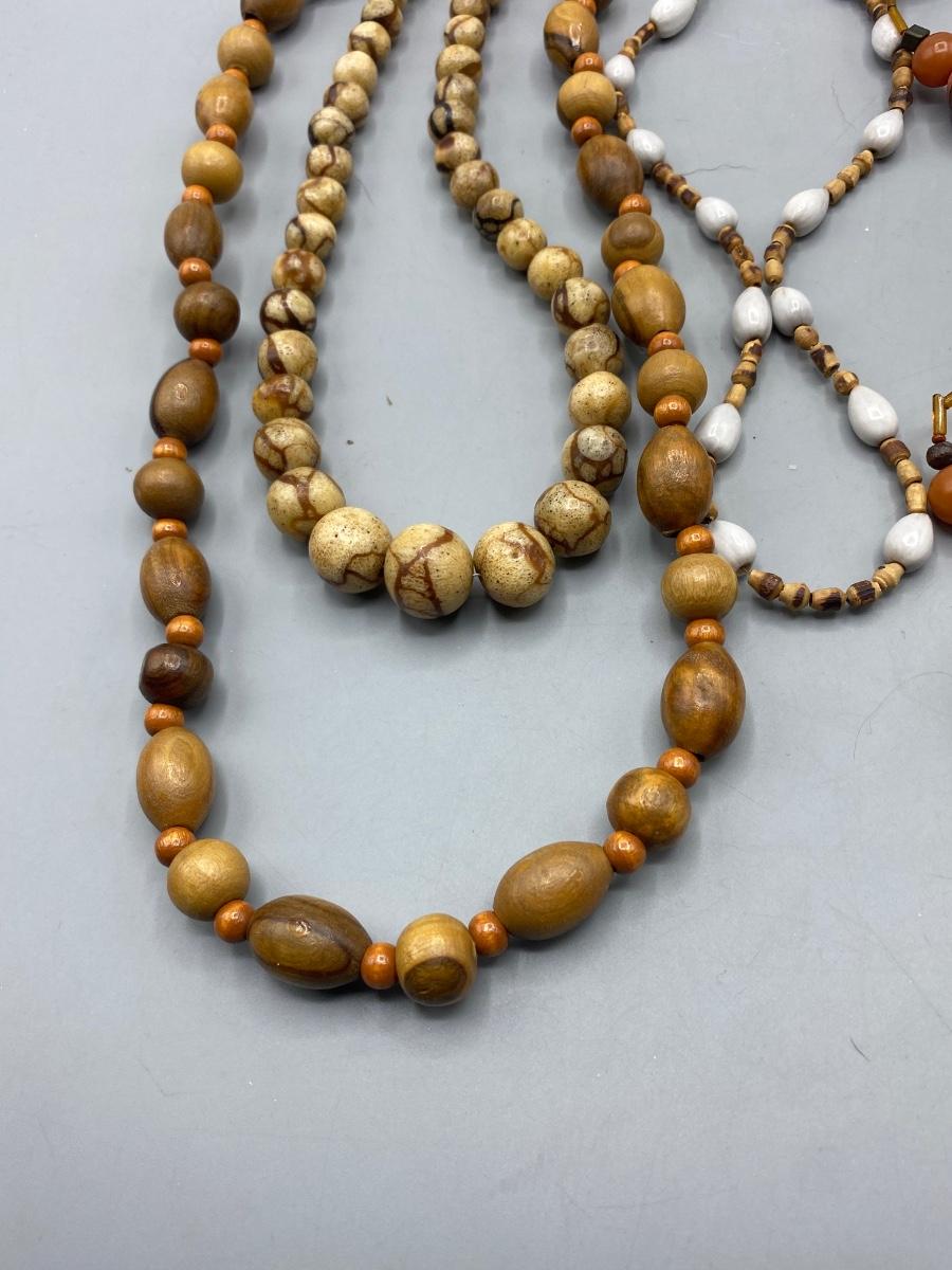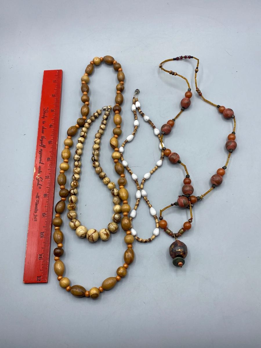 Set of 4 Natural Material Wood Stone Beaded Necklaces. Each one different. See photo's.