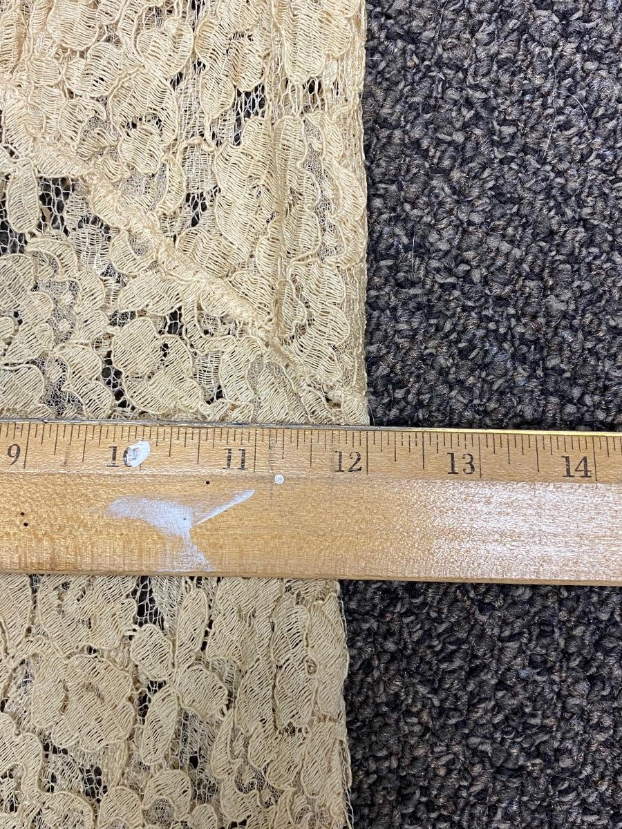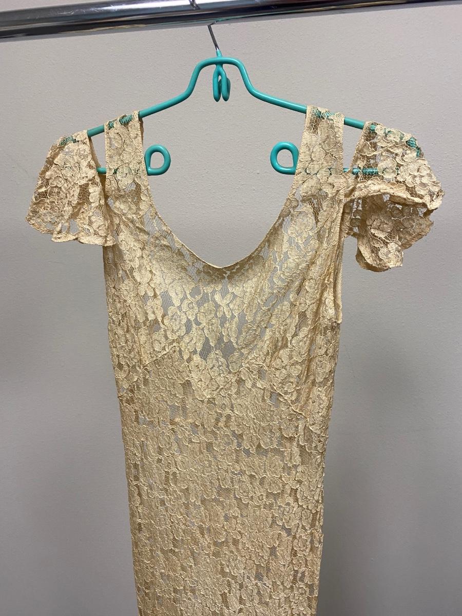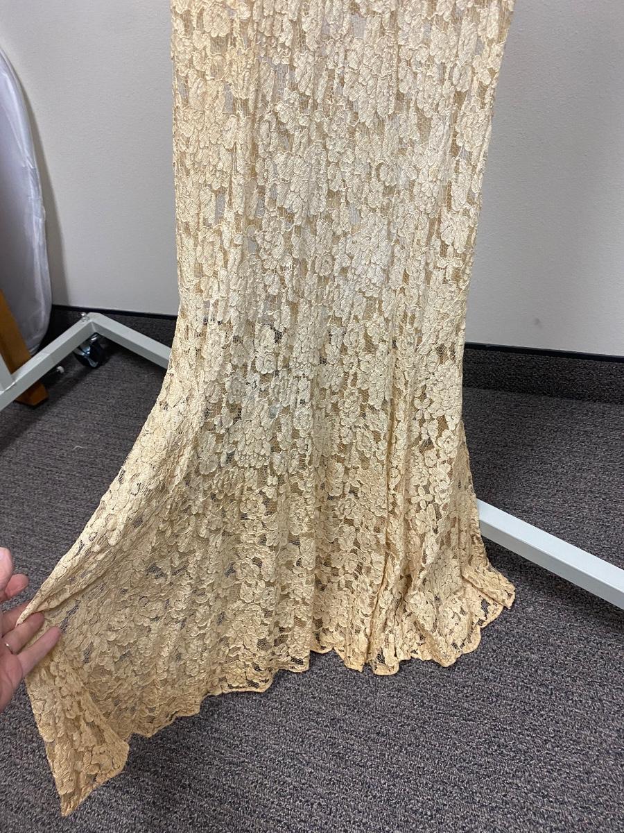 Antique Vintage Victorian Floor Length Floral Lace Dress Unlined. Fitted floor length dress. There is discoloration but no obvious stains, didn't notice any major holes either. Small body con style, About 14" at armpit, 12" at waist.