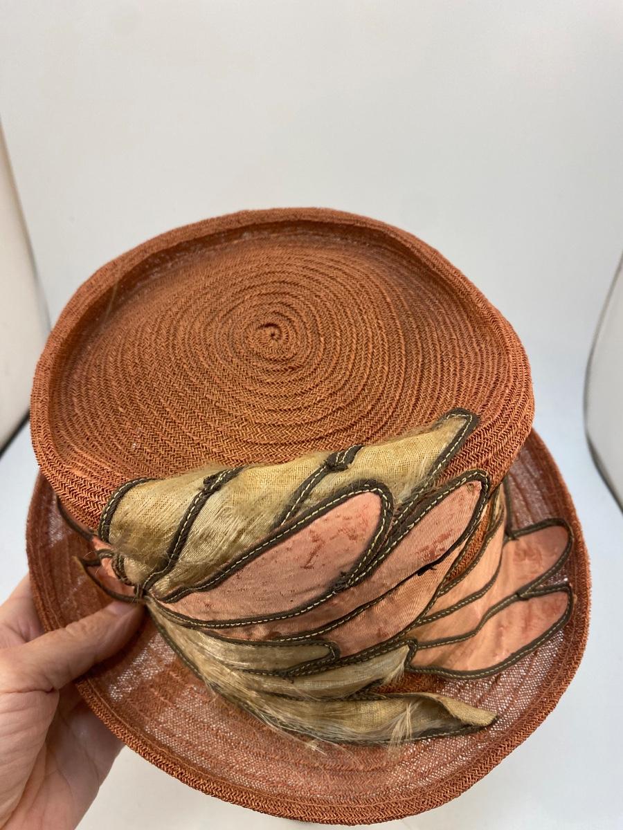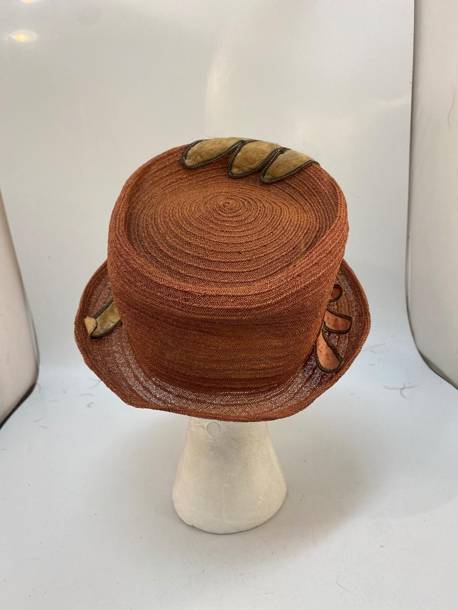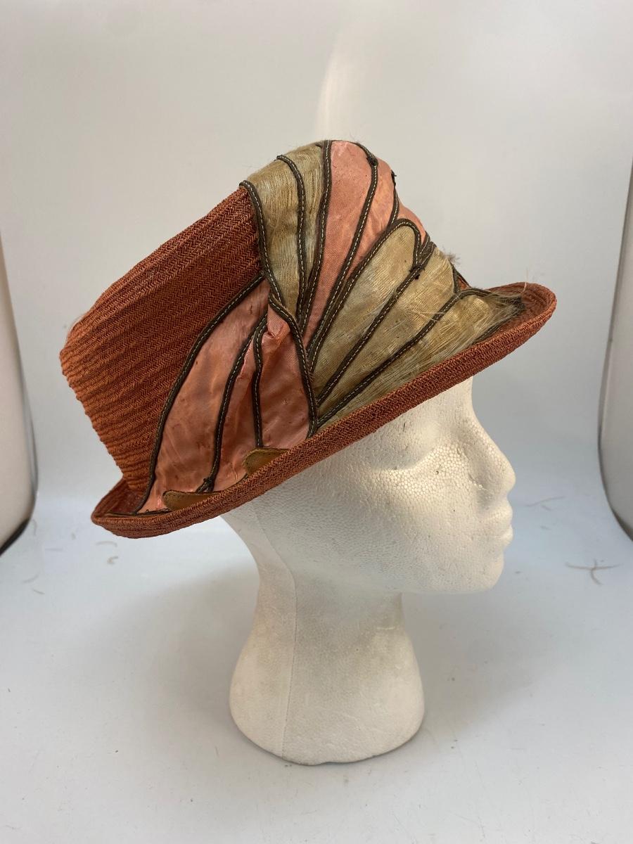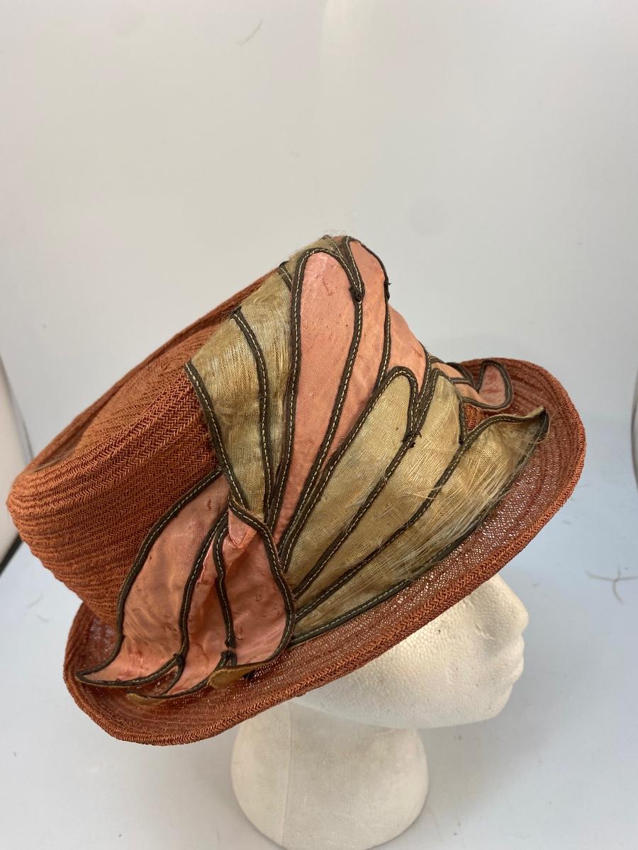 Vintage Antique Straw Hat Fedora Cap Dark Dusty Rose Pink. In good vintage condition. No holes but discolor from age. The applique fabric does show signs of age.