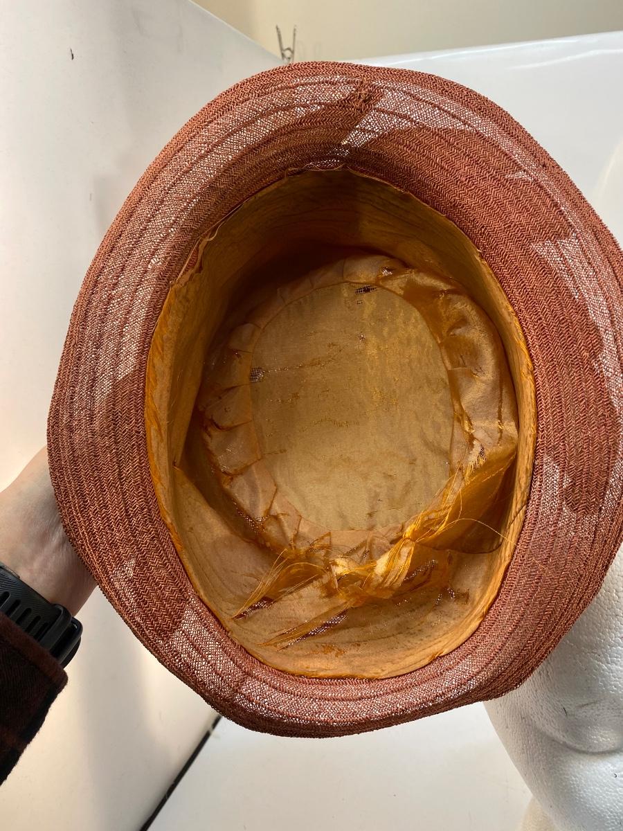 Vintage Antique Straw Hat Fedora Cap Dark Dusty Rose Pink
