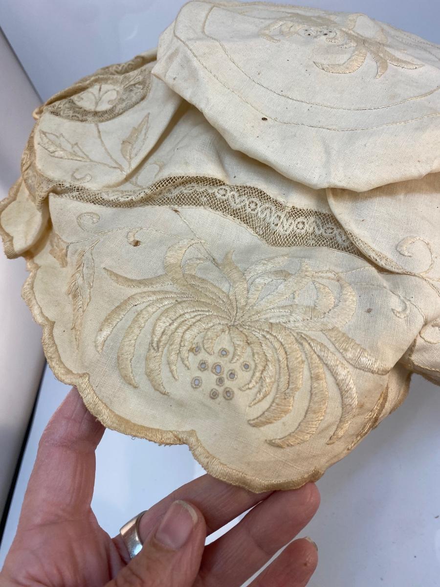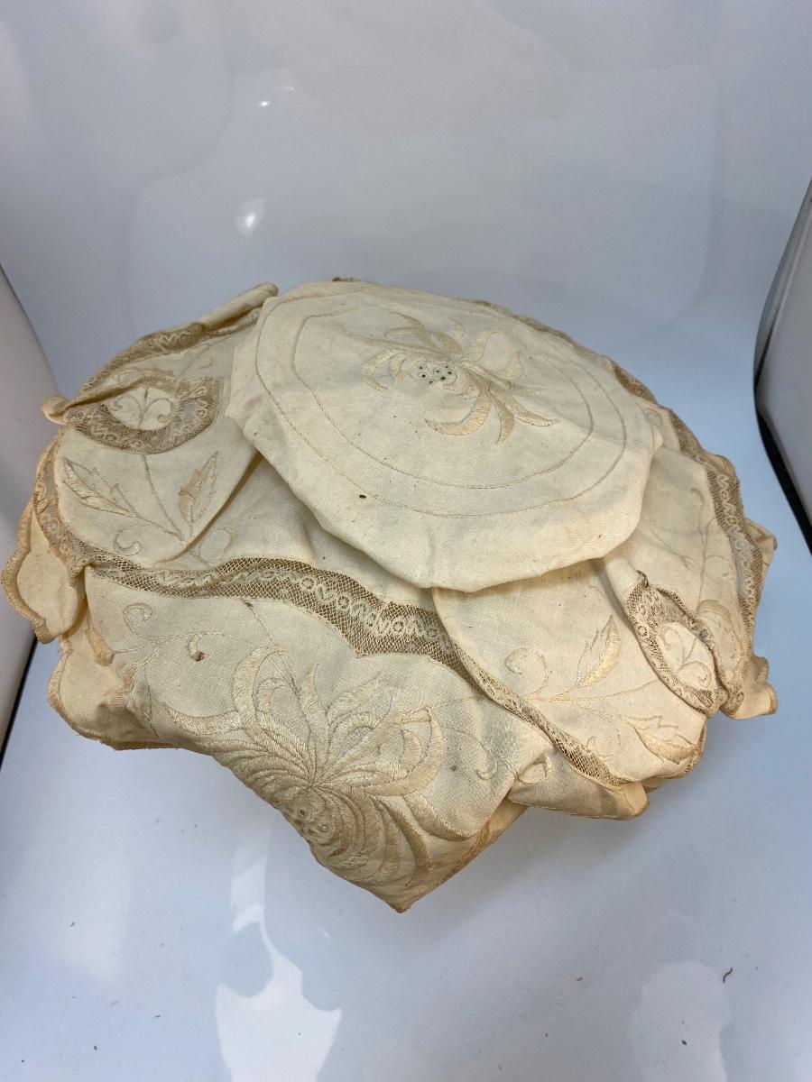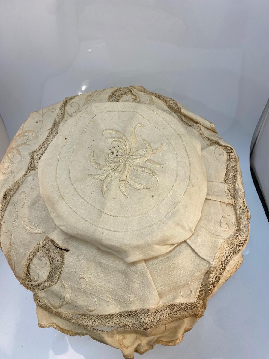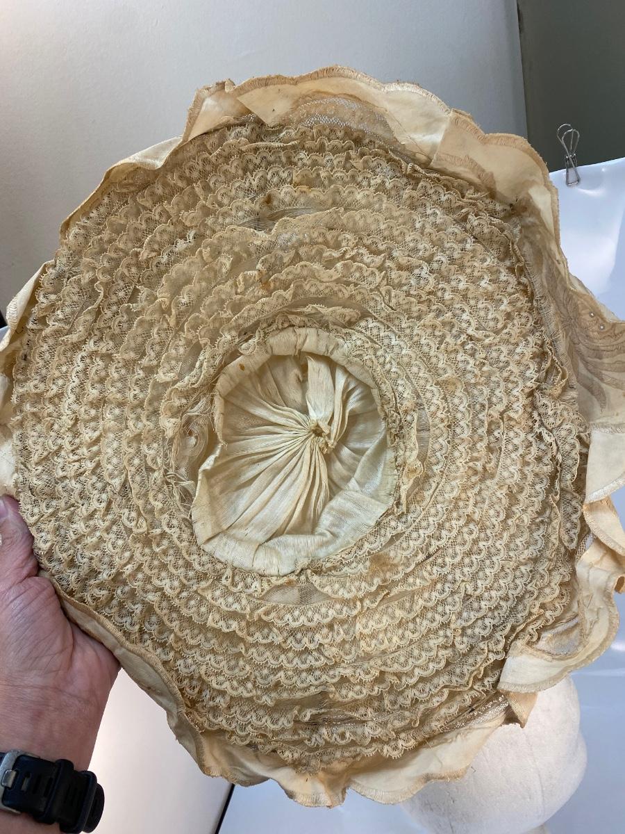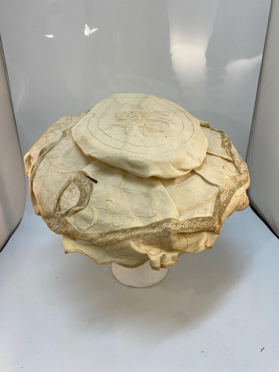 Vintage Bergere Intricate Flower Design Large Brim Victorian Hat Cap