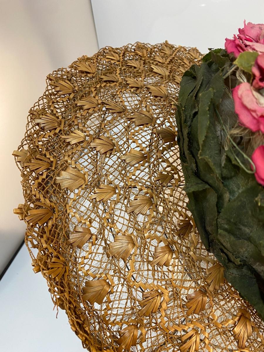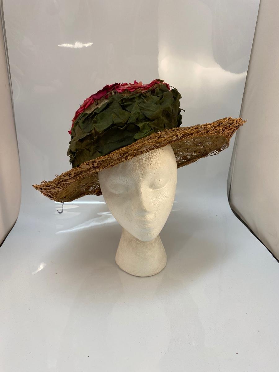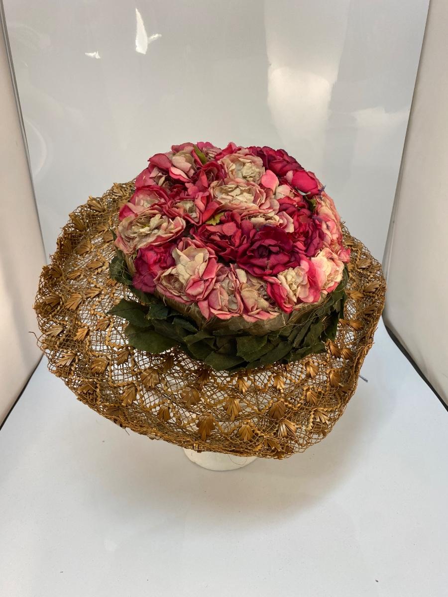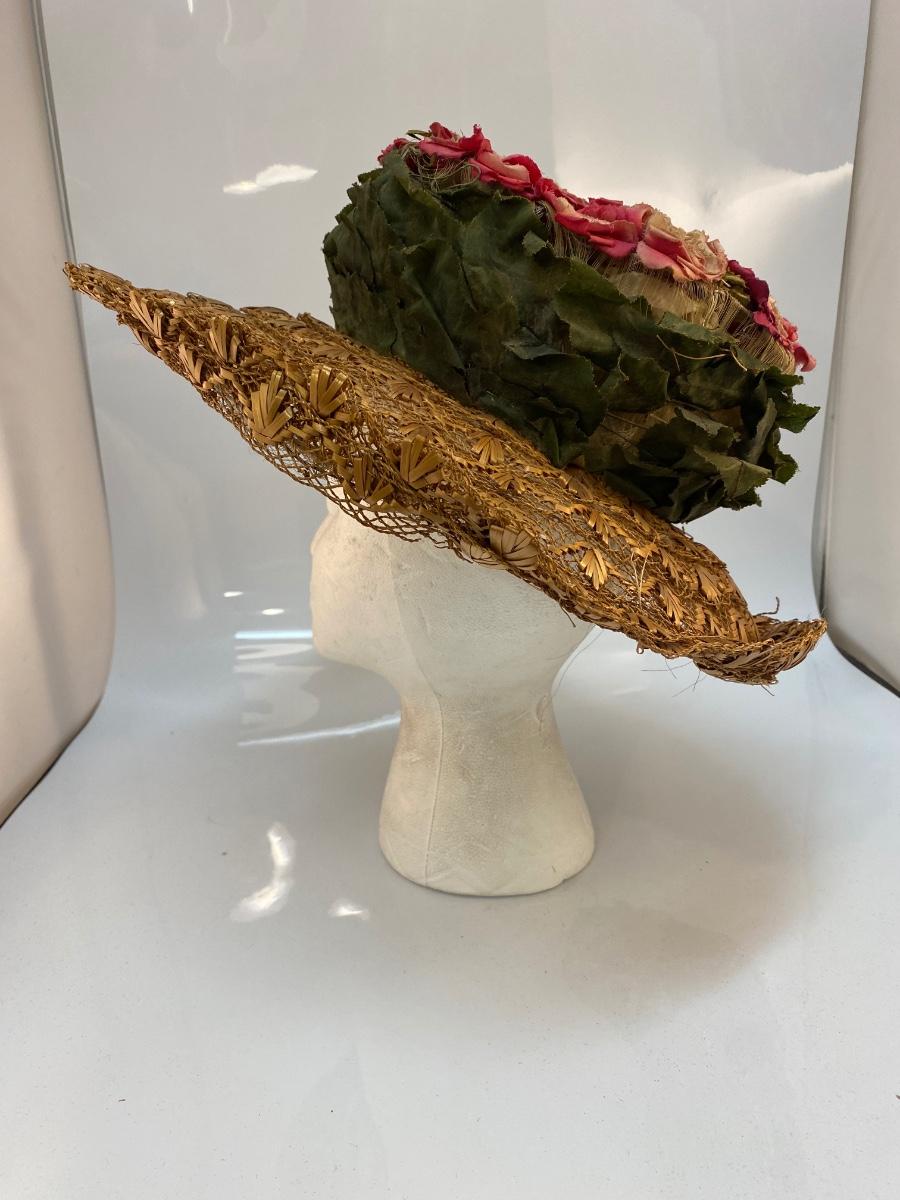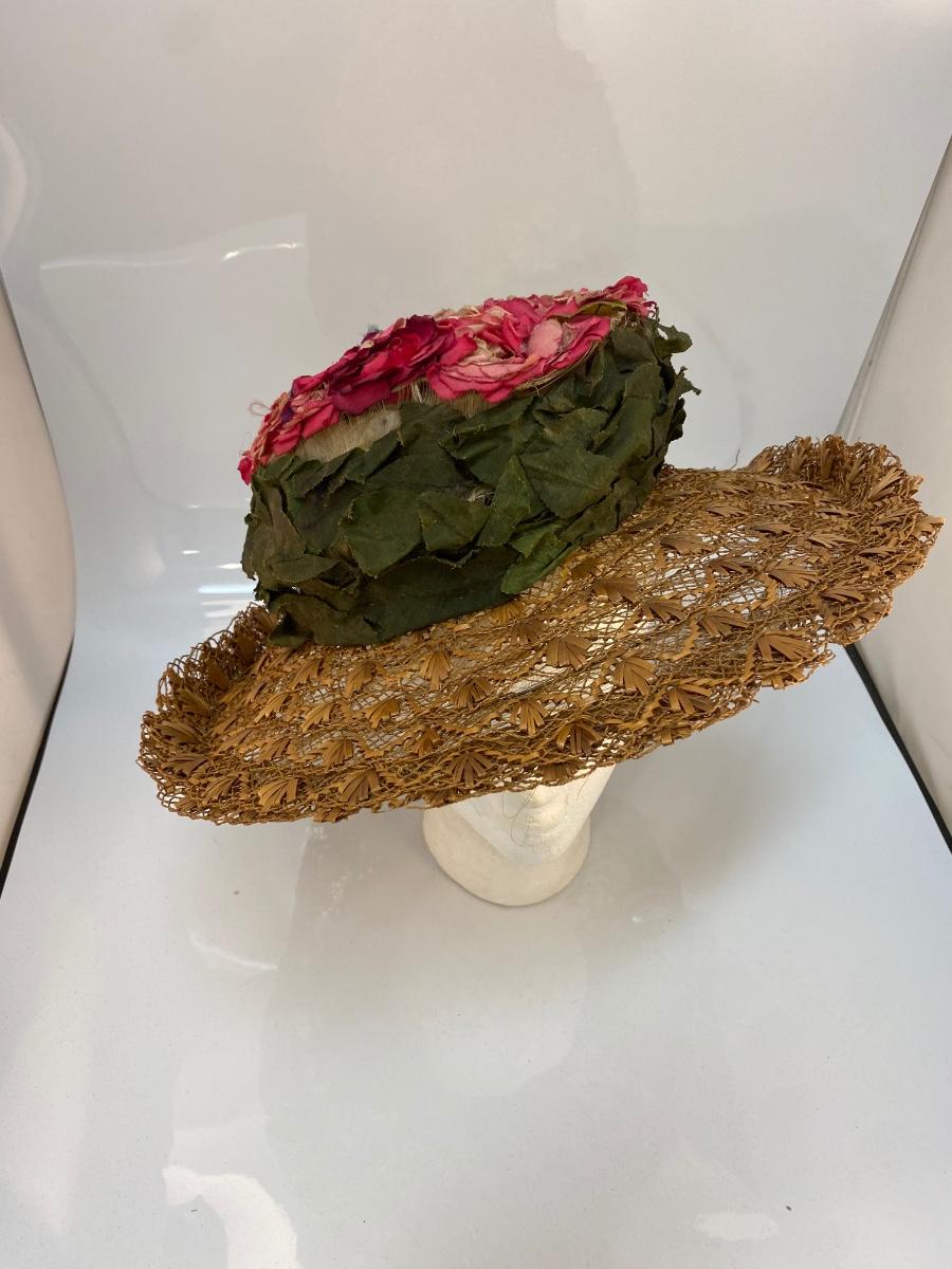 Vintage Victorian Weaved Fabric Flower Roses Wrap Around Sun Dress Fedora Hat