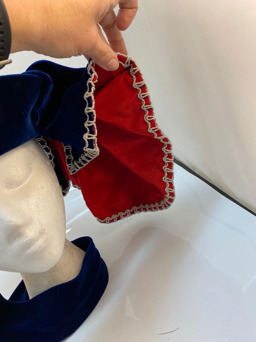 Vintage Royal Blue Velvet Medieval Royal Court Ren Faire Hat. Great for cosplay, costume, or stage.