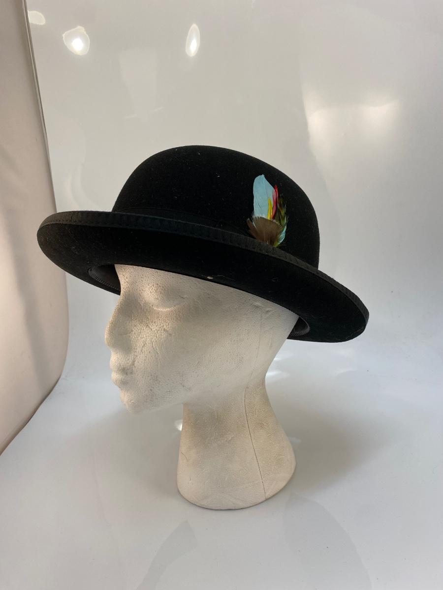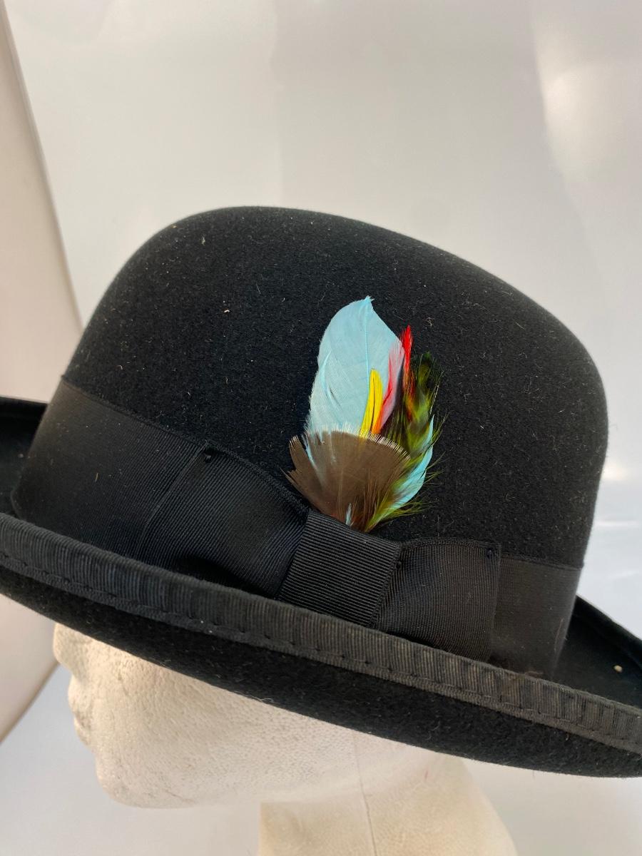 Vintage Antique Black Felt Men's Bowler Derby Hat Bollman USA. In very good vintage condition. Colorful feather side detail. Size Medium. 100% wool.