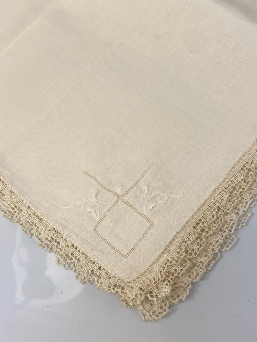 Vintage Lace Edge Embroidered Set of Off-White Ivory Linen Dinner Napkins