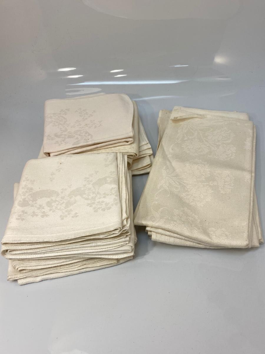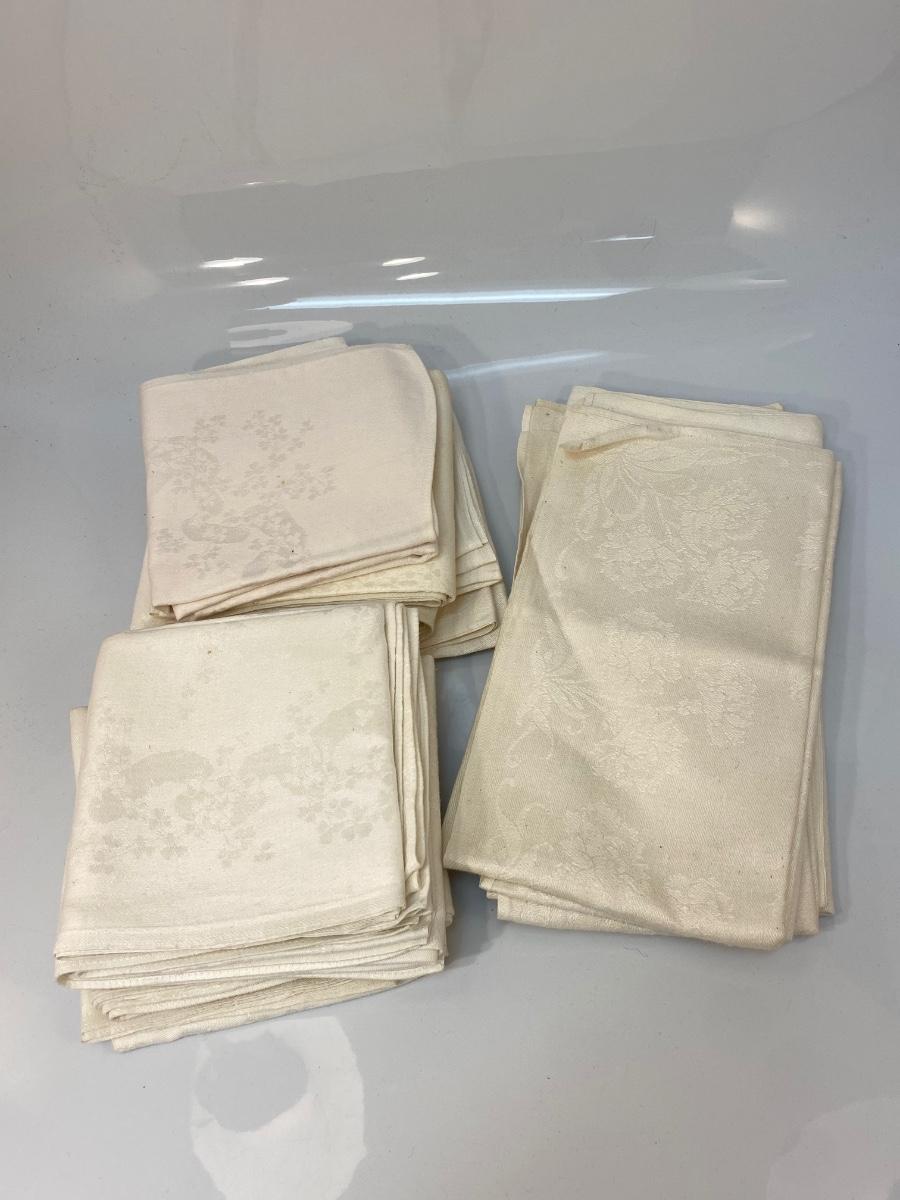 Large Lot of White on White Floral Damask Linen Dinner Napkins