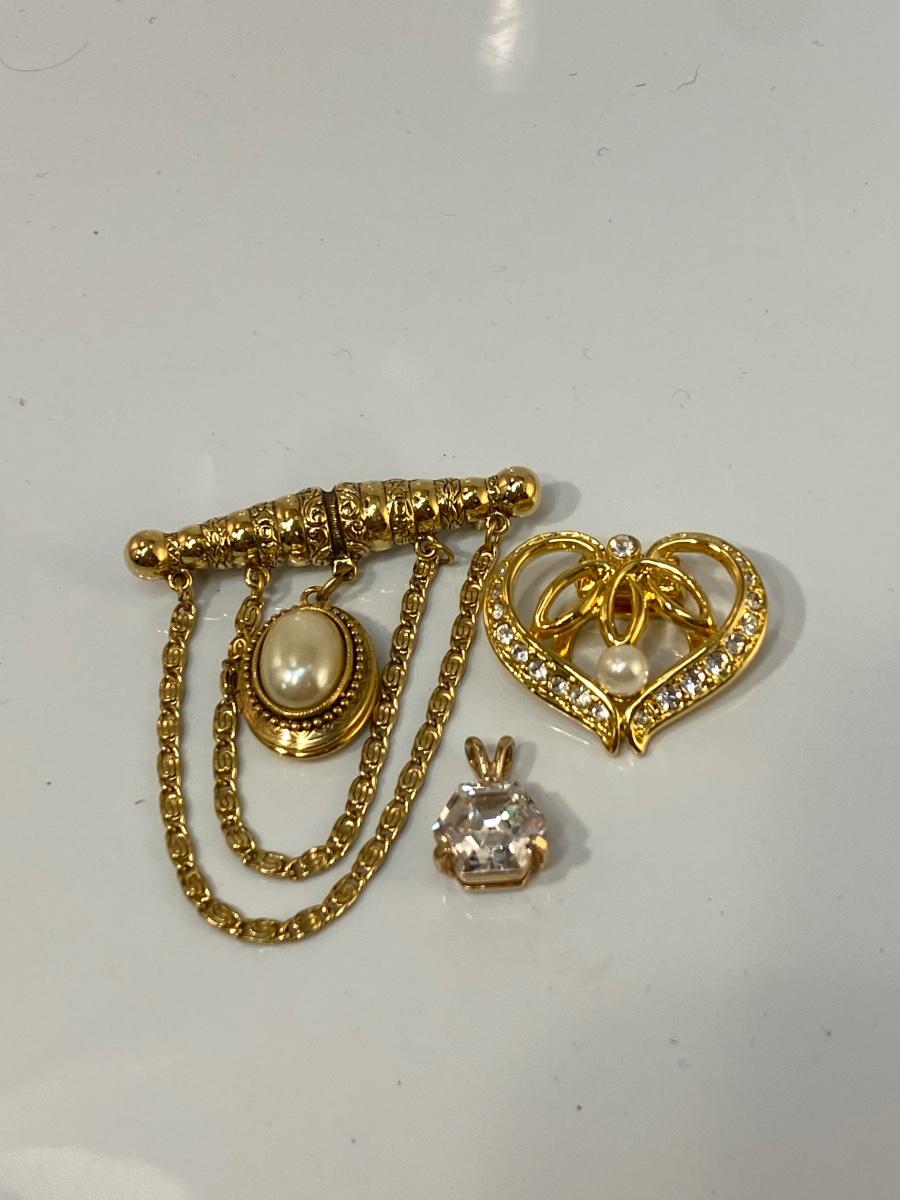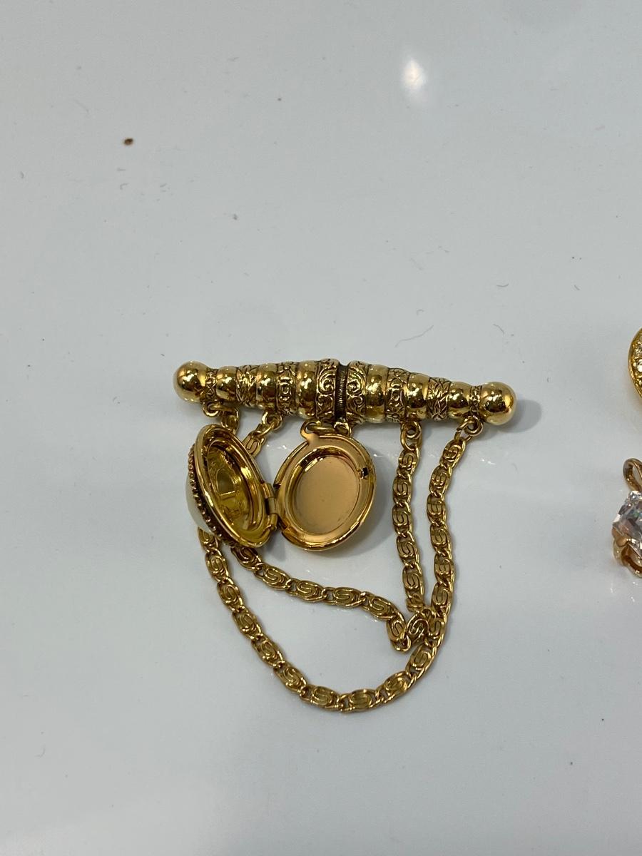 Gold Tone Fashion Jewelry Lot Pins Pendant Locket