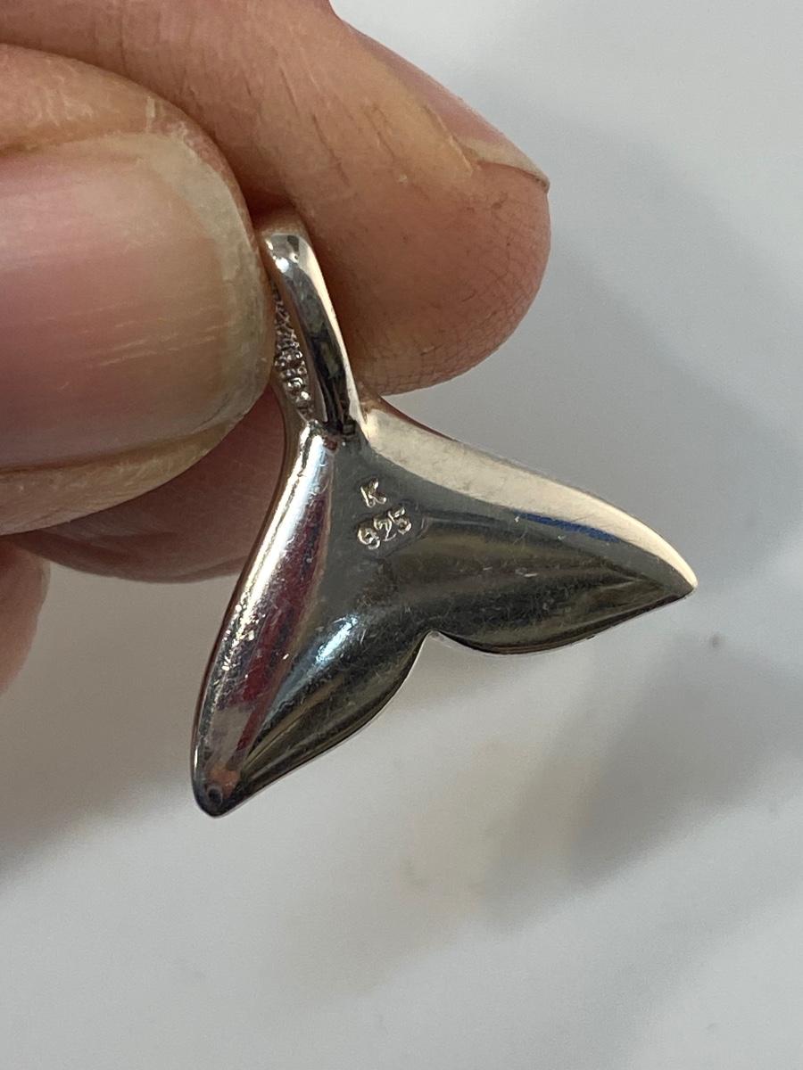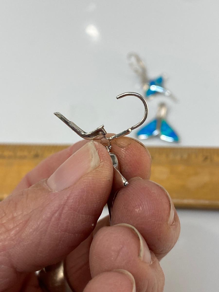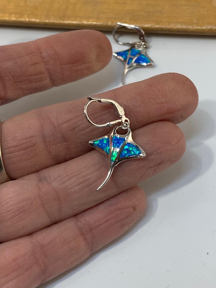 Sterling Silver & Opalescent Stone Manta Ray Earrings & Whale Tail Pendant. In good condition. Marked on the back.