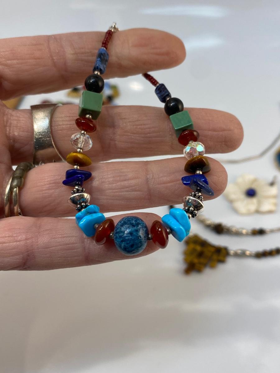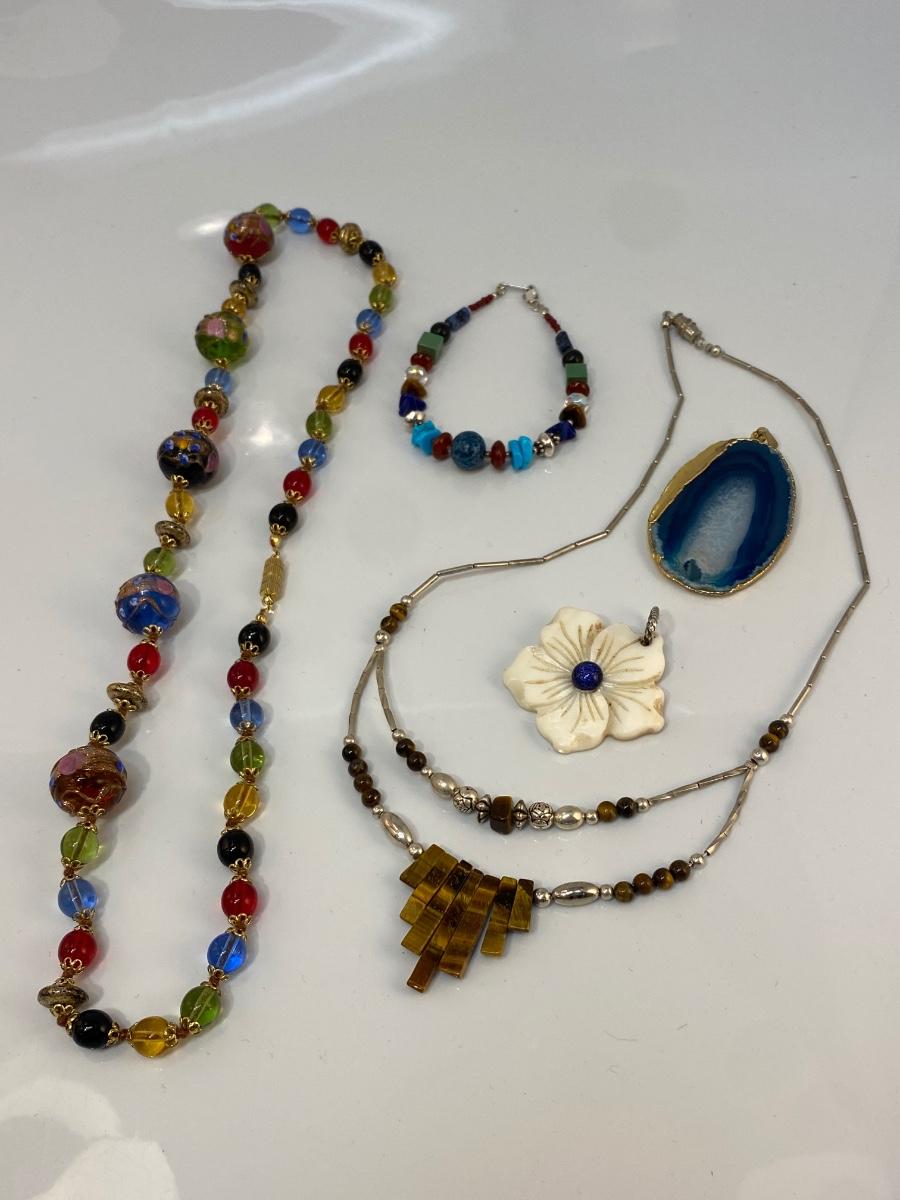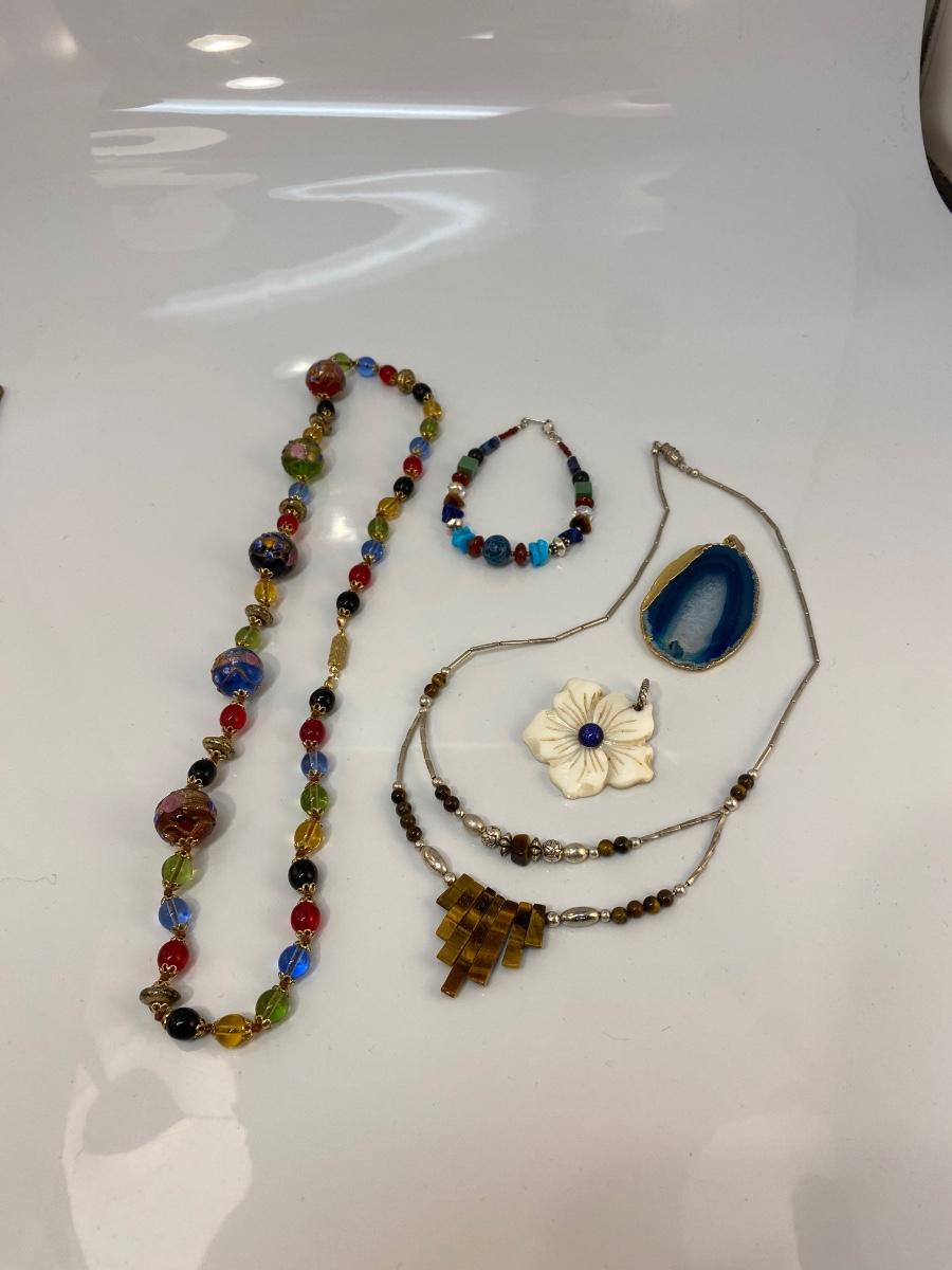 Mixed Lot of Fashion Jewelry Stone & Glass Bead. Two necklaces, a bracelet and two pendants. Good condition.