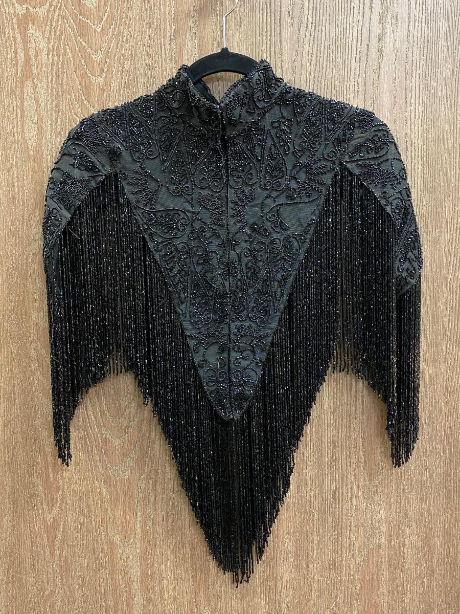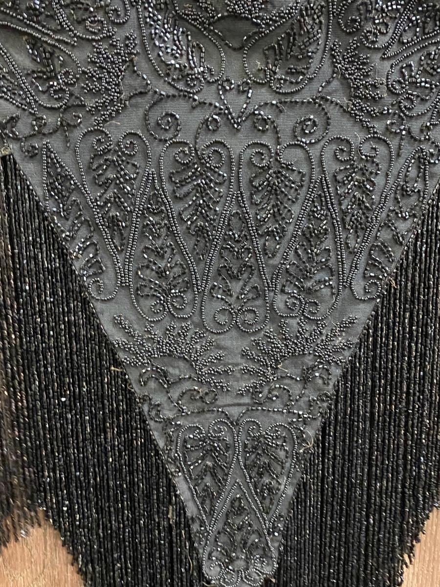 Vintage Antique Victorian Art Deco Black Beaded Fringed Cape Shoulder Wrap