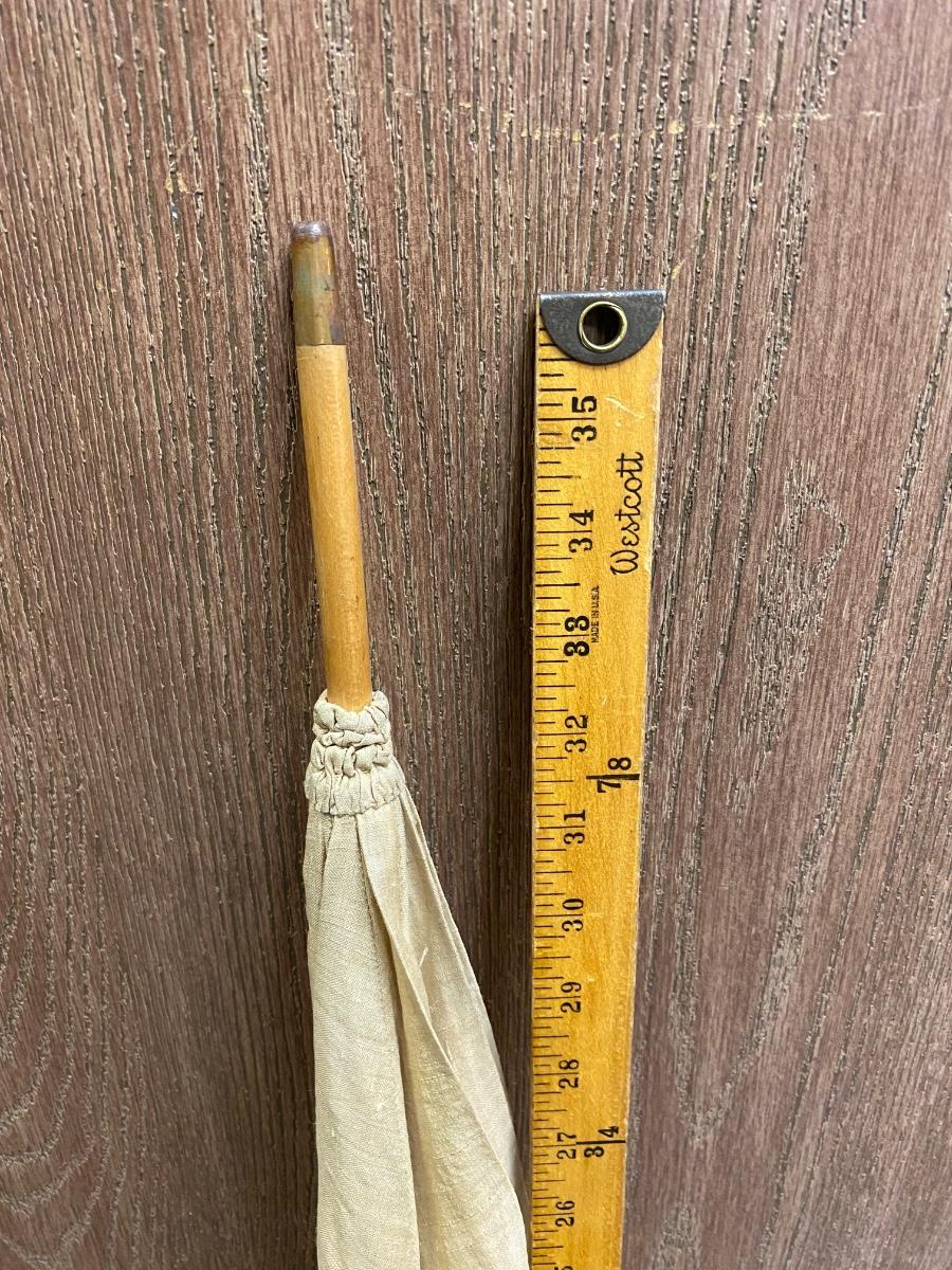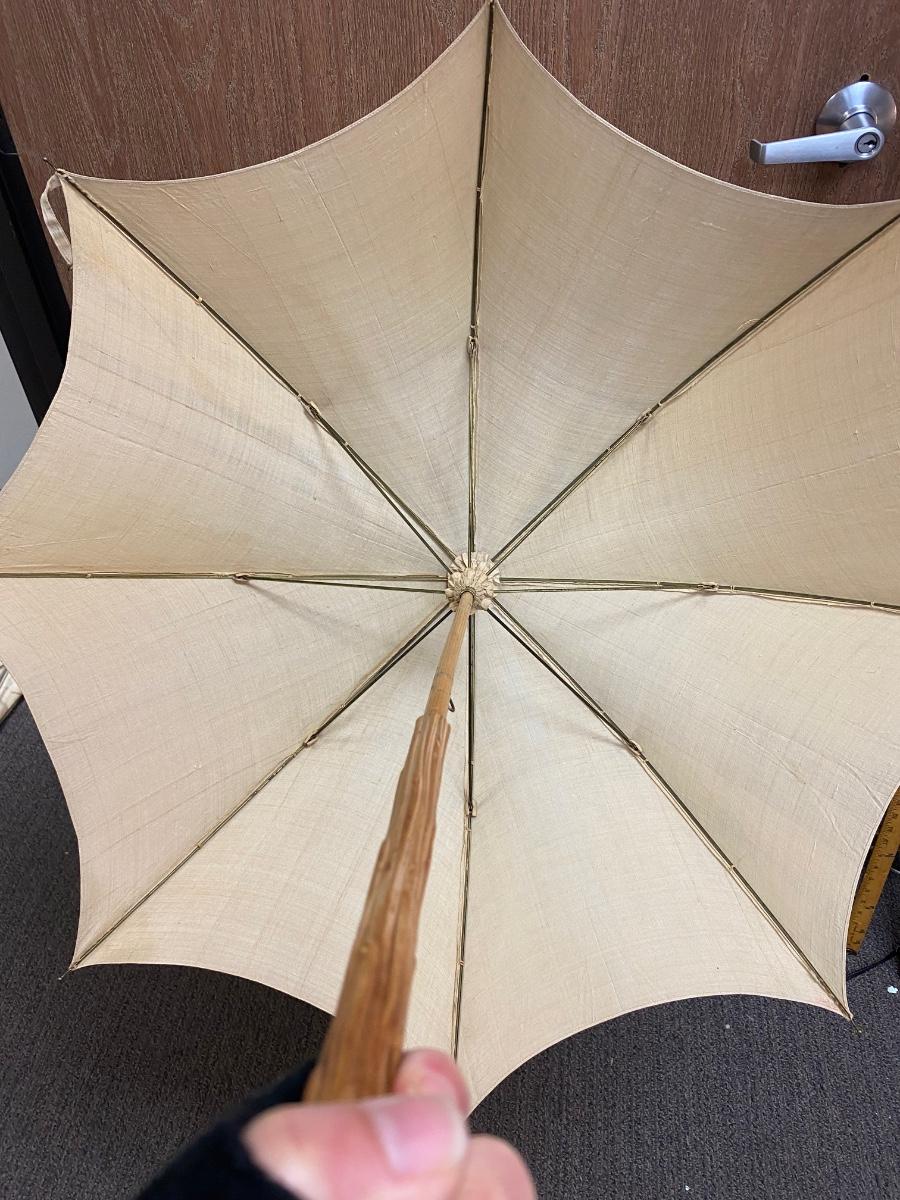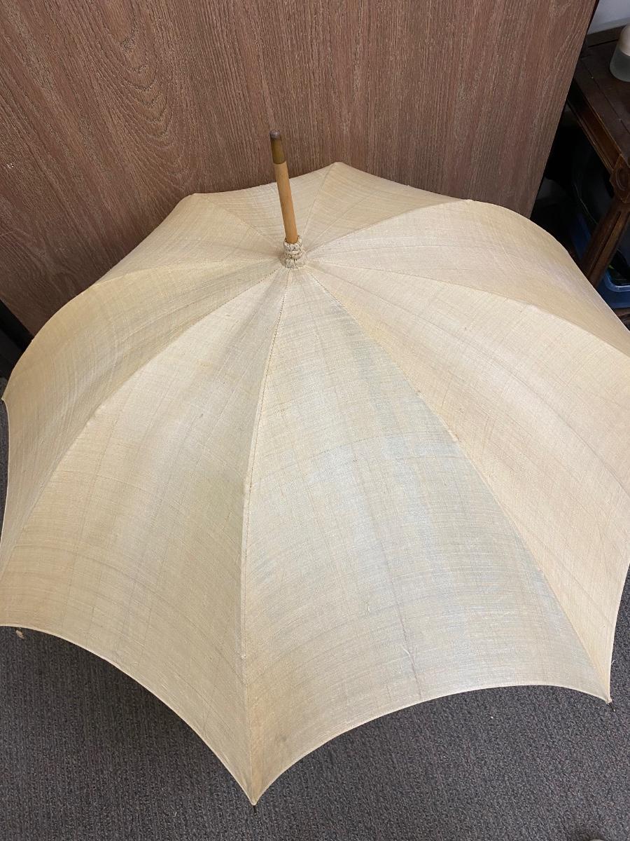 Vintage Natural Wood Handle Ecru Linen Umbrella Parasol Shade