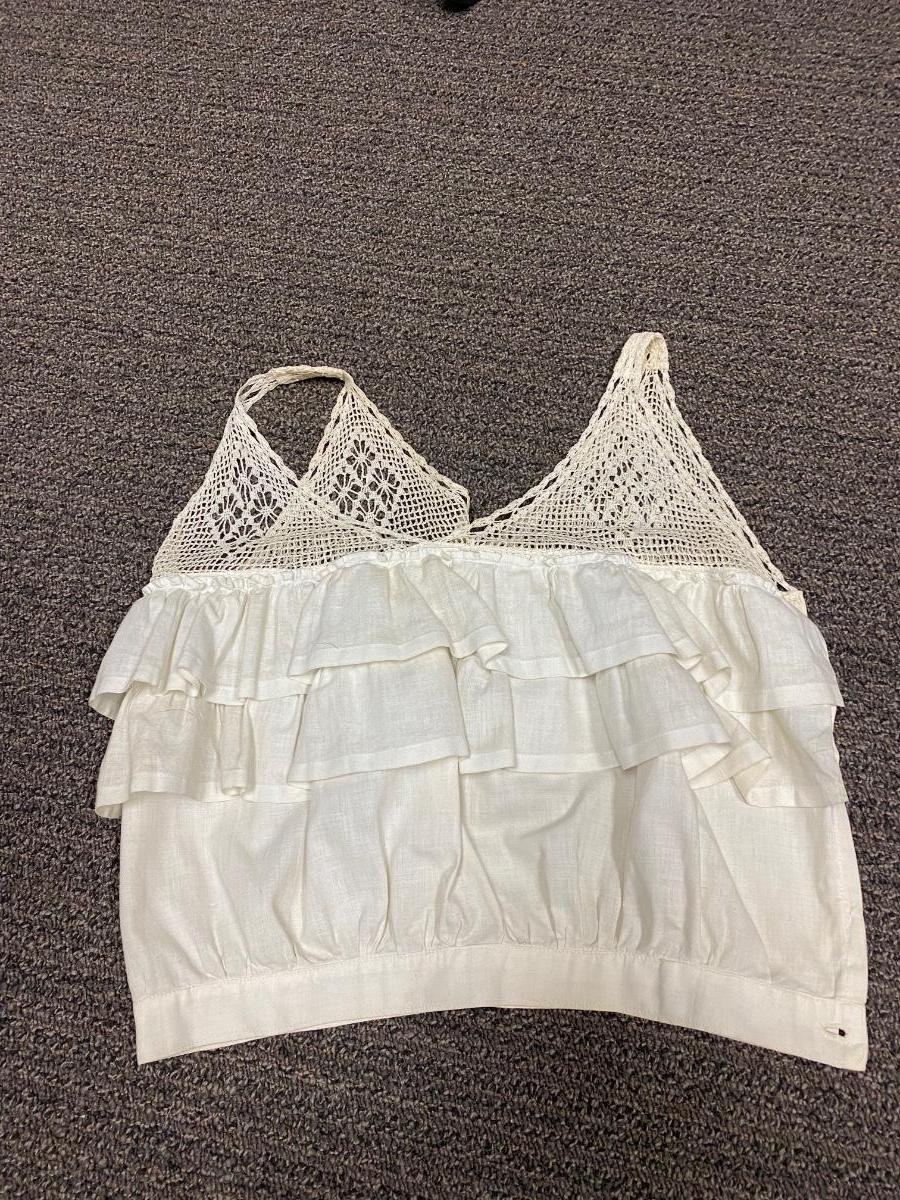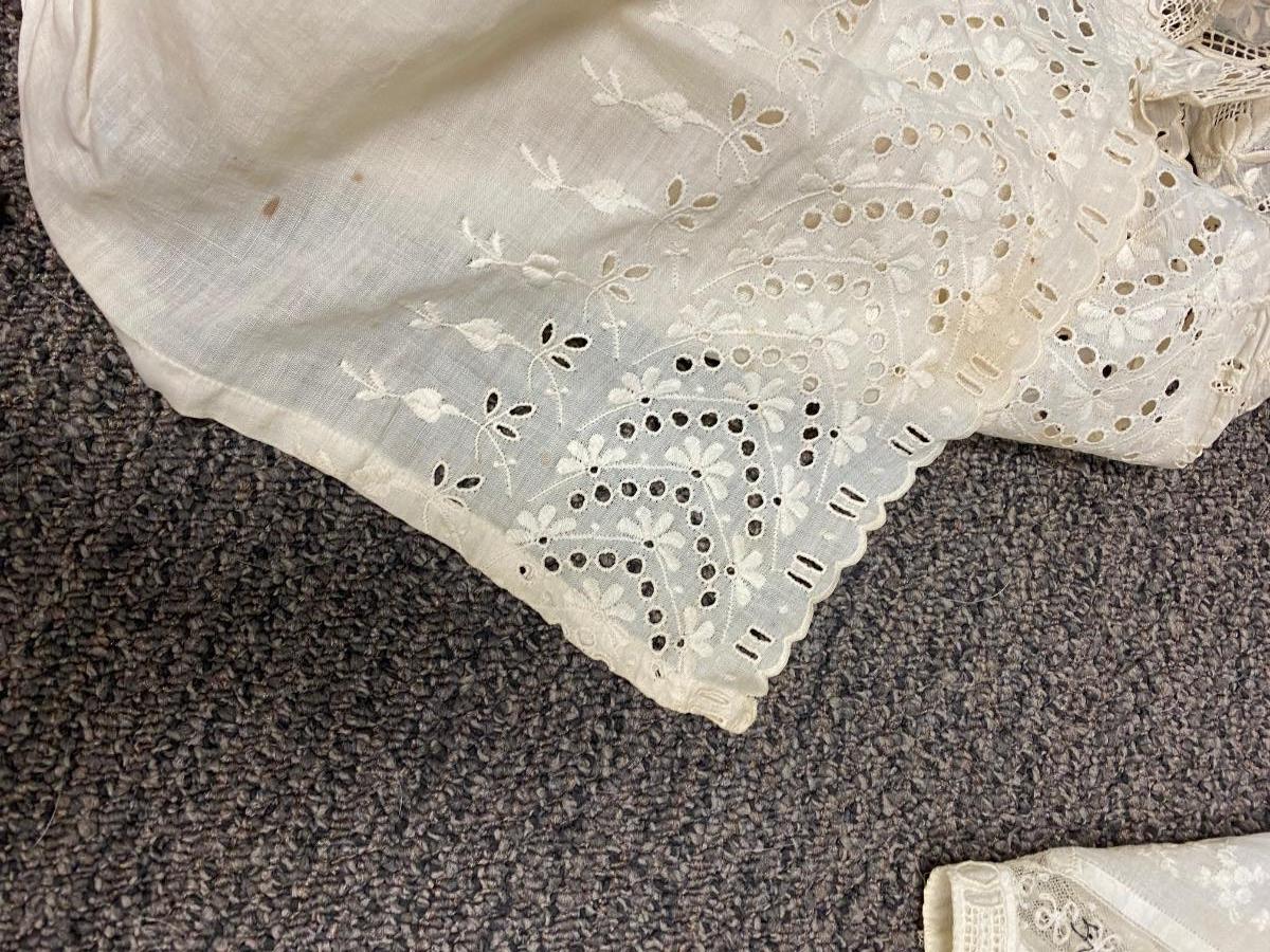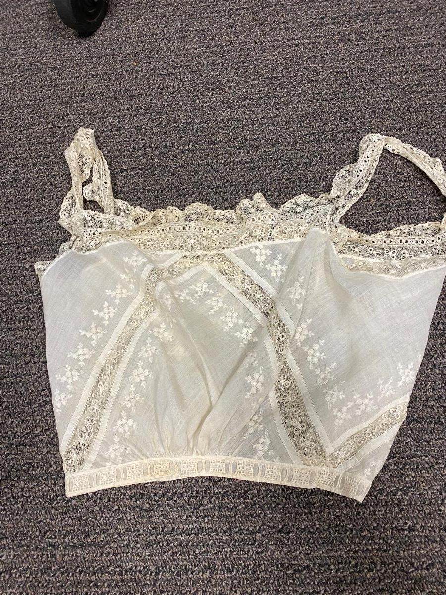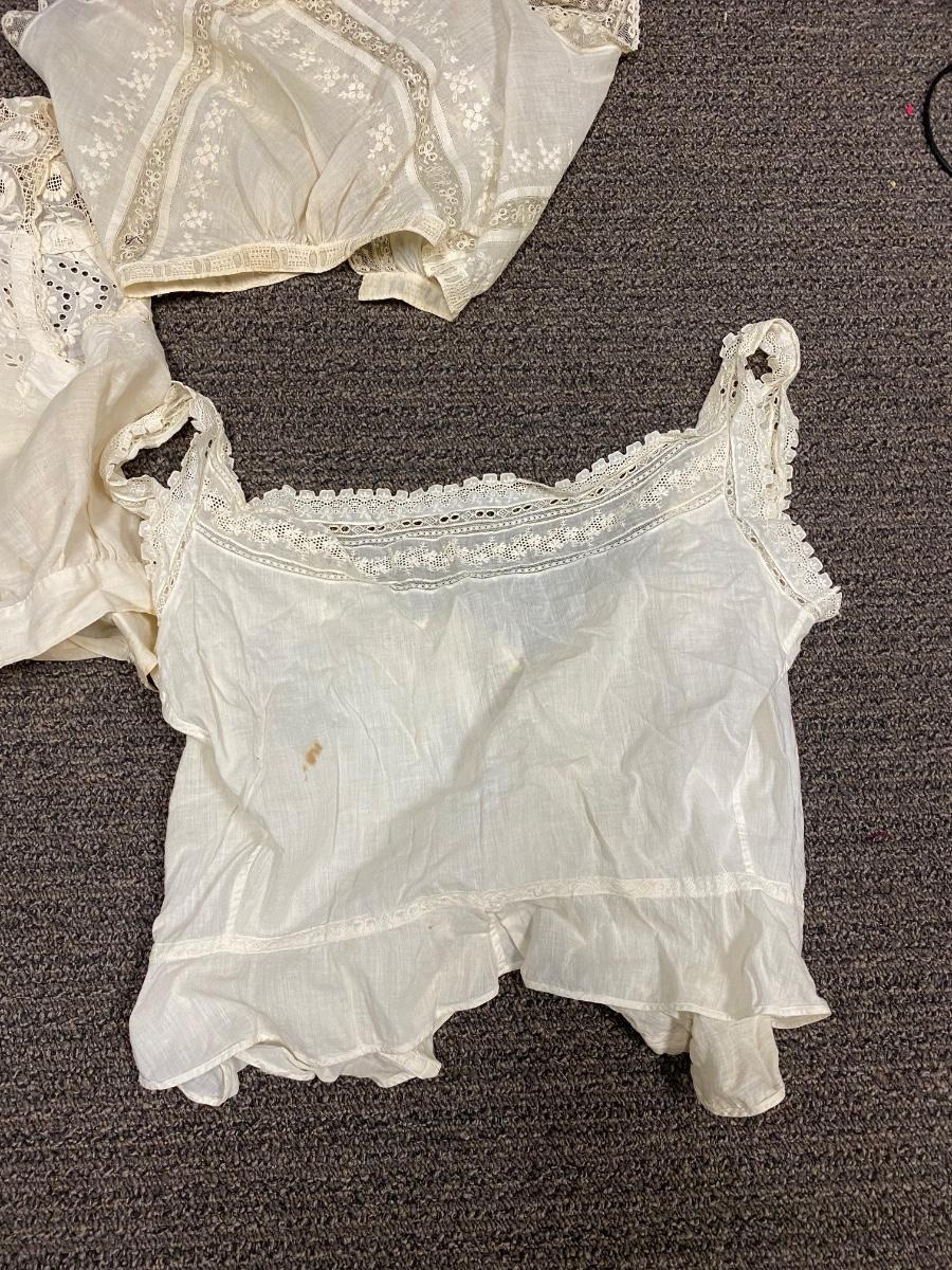 Lot of 5 Vintage Victorian White Cotton Lace Sleeveless Tank Gibson Girl Undergarment Top. Various styles, each one different. There is discolor and maybe a light spot or two but no major damage or holes. A couple of the tops need sometime of closure added.