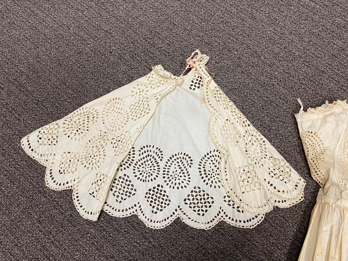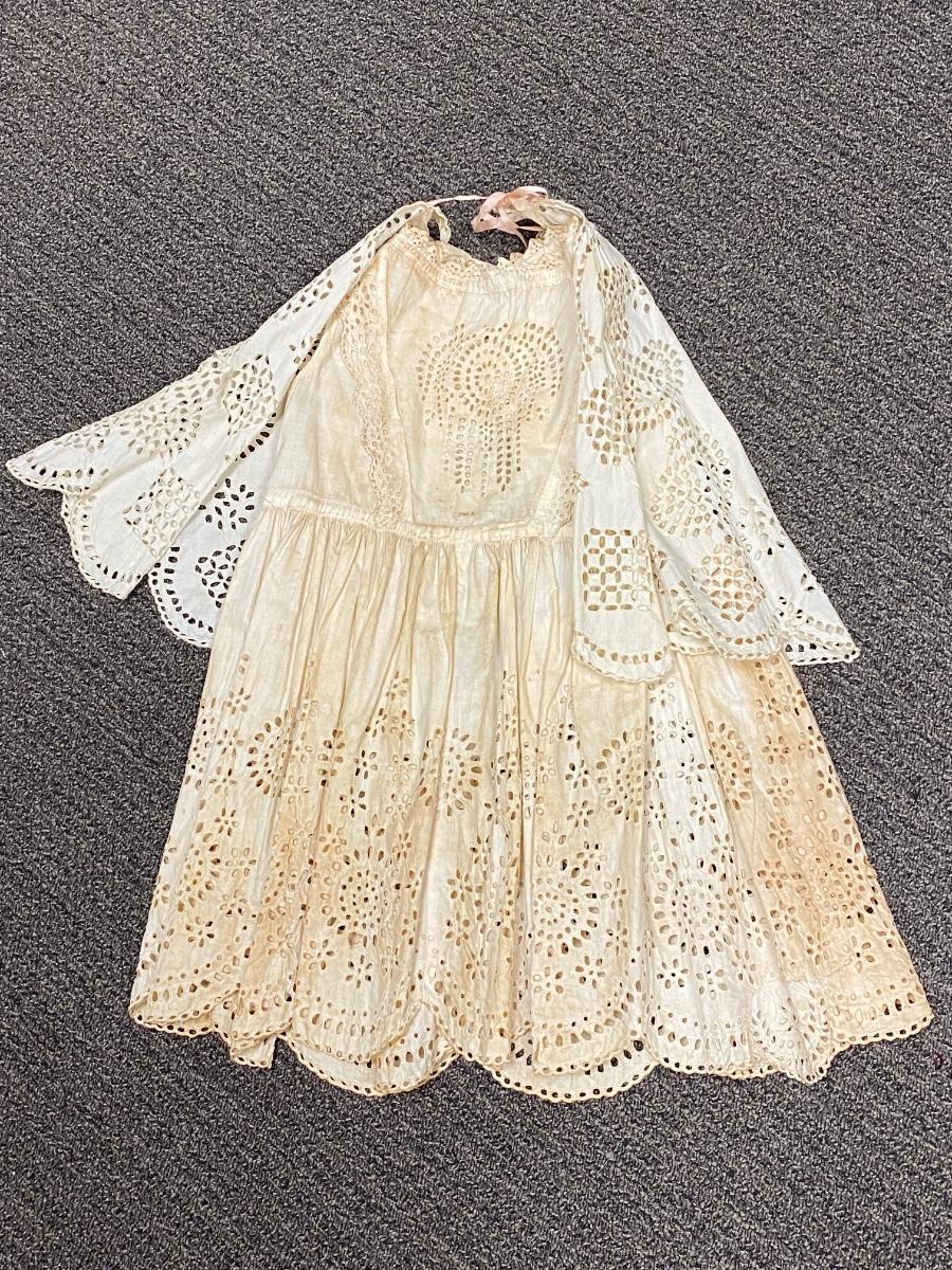 Vintage Victorian White Eyelet Cotton Small Child's Dress with Cape