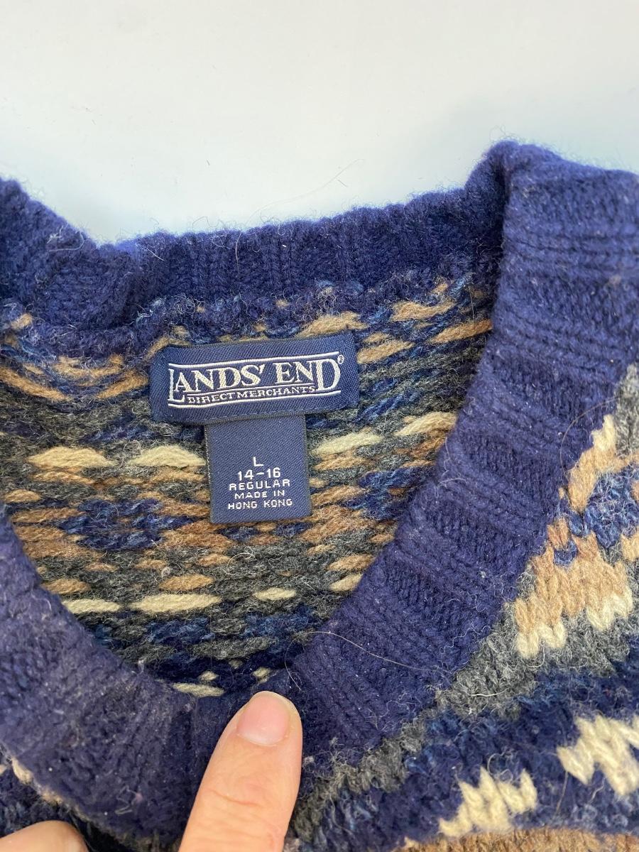 Land's End Thick 100% Lamb's Wool Sweater Size Large 14/16. In good vintage condition. No holes or spots noticed. Believe it is a boy's 14/16 not women's 14/16.