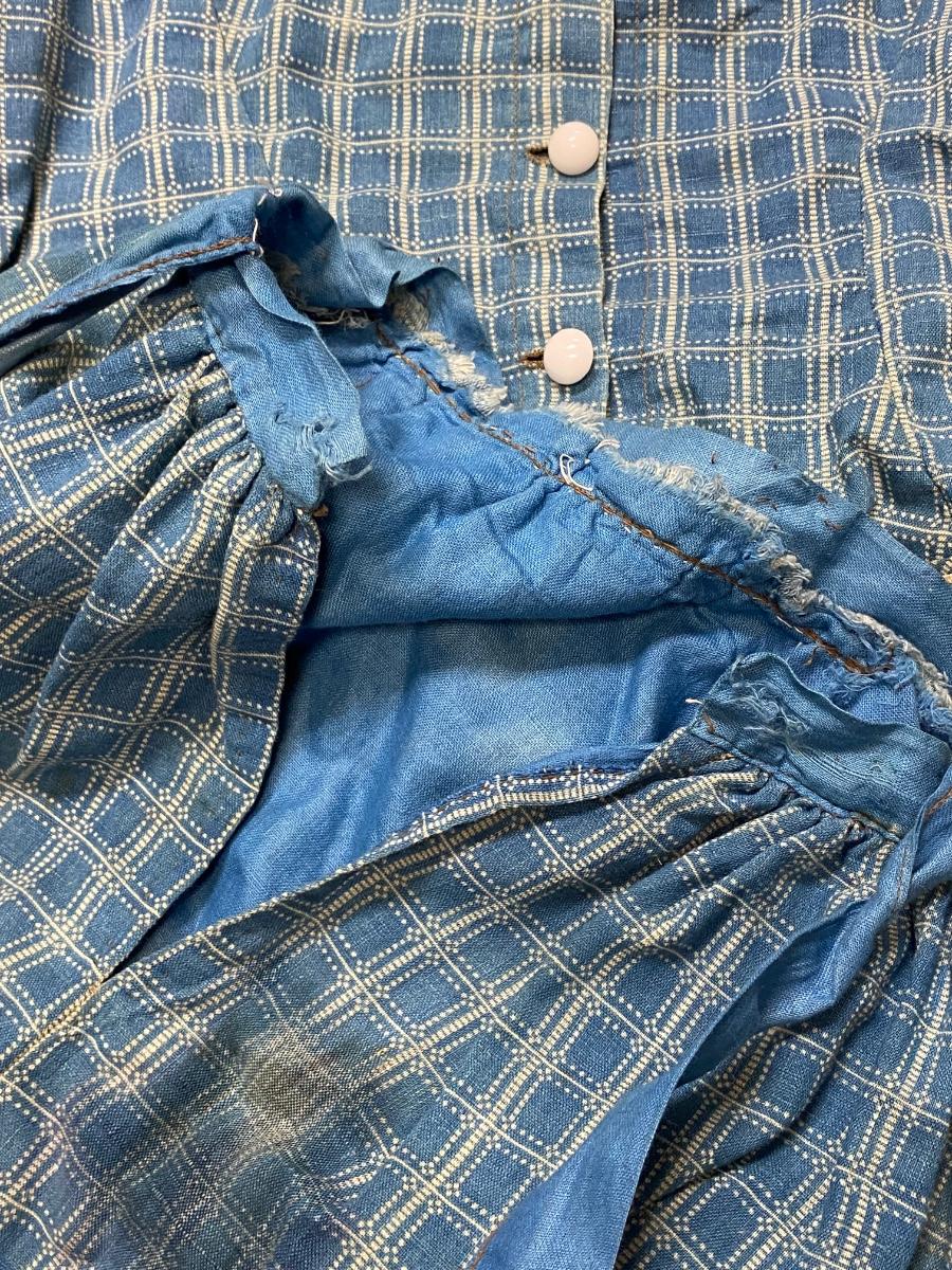Vintage Antique Small Girls Childs Two Piece Blue Plaid Prairie Dress Skirt Top