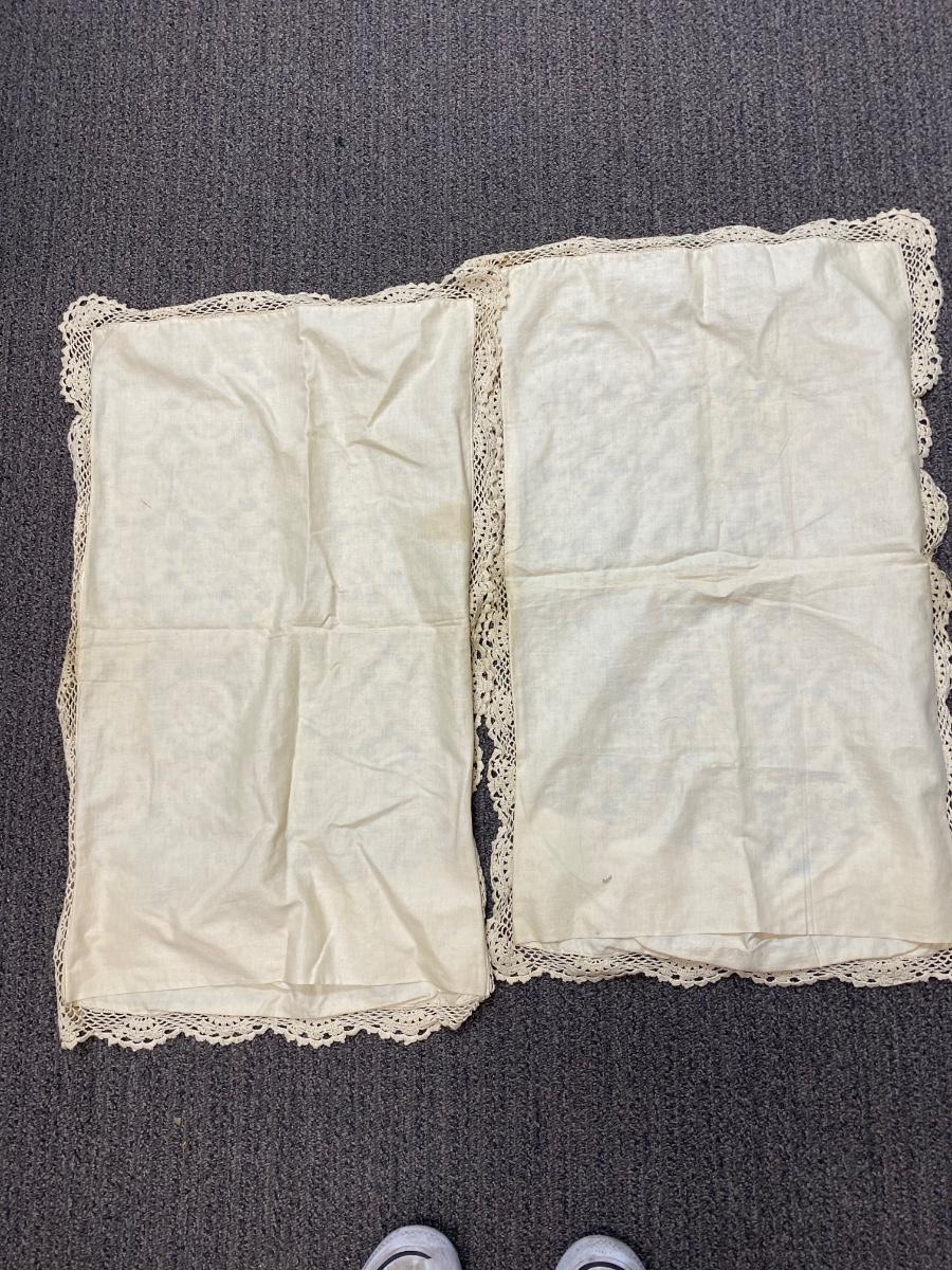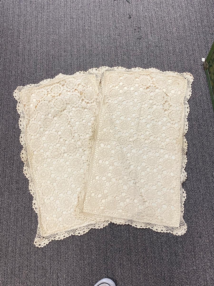 Pair of Vintage Ivory Crochet Top Pillowcases. Good previously used condition, some light discoloration. Standard size.