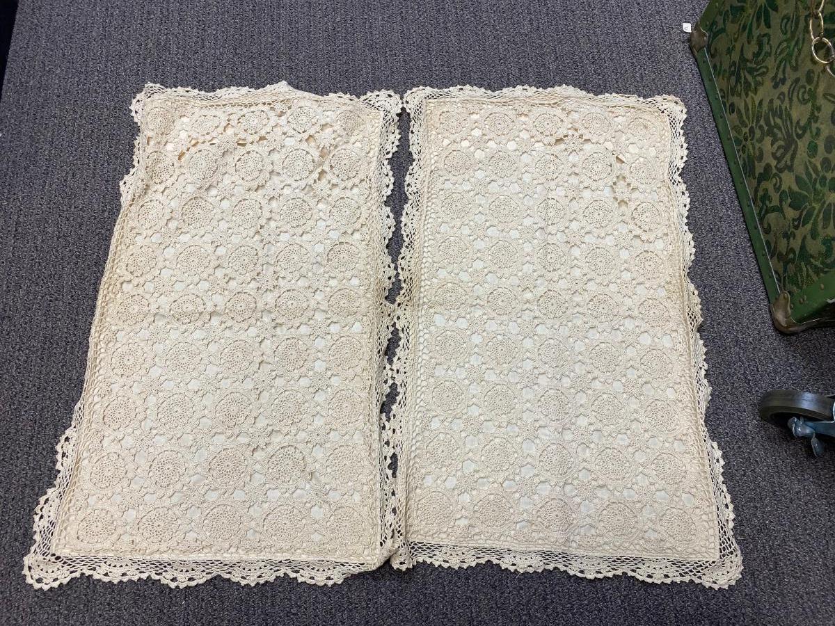 Pair of Vintage Ivory Crochet Top Pillowcases