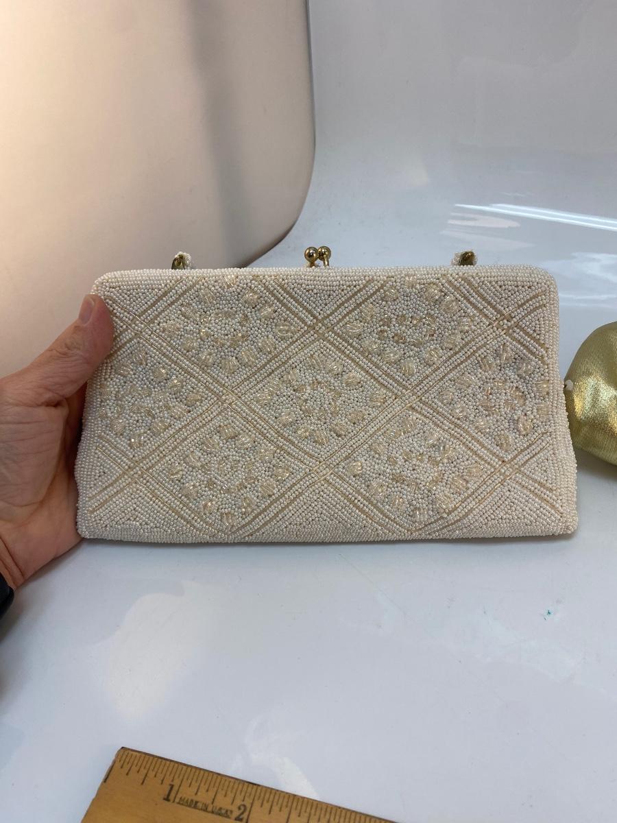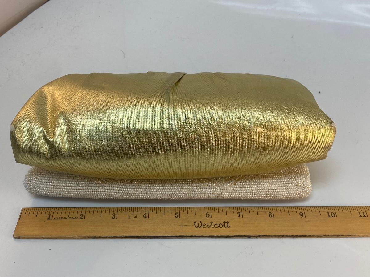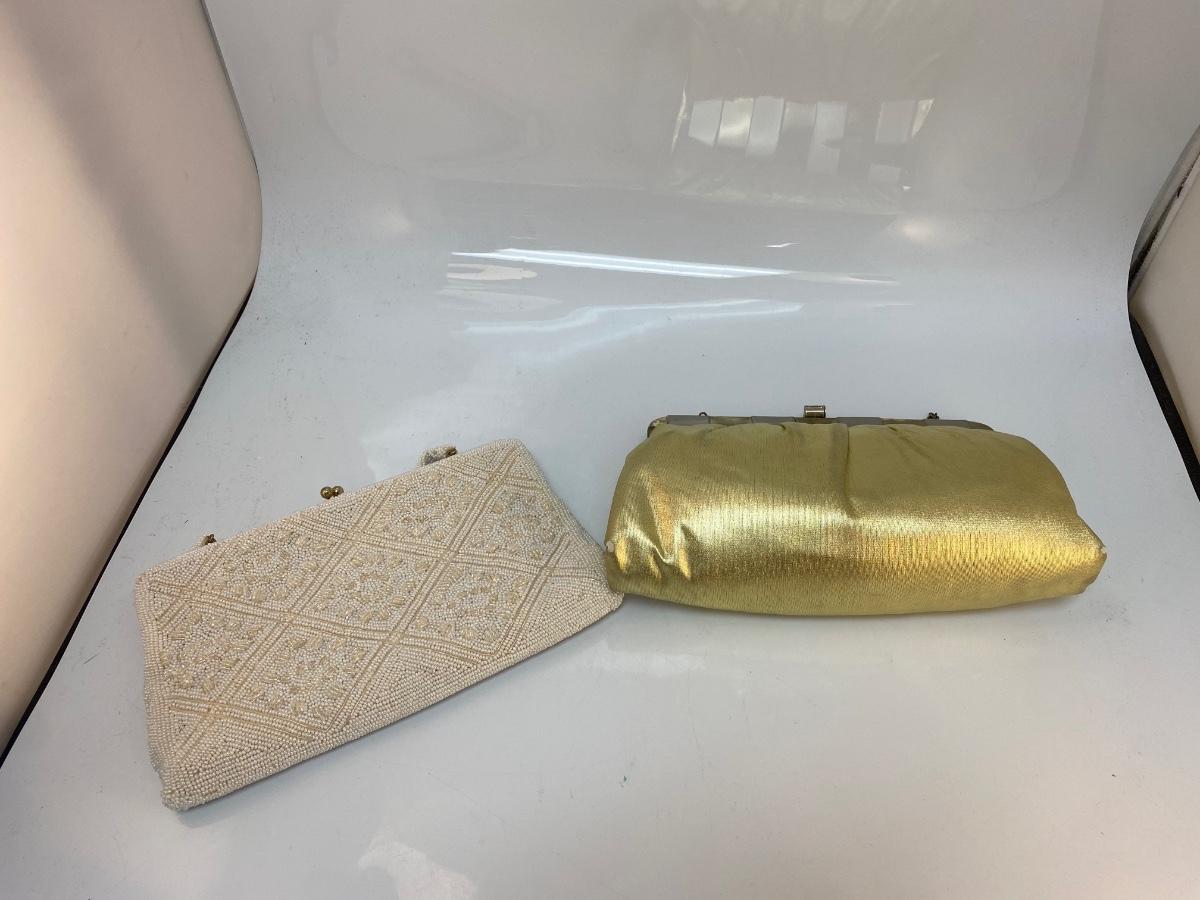 Pair of Vintage Clutch Handbags Micro Beaded Gold