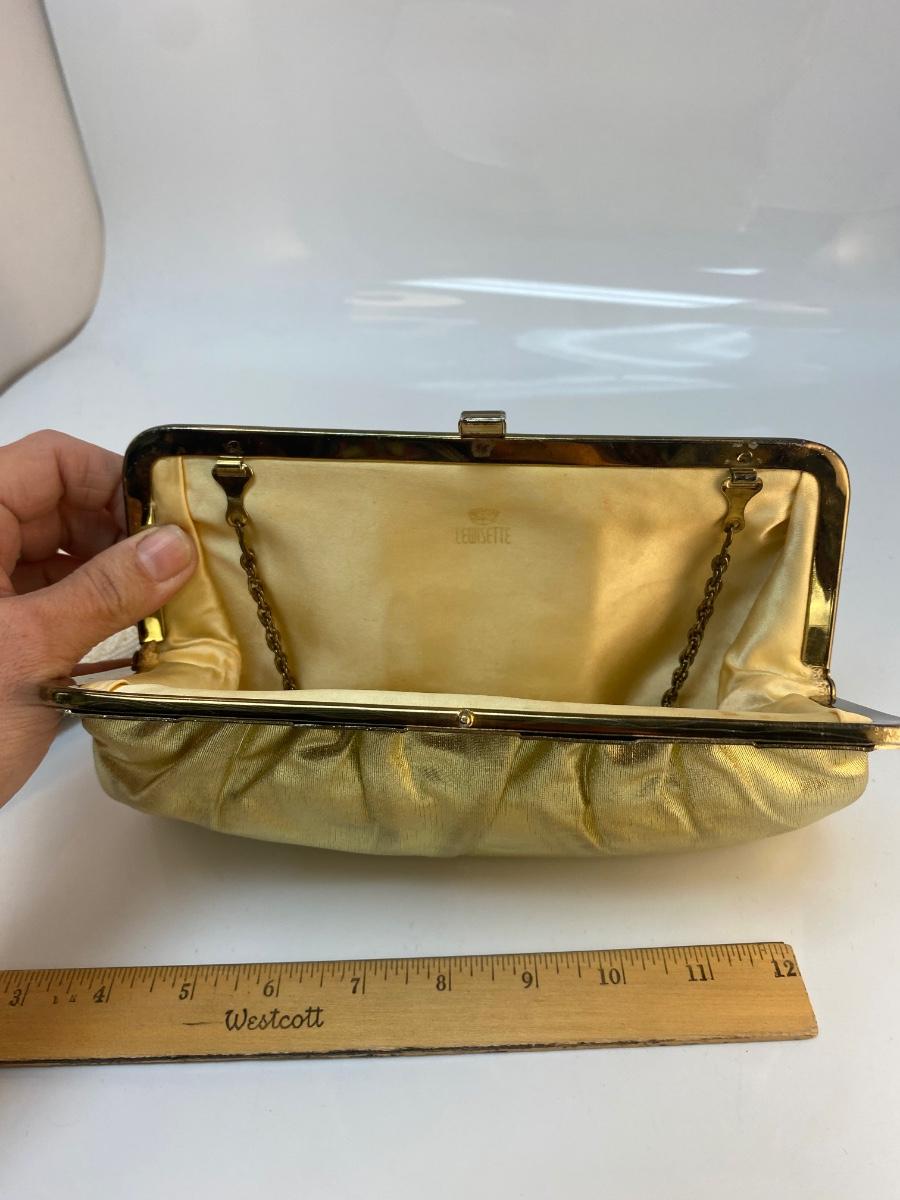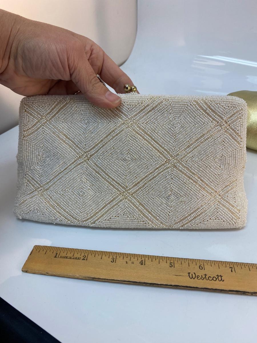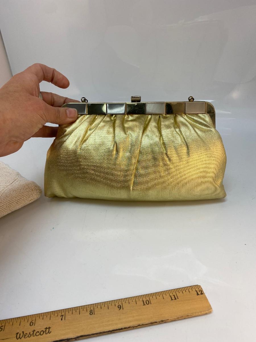 Pair of Vintage Clutch Handbags Micro Beaded Gold. In good vintage condition. May have light discolor from use. Both have hidden straps.