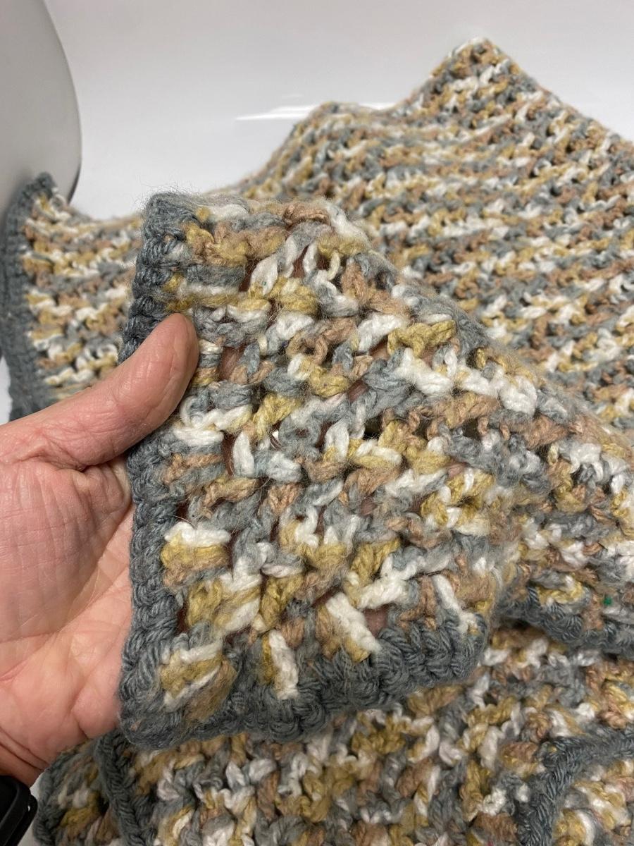 Small Chunky Knit Muted Tones Lap Throw Blanket. About 4' size.