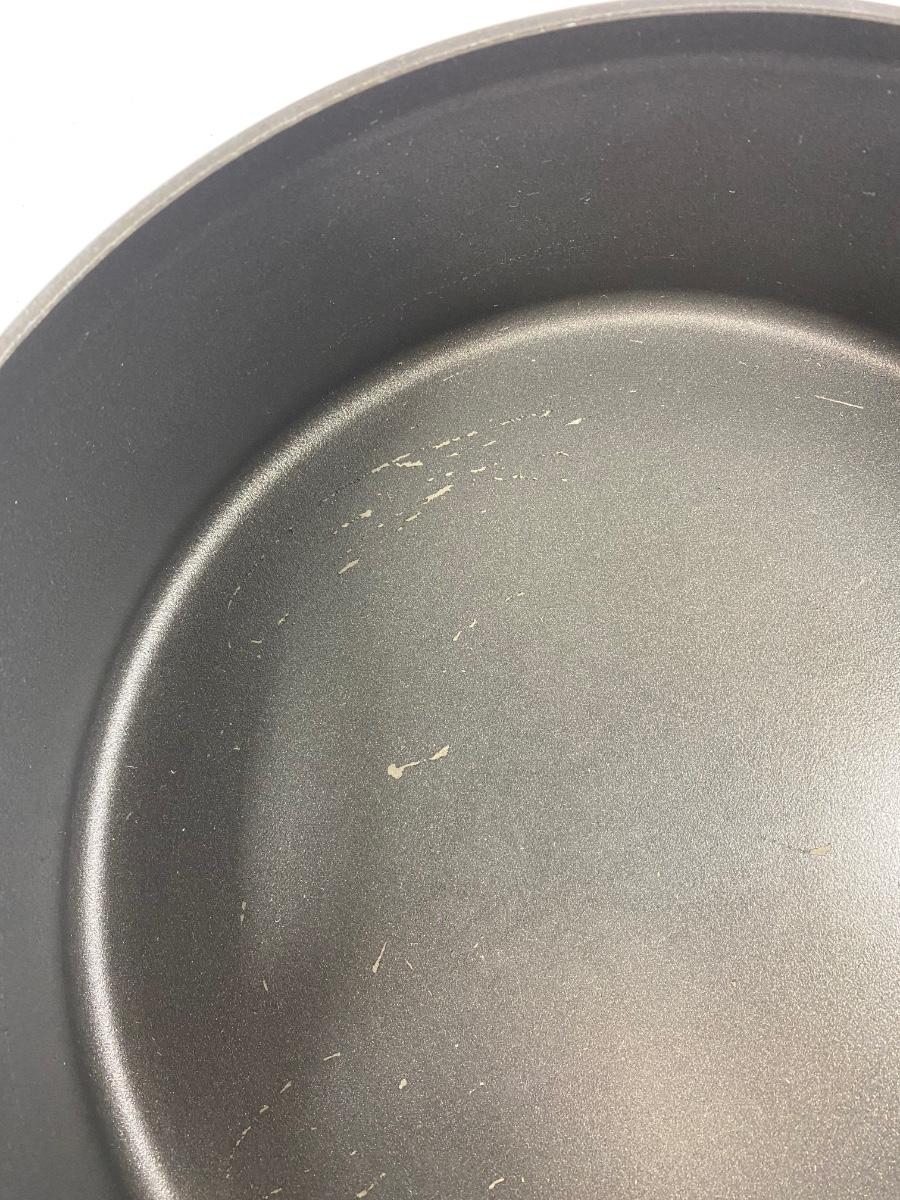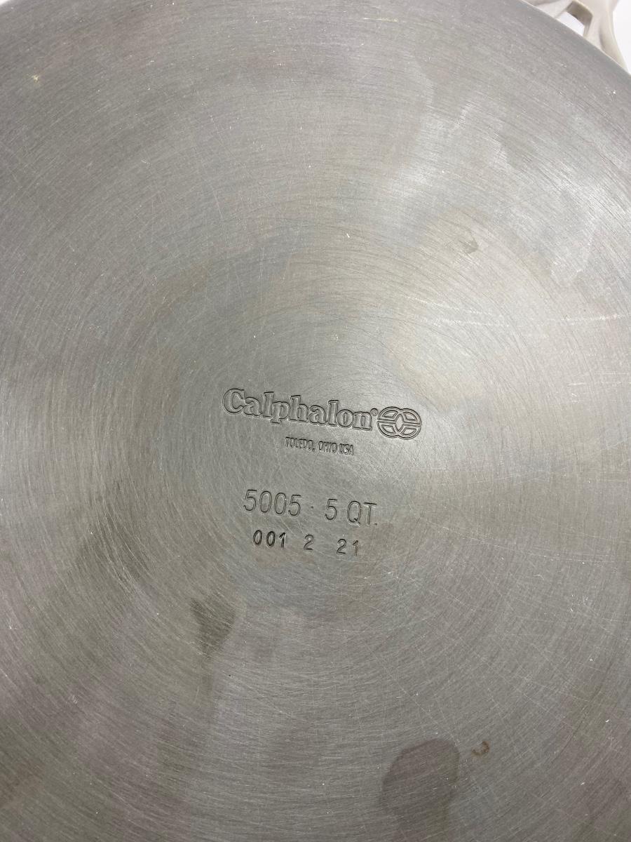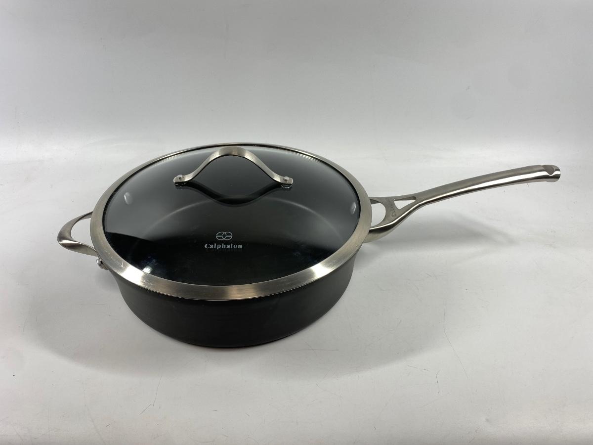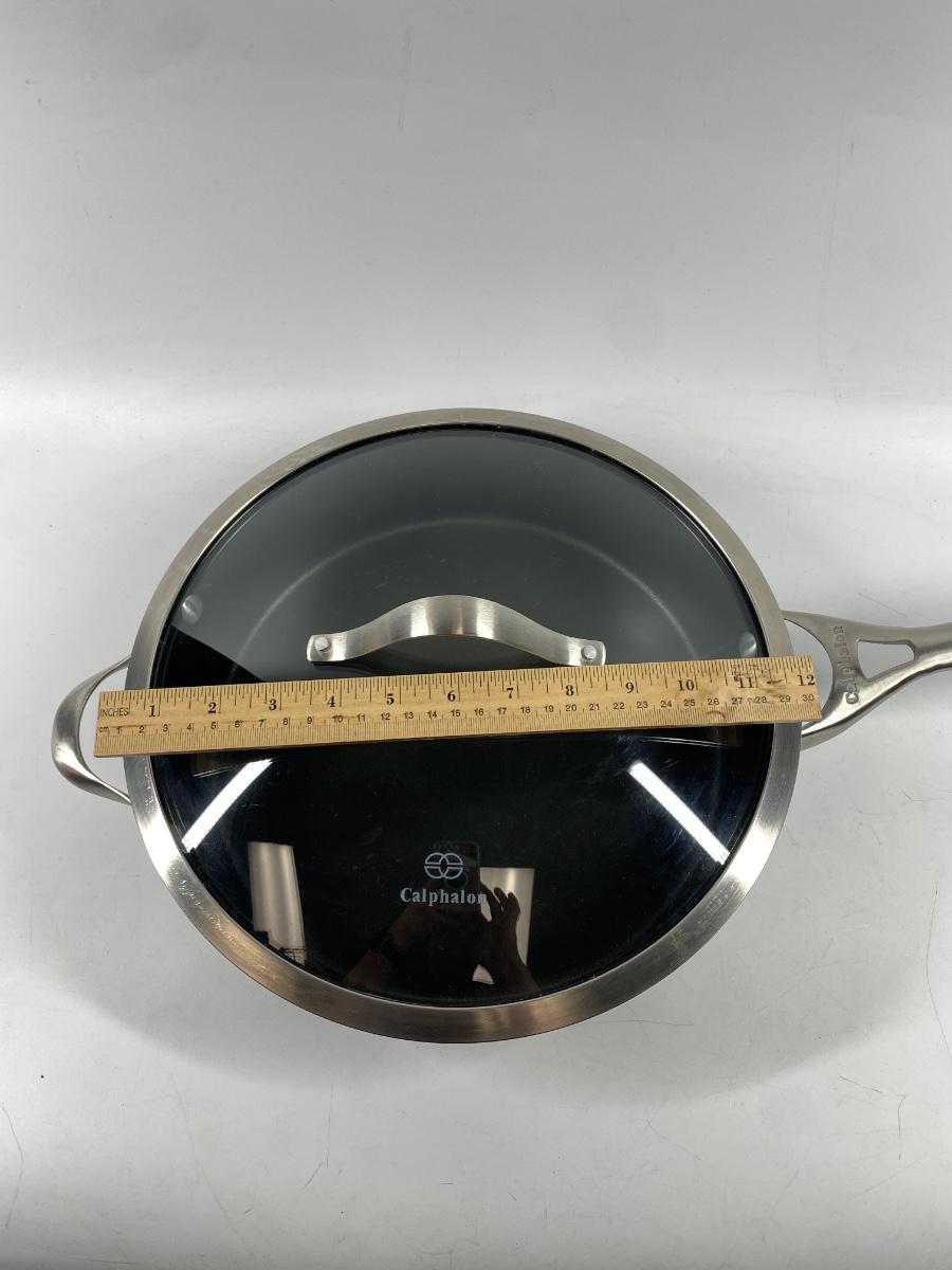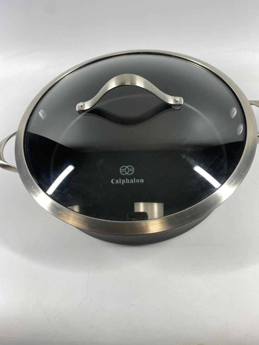 Calphalon 5qt Frying Pan with Glass Lid. in good used condition, light signs of use.