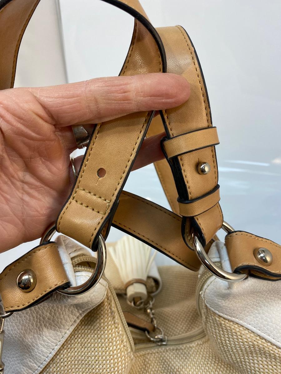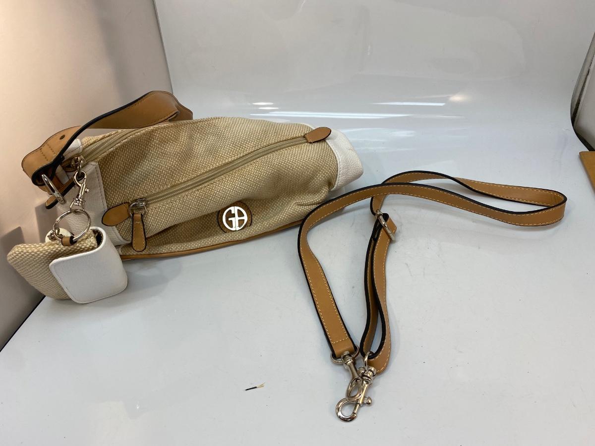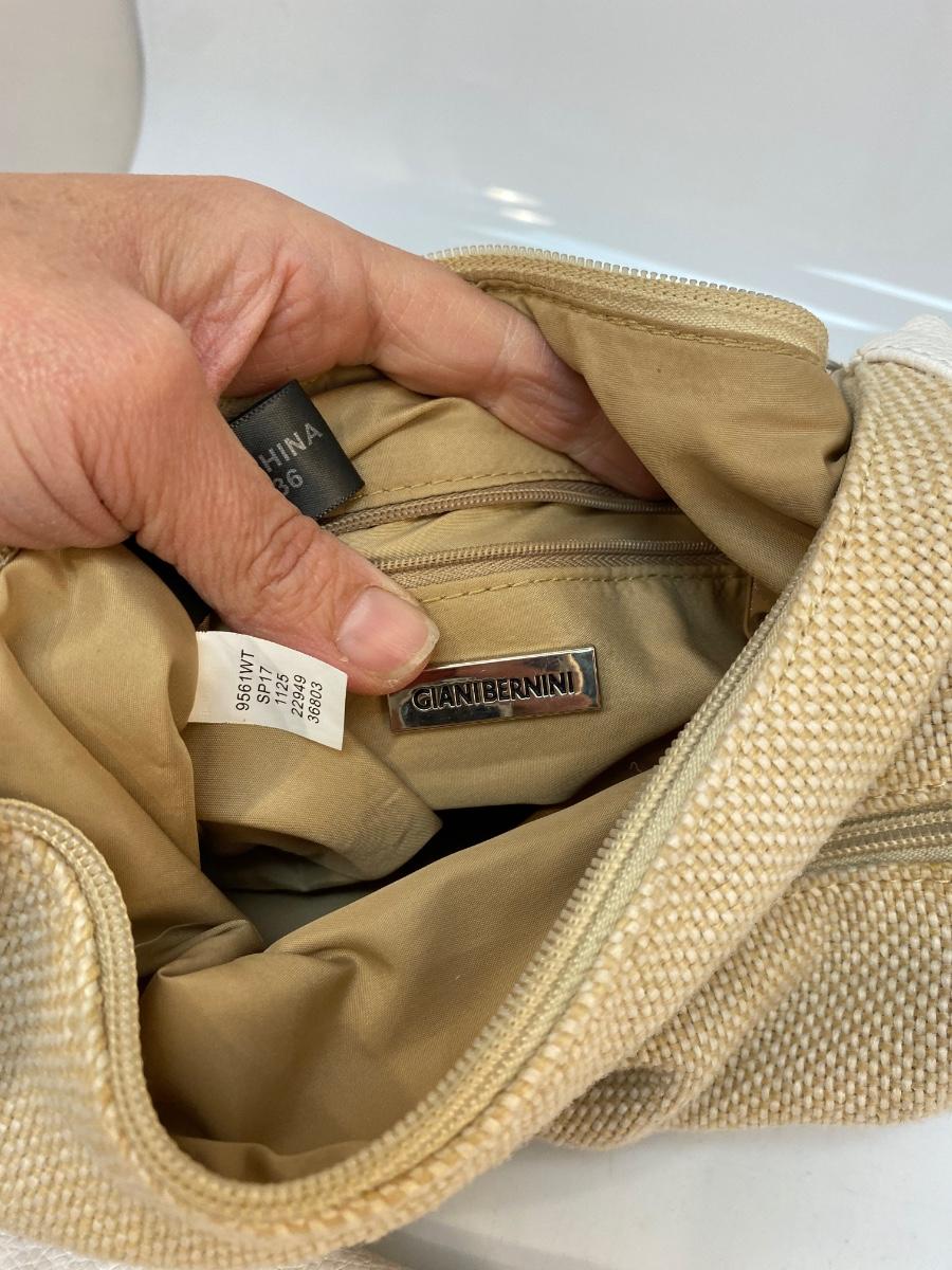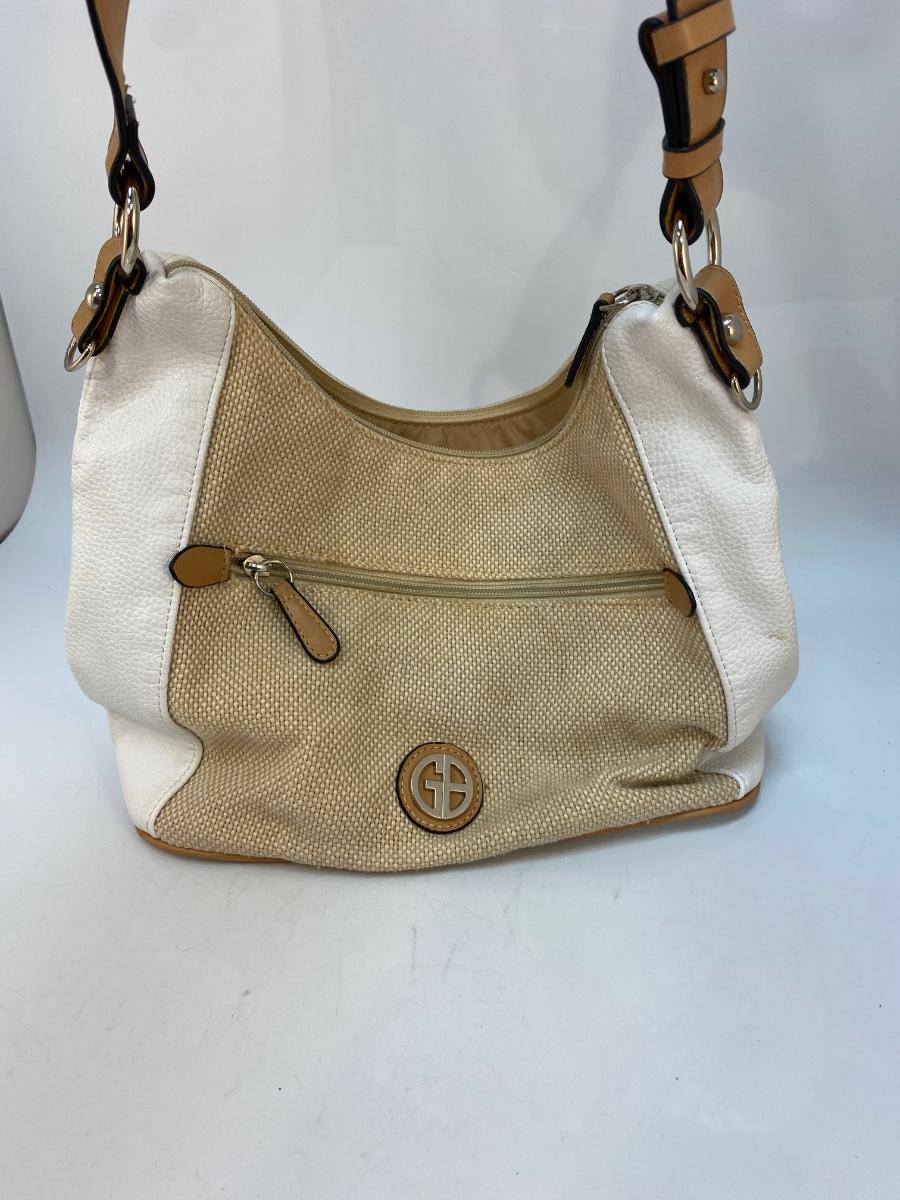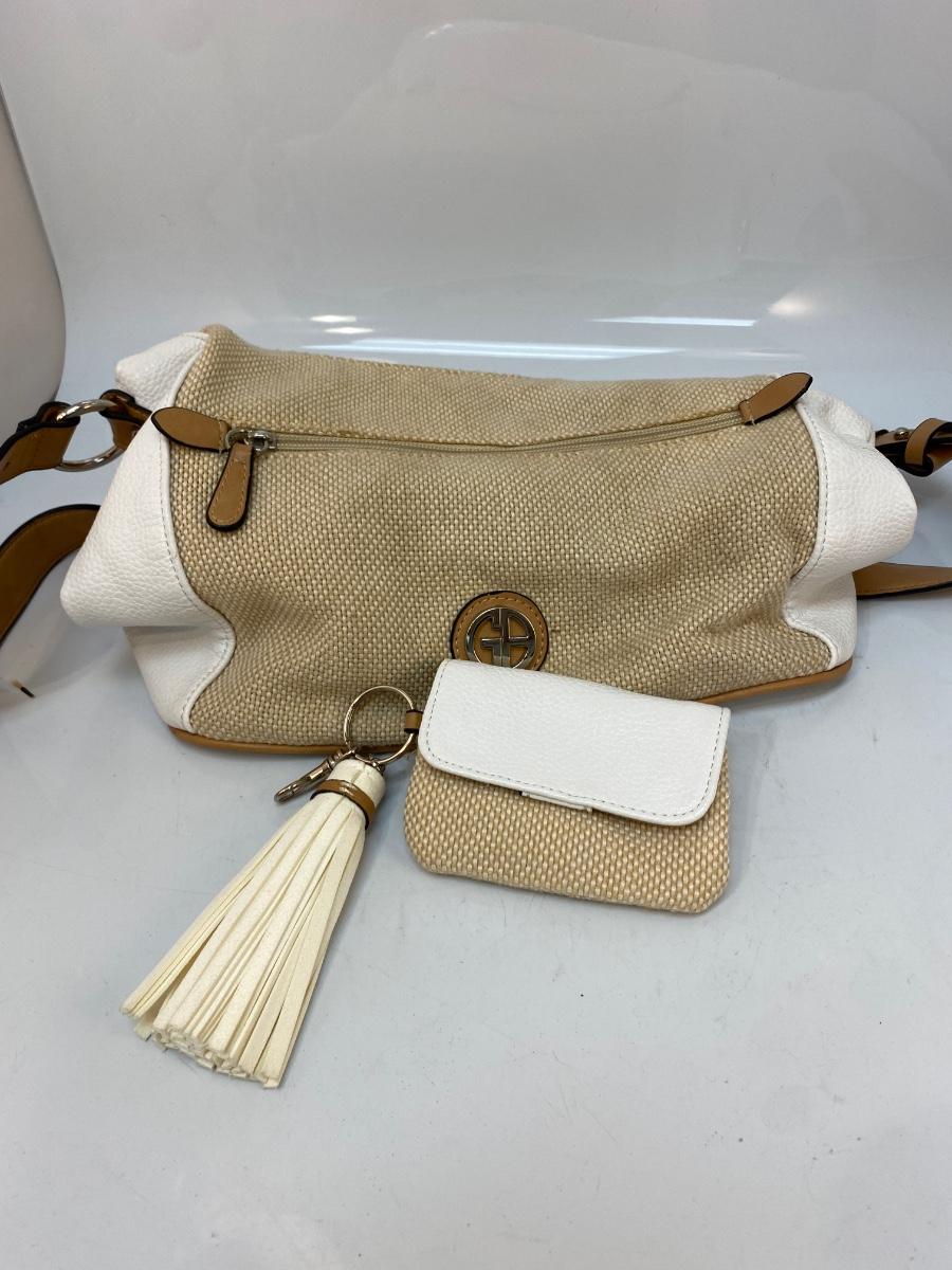 Tan and White Giani Bernini Shoulder Bag Purse. In good preowned condition. Comes with matching coin purse and extra strap.