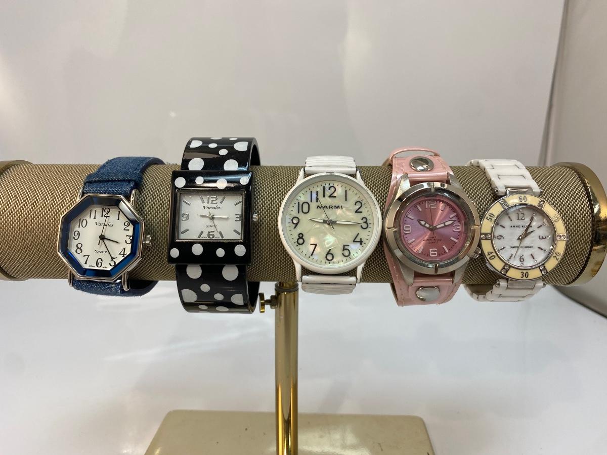 Lot of 5 Ladies Colorful Fashion Wristwatches Watches Not Running. In good condition, may just need new batteries.