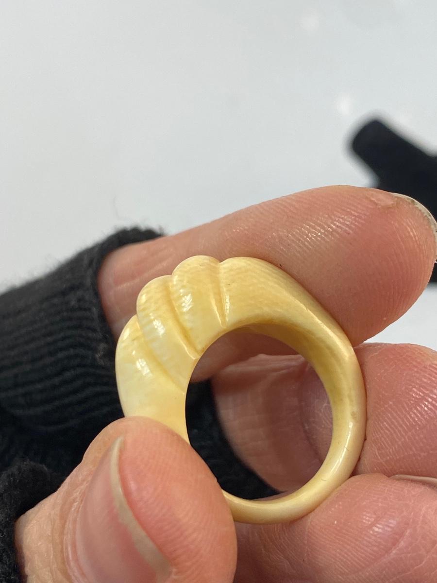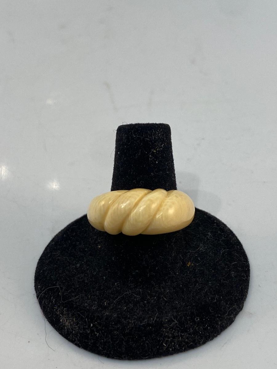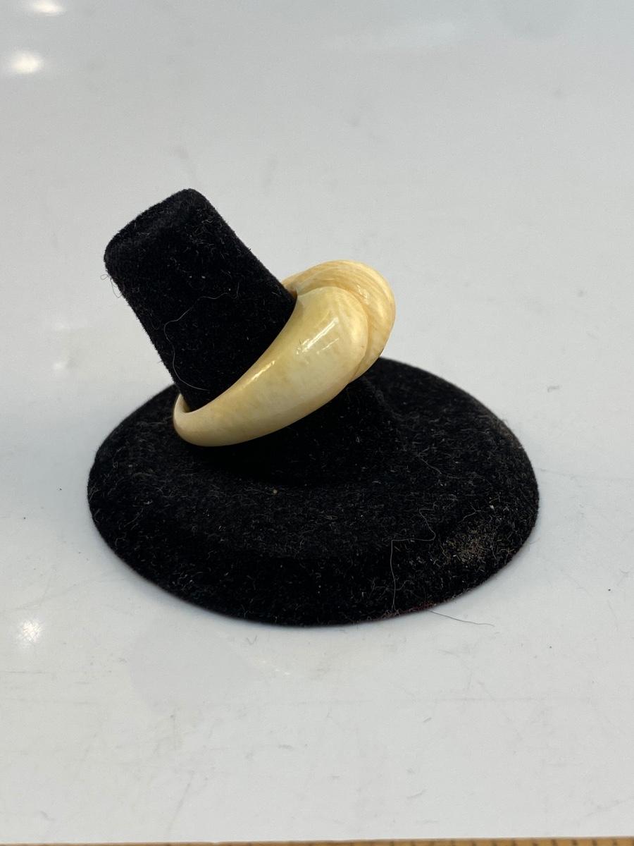 Vintage Carved Twisted Design Horn Bone Ring. In good condition. Size 7 maybe 8.