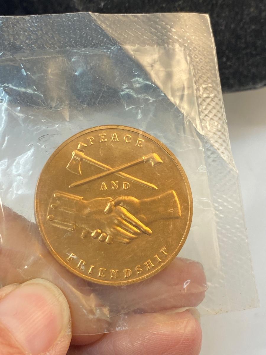 George Washington Peace and Friendship US Mint Coin. Still in sealed plastic. Excellent condition.