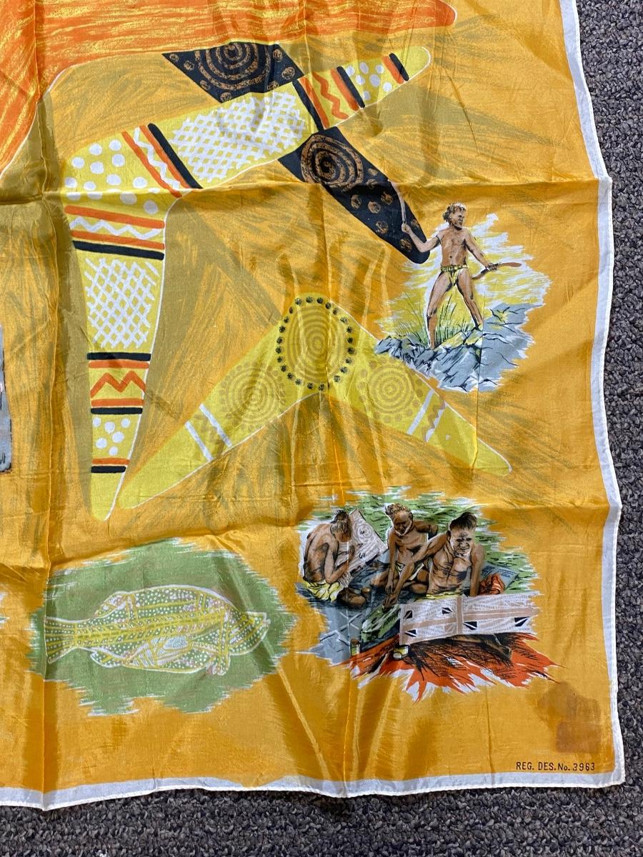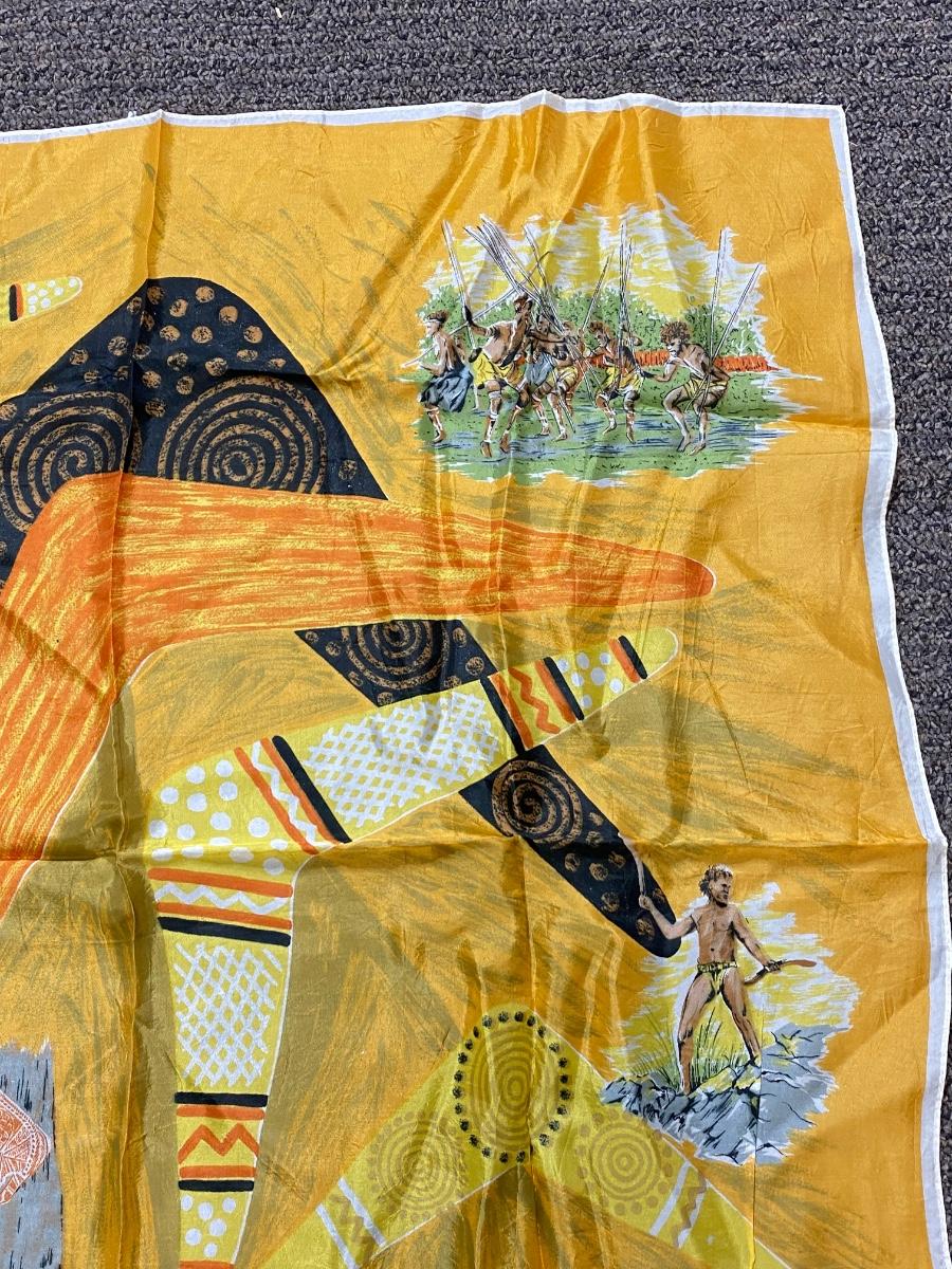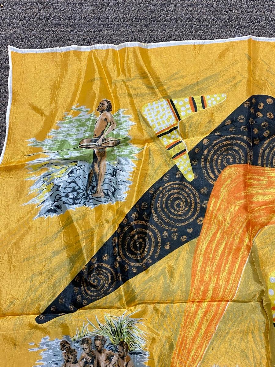 Vintage Silk Scarf Travel Souvenir Australia Natives Boomerangs