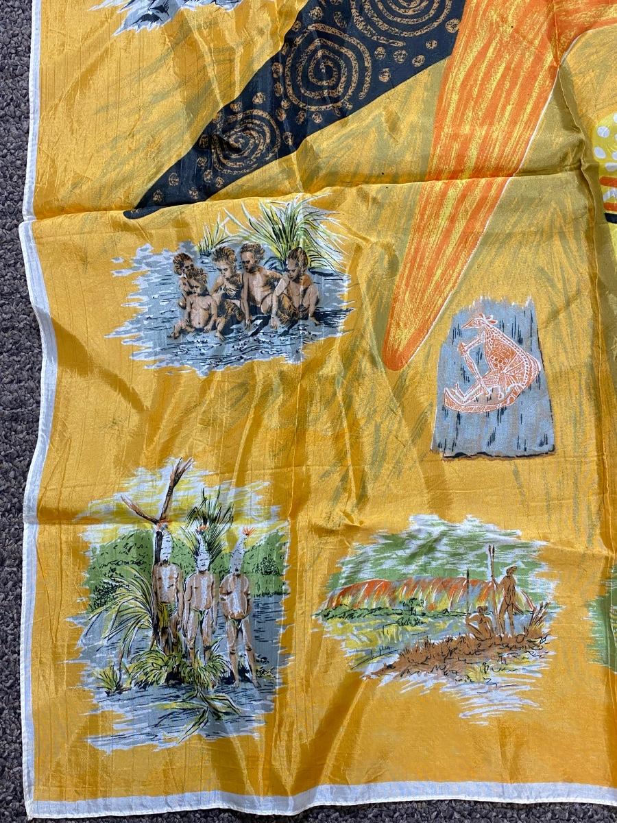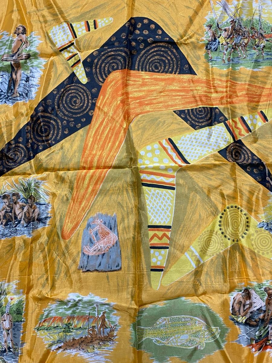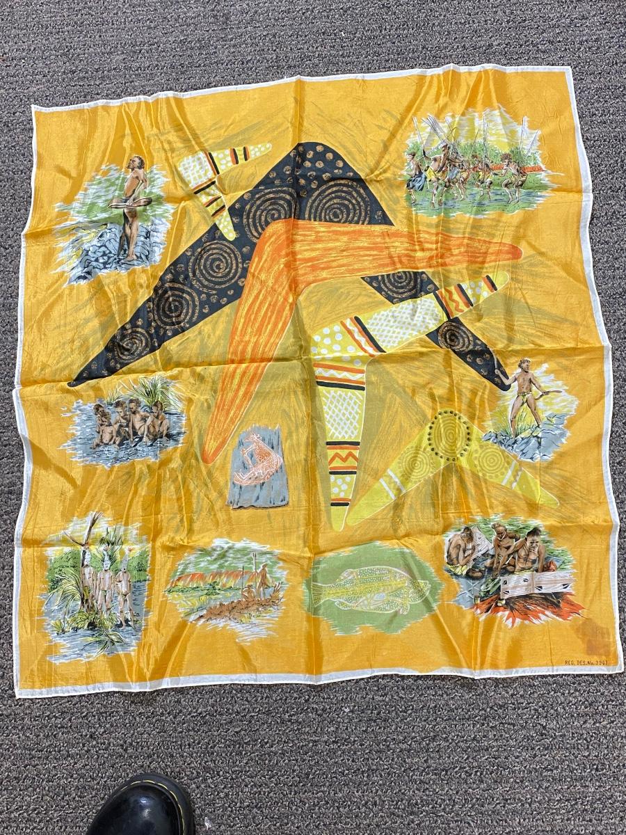 Vintage Silk Scarf Travel Souvenir Australia Natives Boomerangs