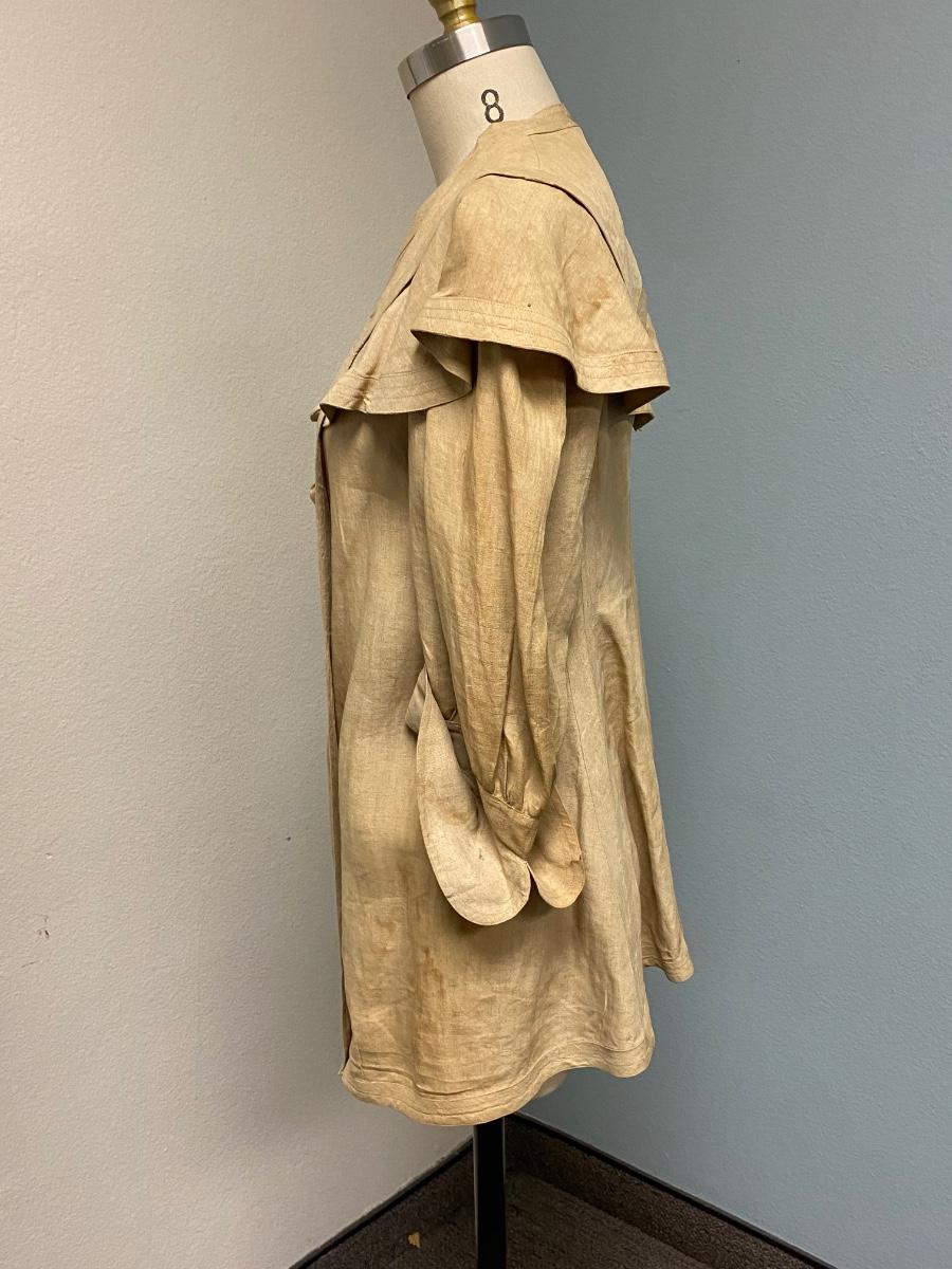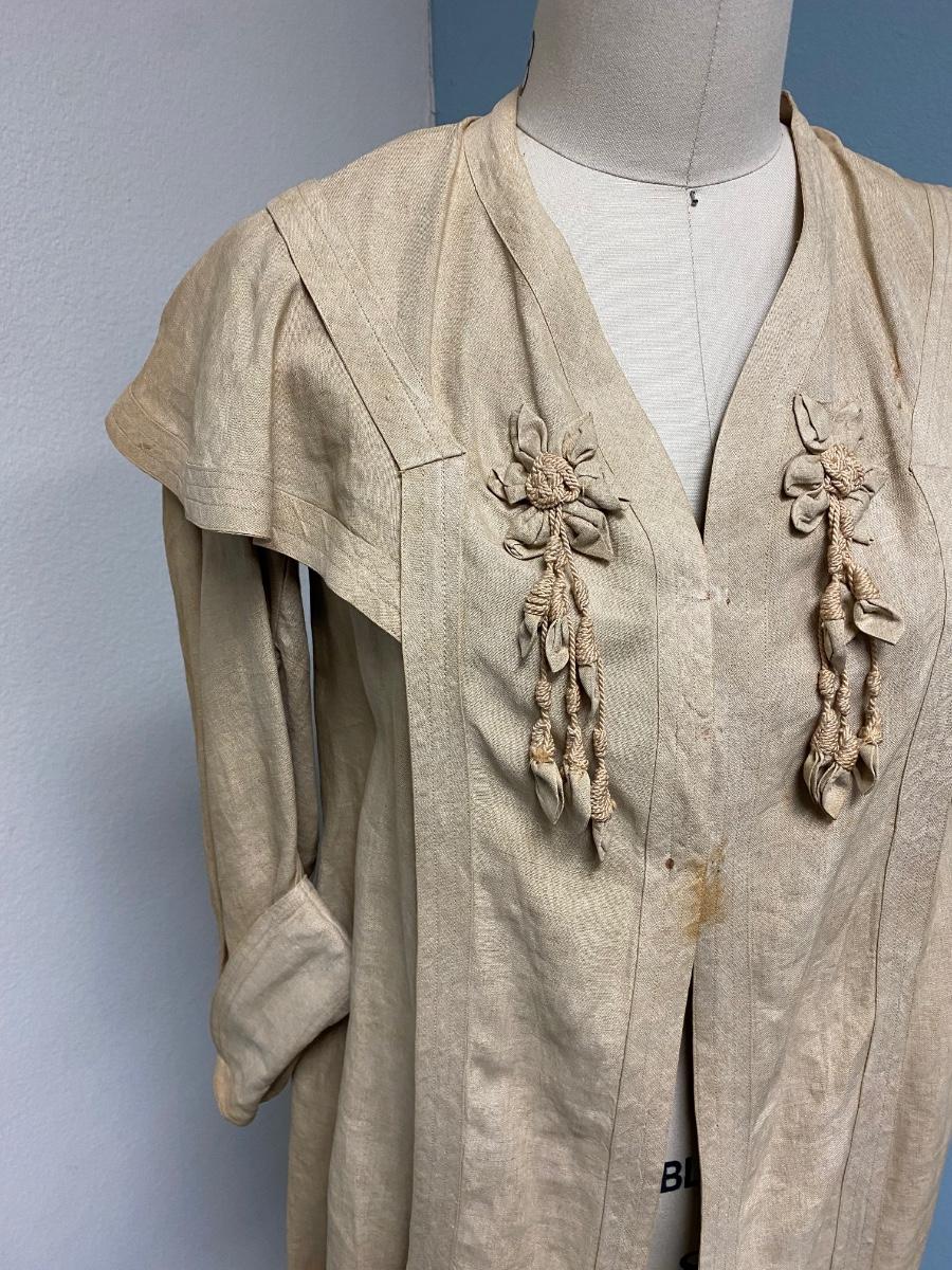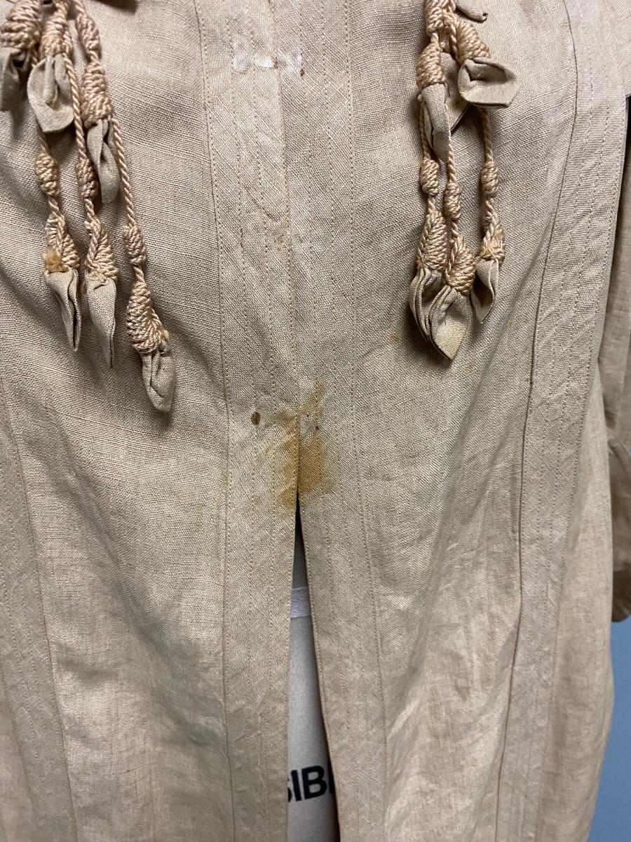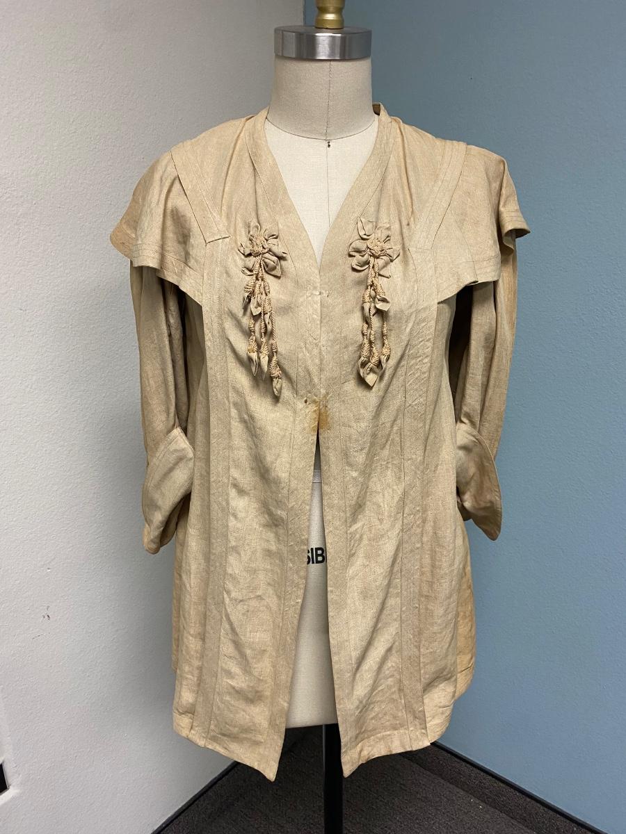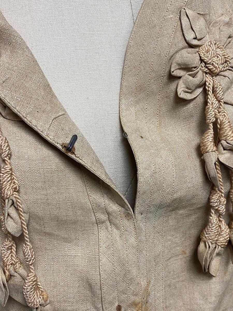 Antique Victorian Ecru Jacket Coat. Short coat with a couple hook and eye closures at the chest. Some spots and discoloration. No holes noticed.