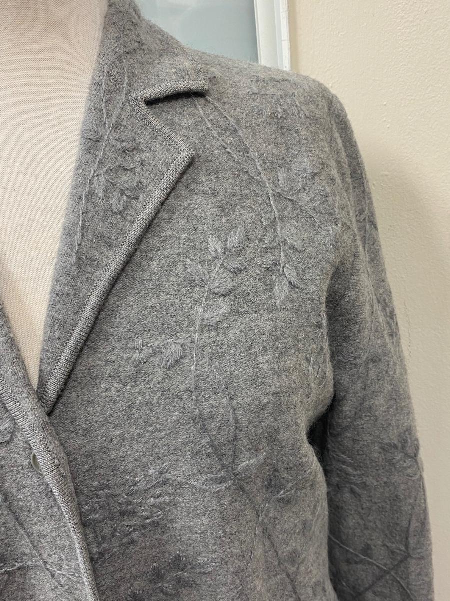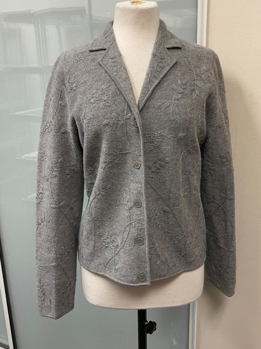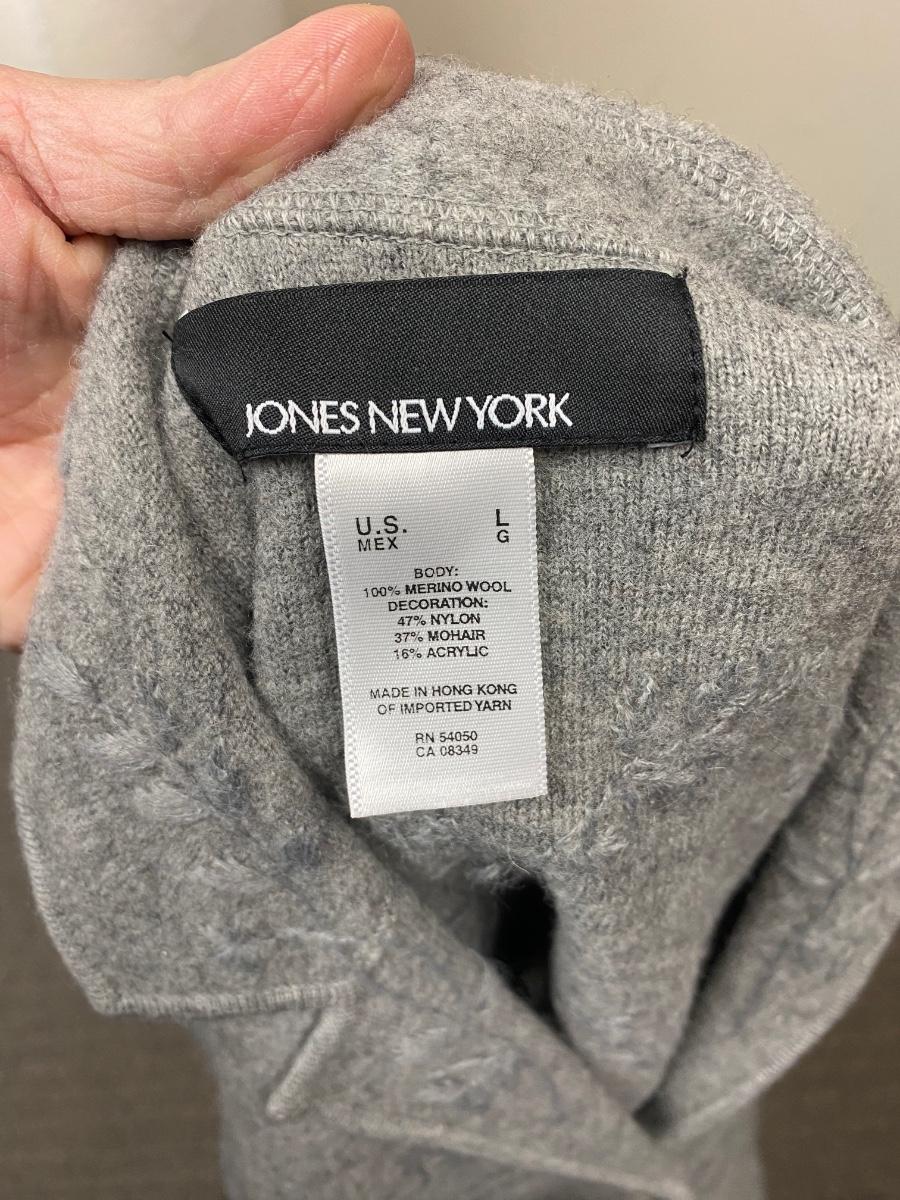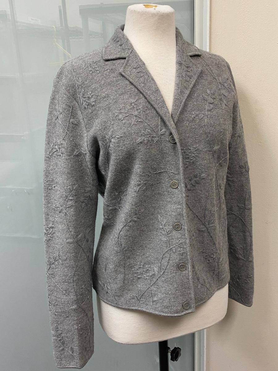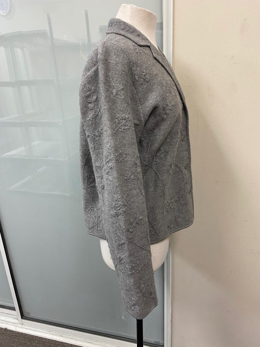 Heathered Grey Jones New York Merino Wool Jacket Blouse Top Business Casual Large. In good condition. Has a textured leaf/vine pattern to the wool.