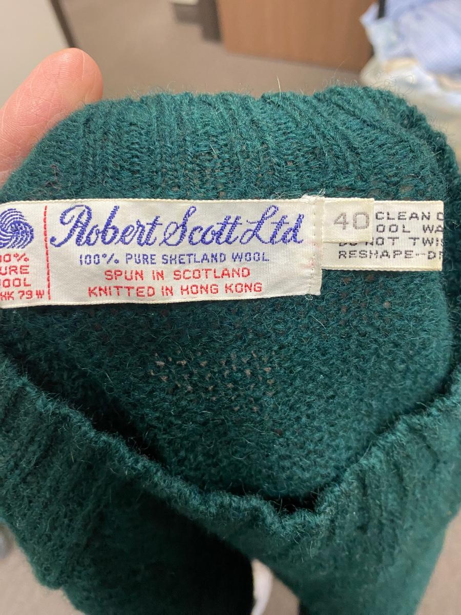Vintage Robert Scott Ltd 100% Shetland Wool Emerald Green Pullover Sweater