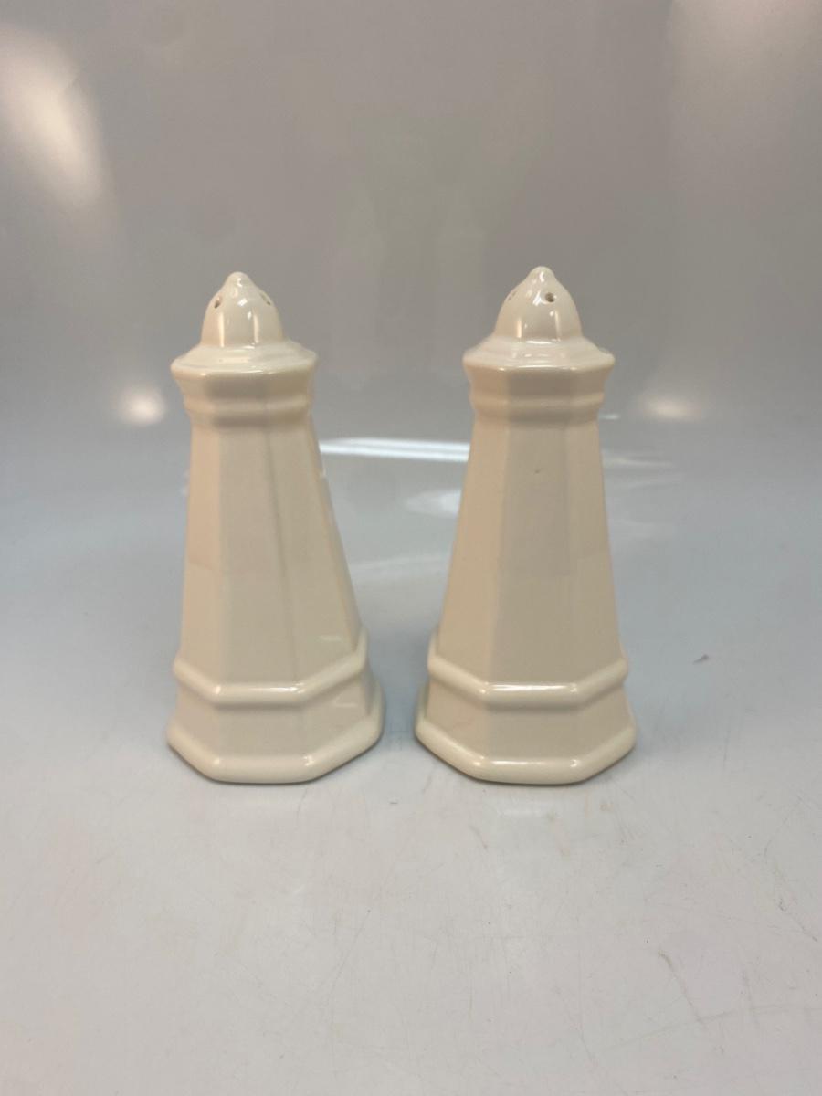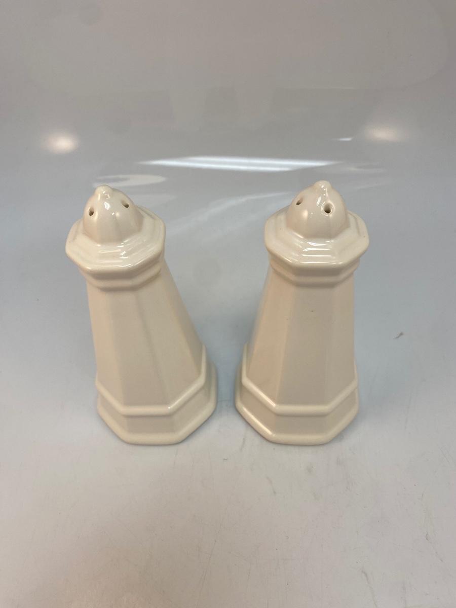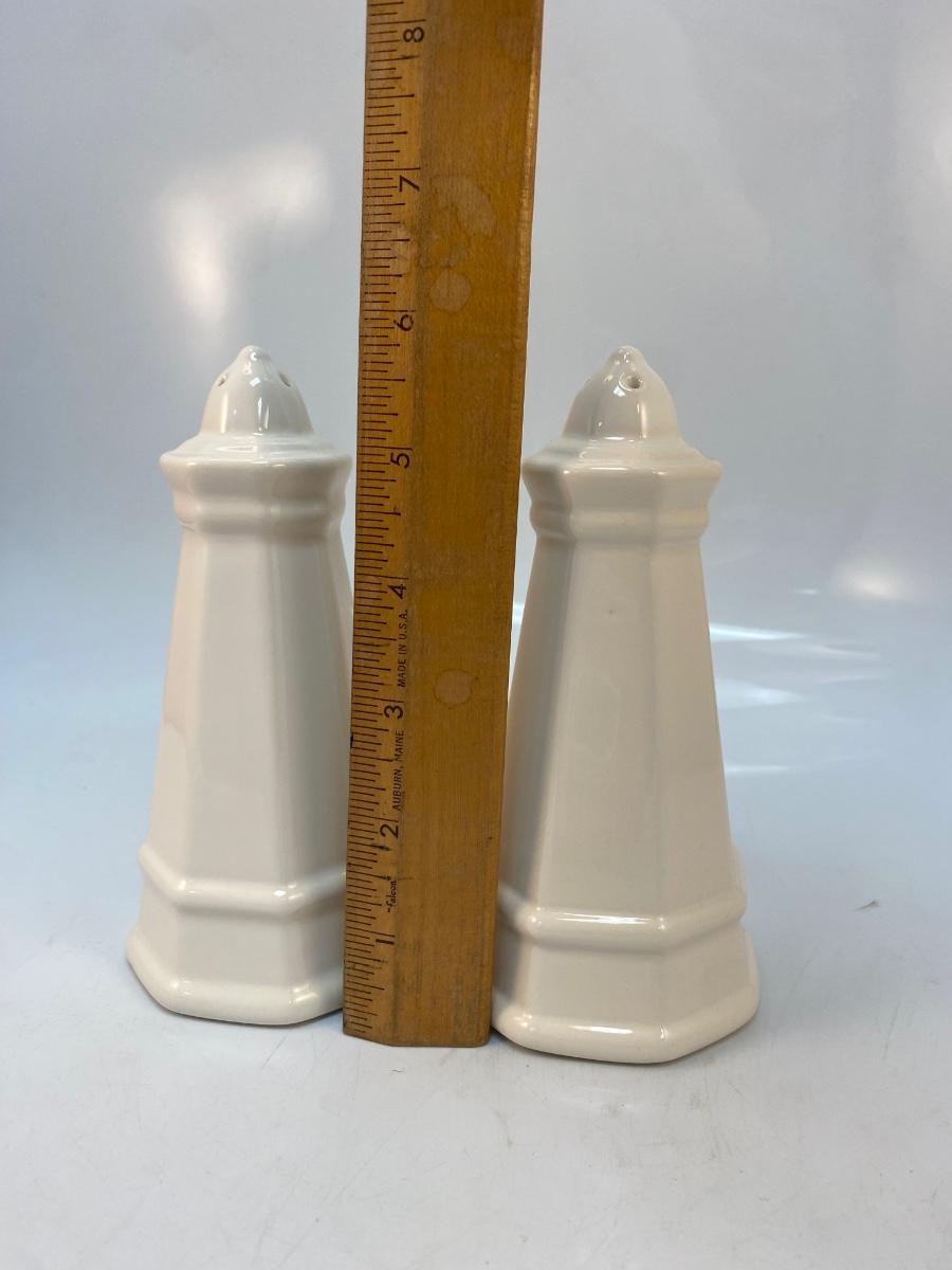 White Pfaltzgraff Heritage Salt & Pepper Shakers. In good condition. Large sized, about 6".