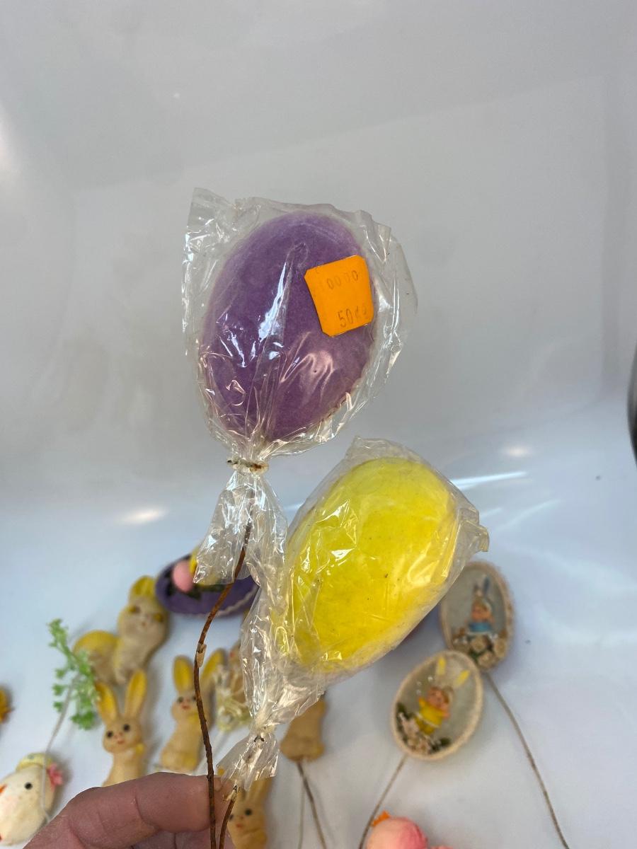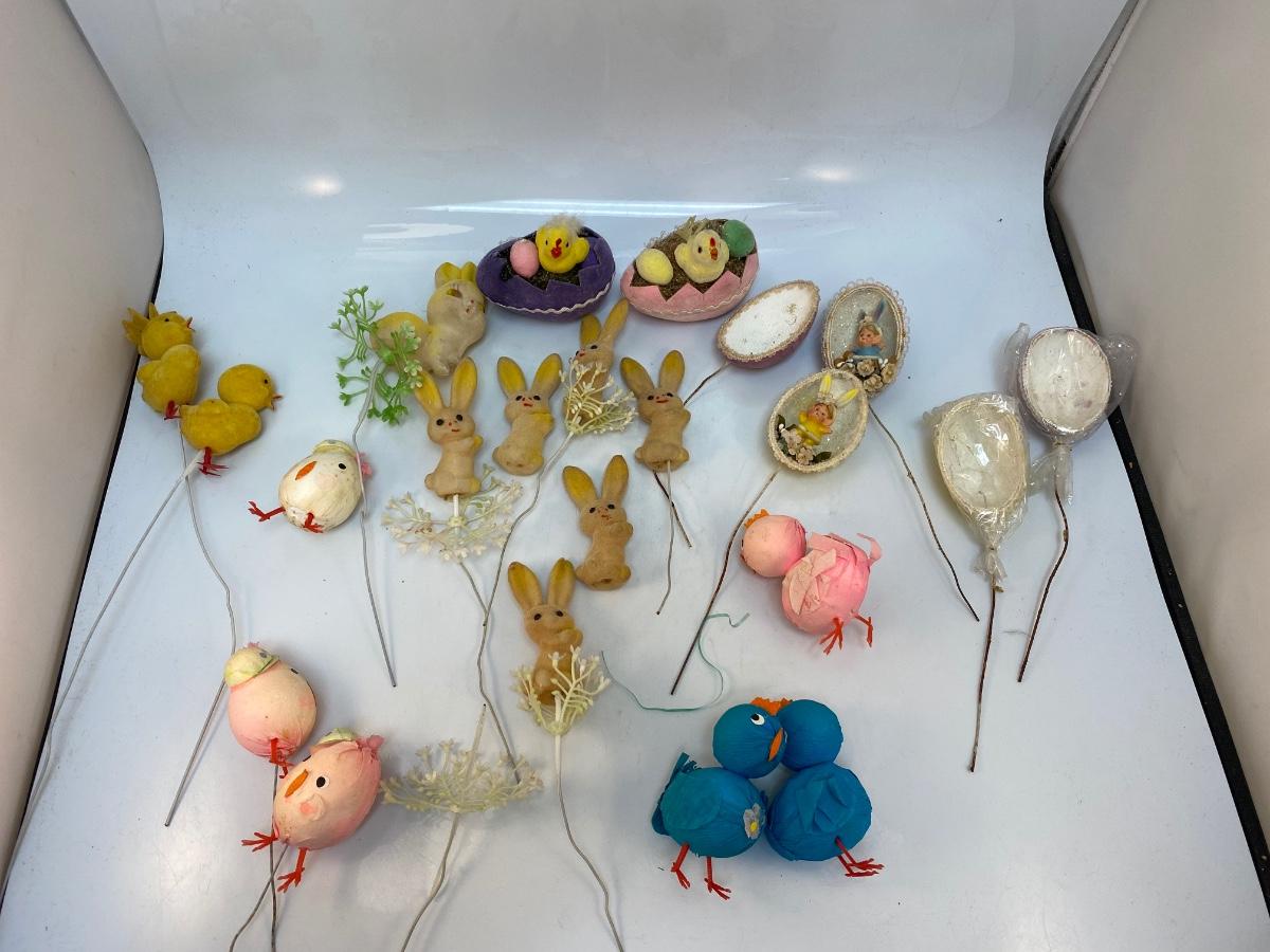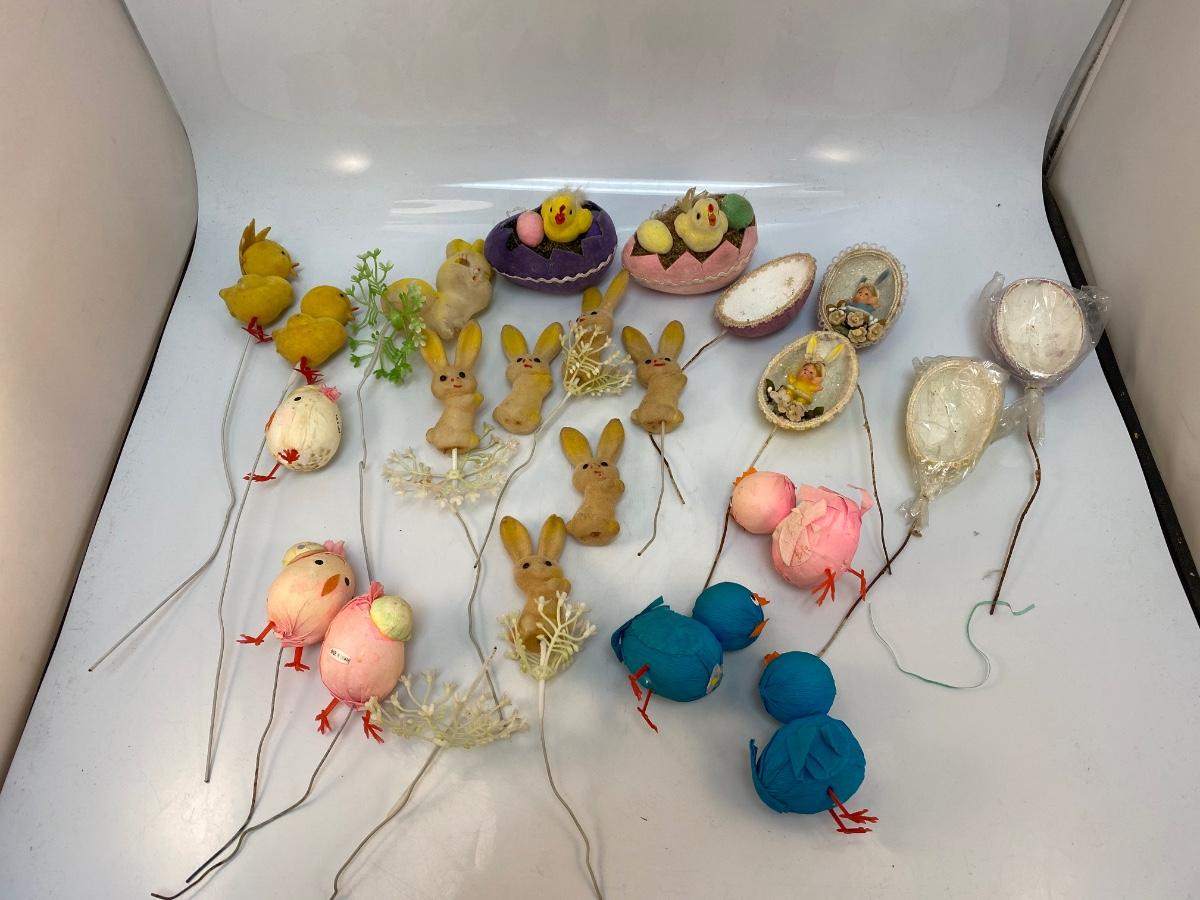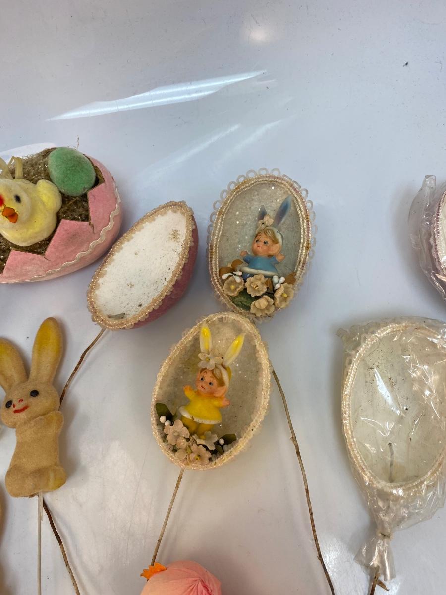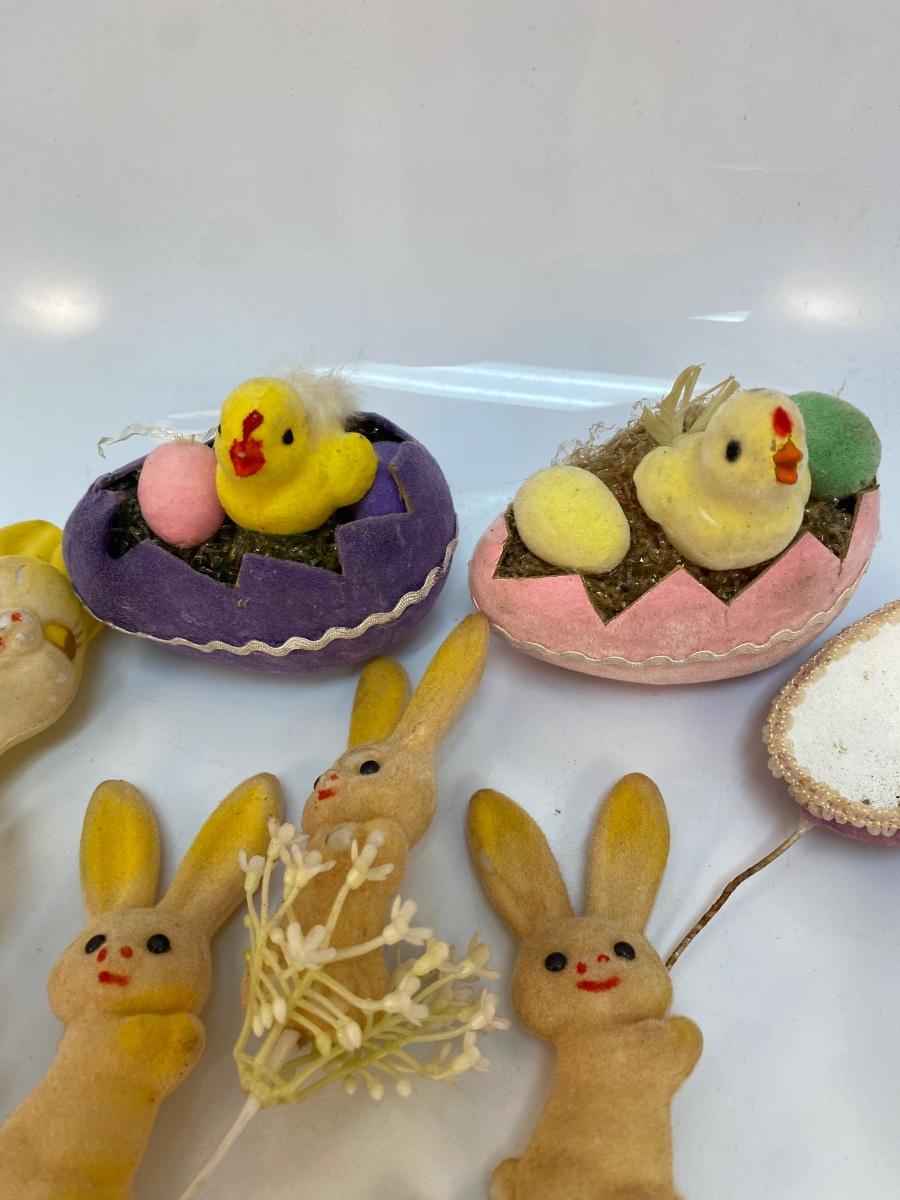 Retro Lot of Small Easter Holiday Flocked Bunny Rabbit Baby Chicks Eggs
