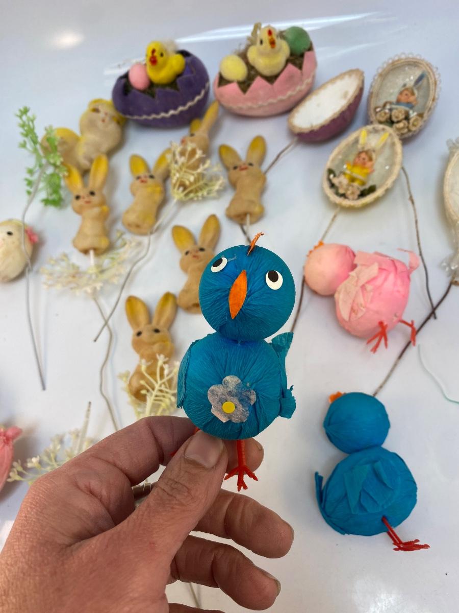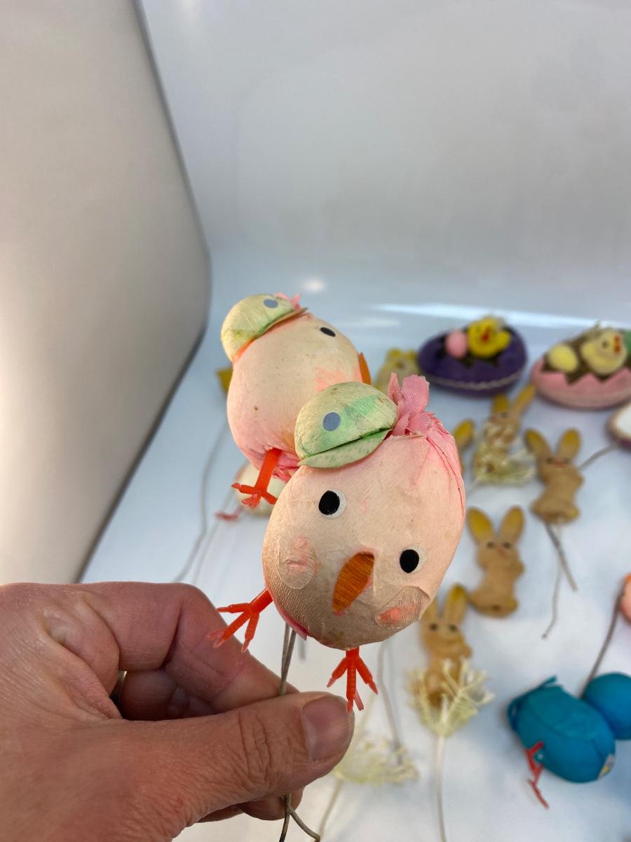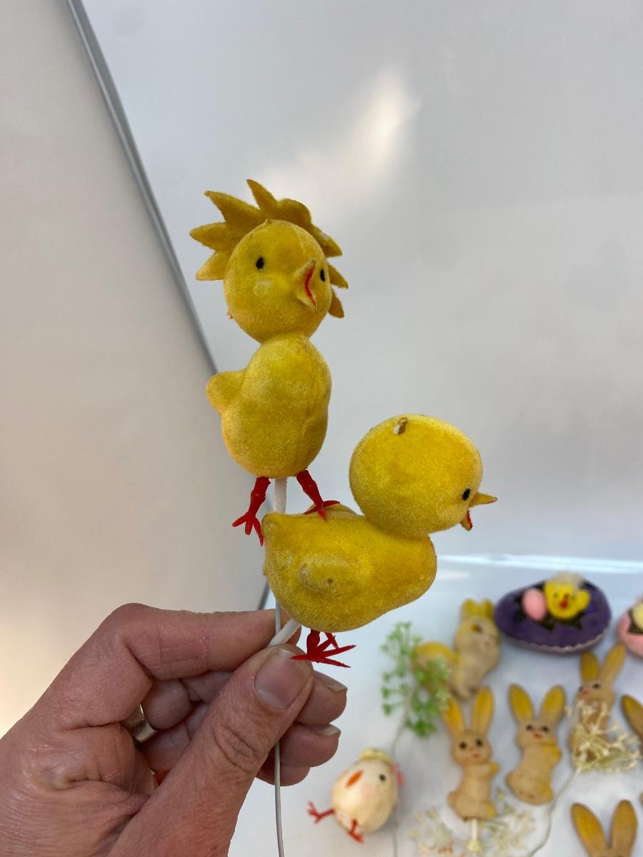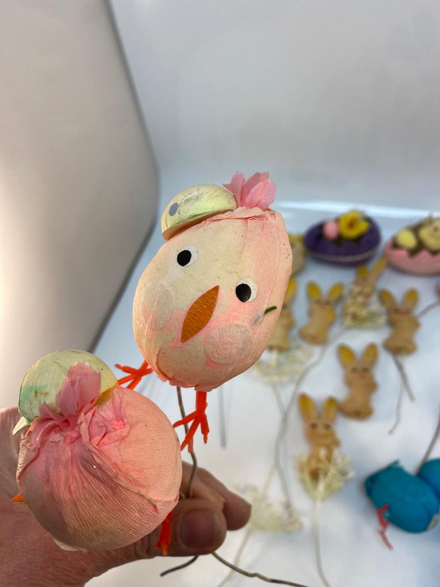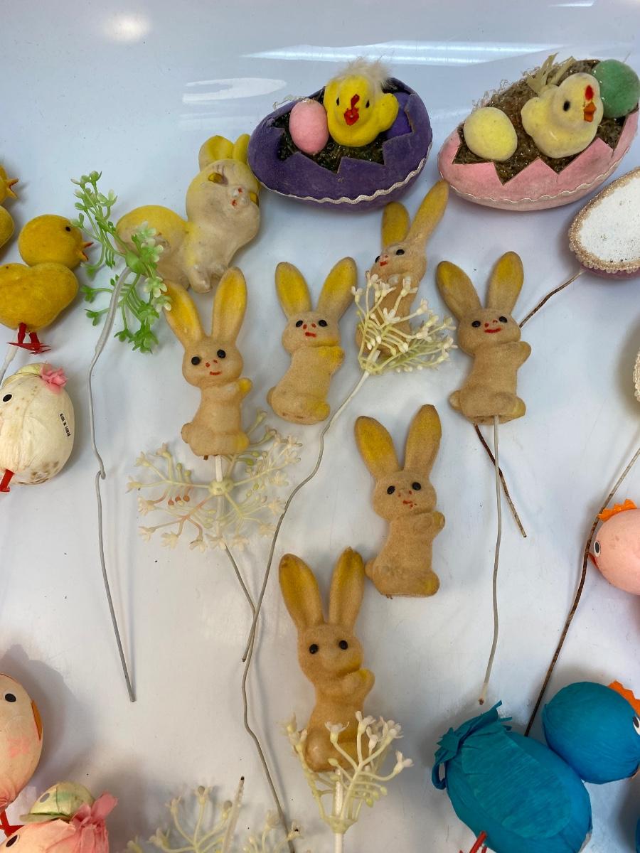 Retro Lot of Small Easter Holiday Flocked Bunny Rabbit Baby Chicks Eggs