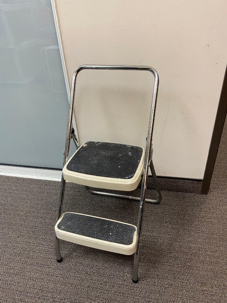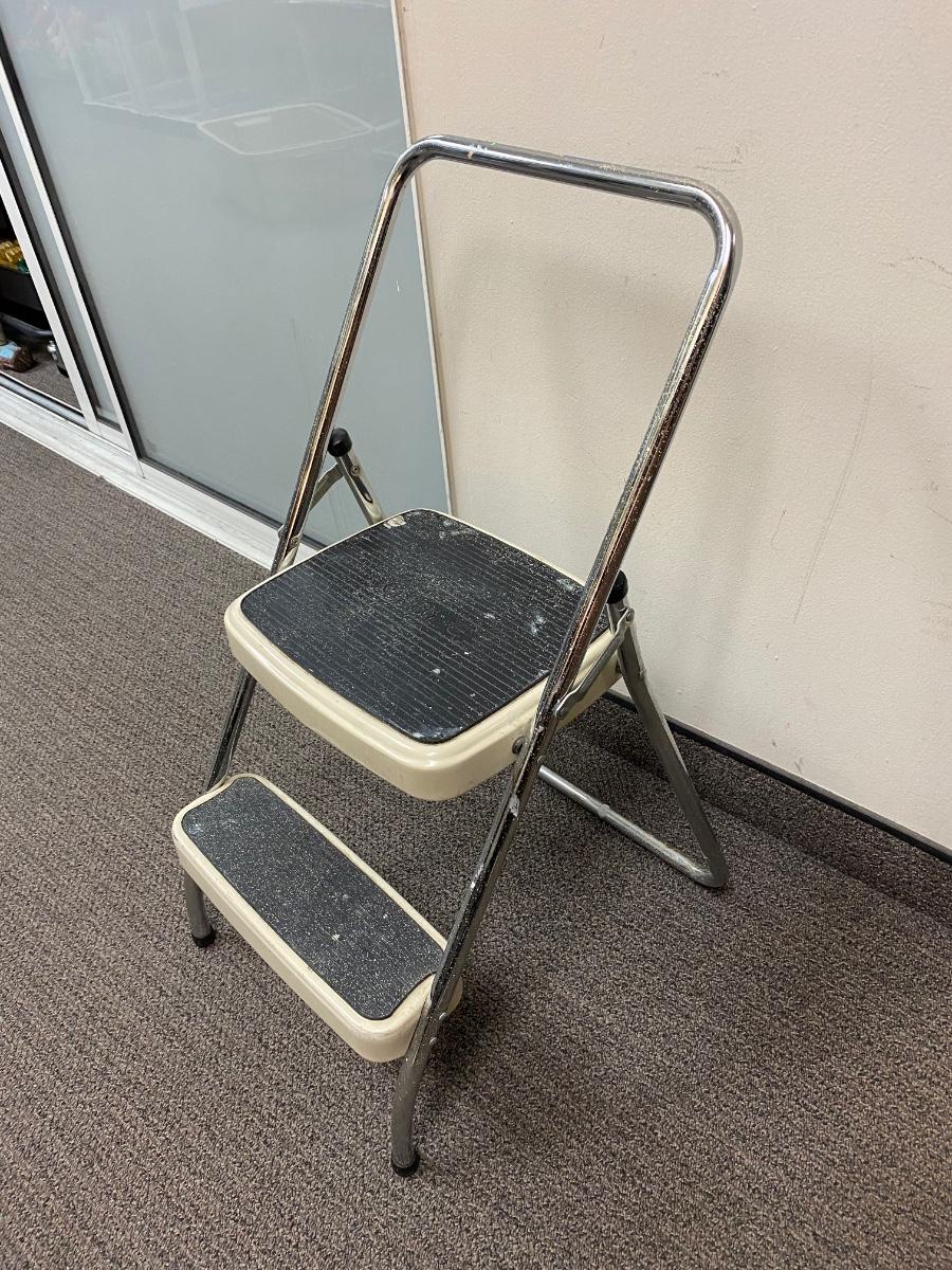 Folding Cosco Two Step Foot Stool Ladder. In used condition, sturdy and folds easily.