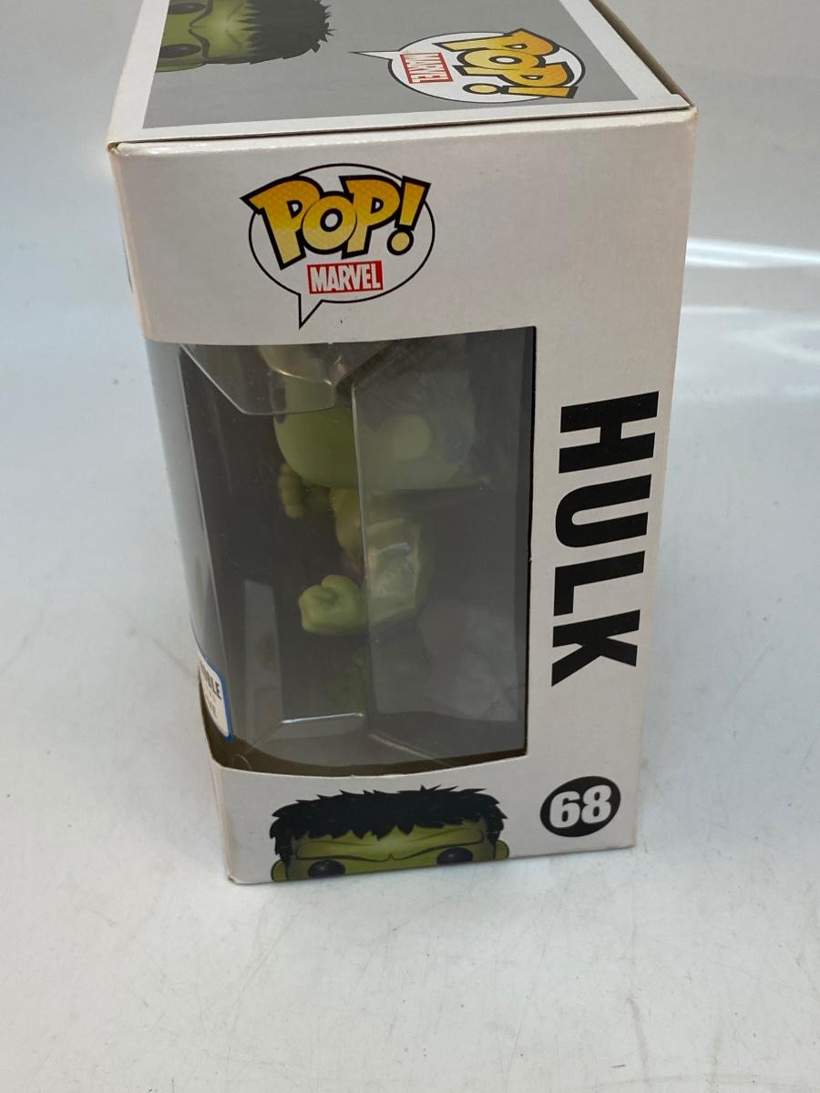 Funko Pop Marvel #68 Avengers Age of Ultron Glow in the Dark Hulk Barnes & Noble Exclusive. In original packaging but the box does have light wear. Hulk is supposed to glow in the dark, he does slightly when set in the light and then put in dark room. He definitely glows under blacklight.
