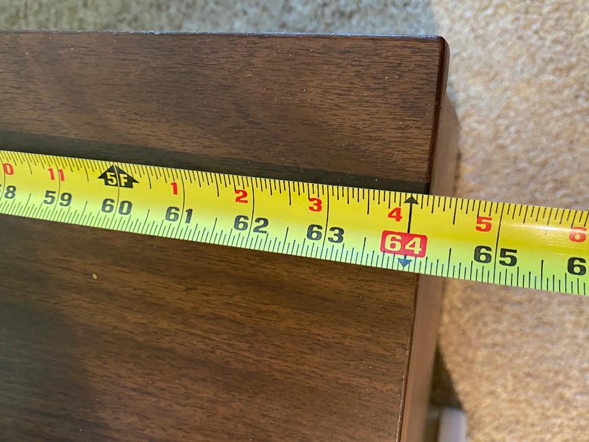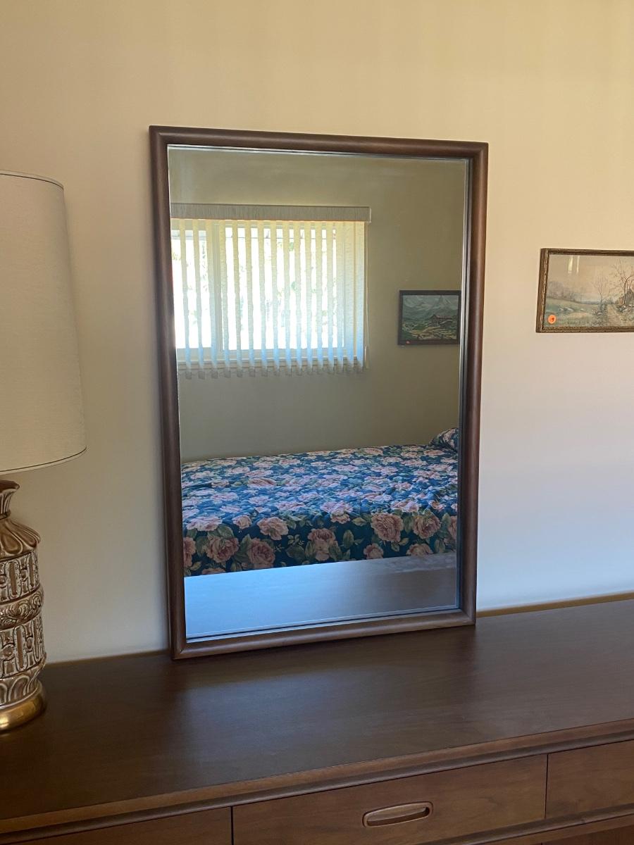 Very nice condition - see photos. Dresser is about 64" long, 18" deep and 30" tall. Mirror roughly 40"x26".