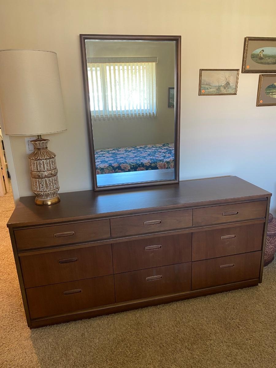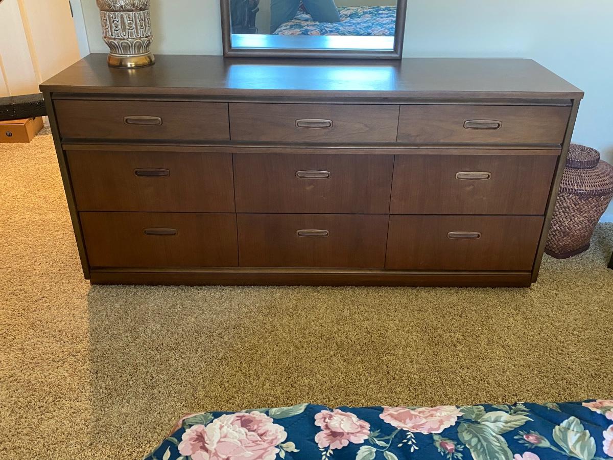Bassett Mid Century Modern 9 drawer Low-boy Dresser with mirror