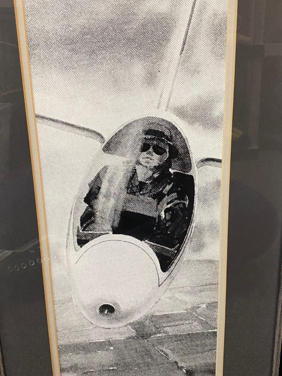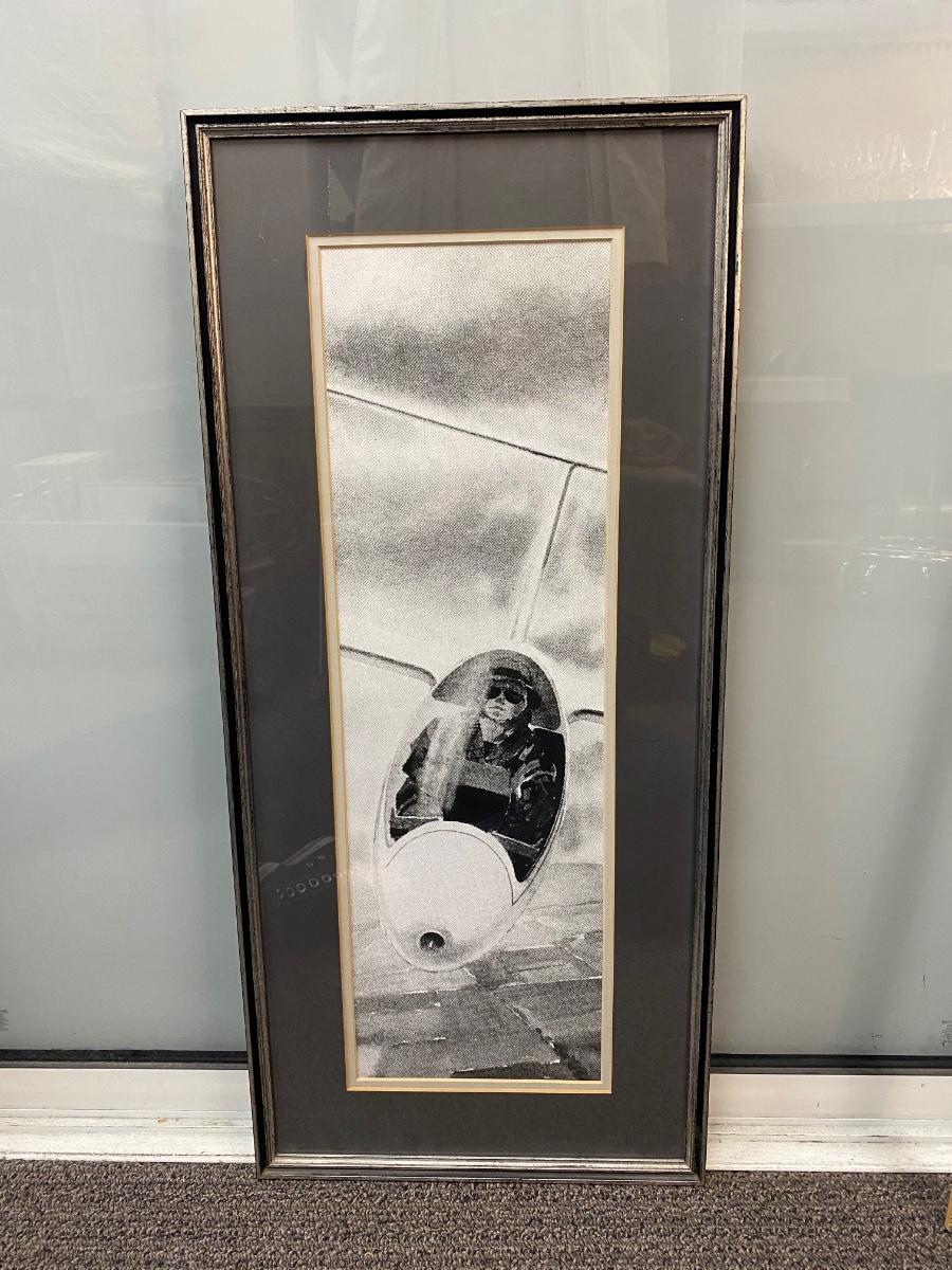 Black & White Digital Art Pilot in Glider Plane Cockpit Framed Art. Good condition. About 13"x29" size.