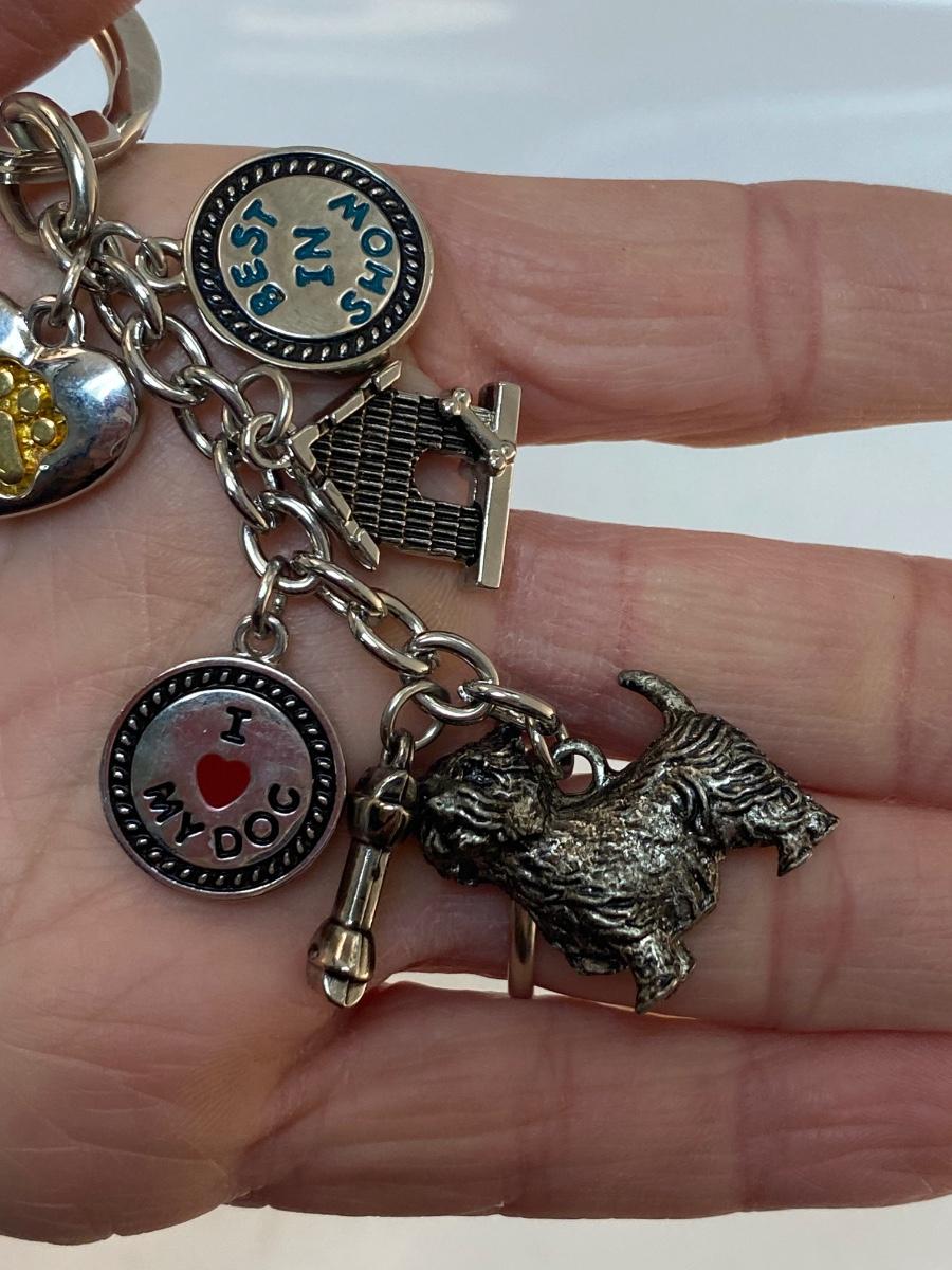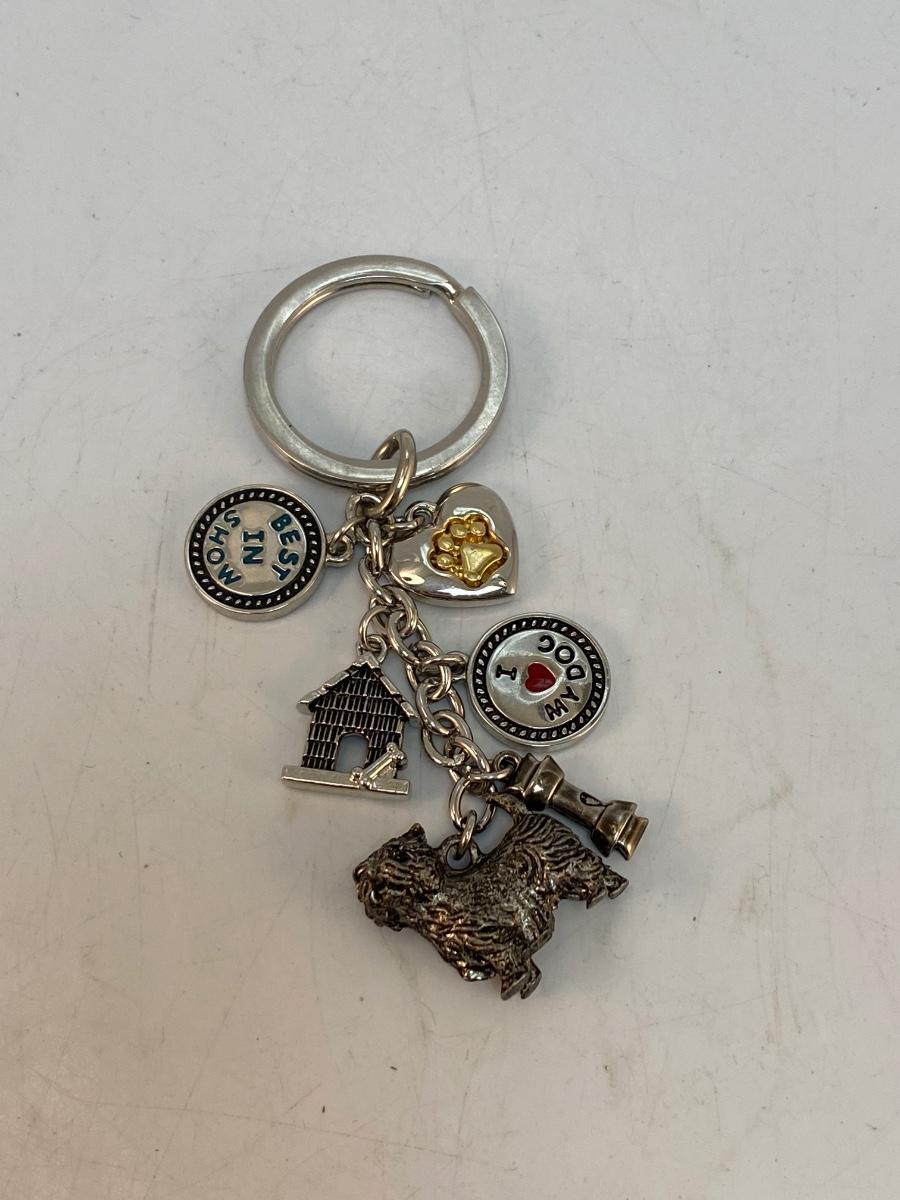 Multi Charm Westie Dog Keychain. Cute silver tone metal keychain for any Westie owner.