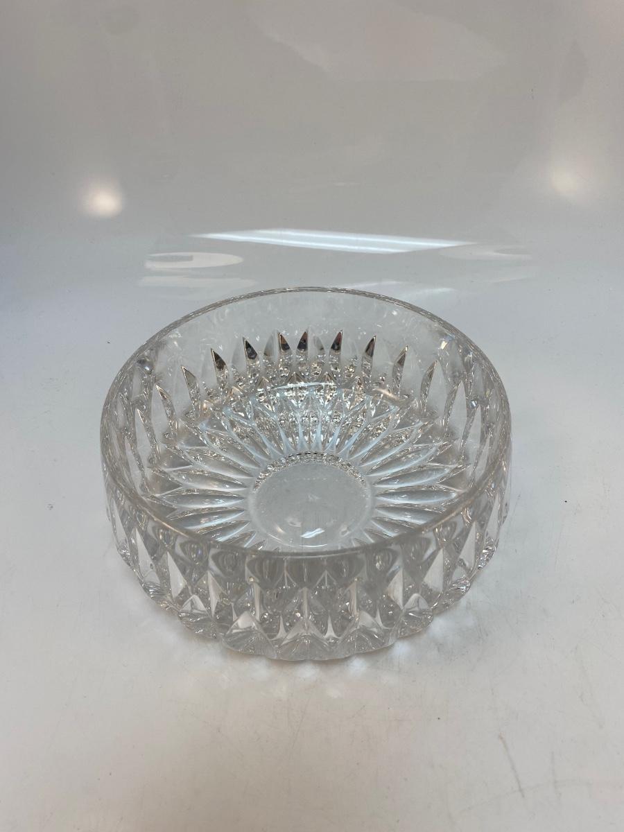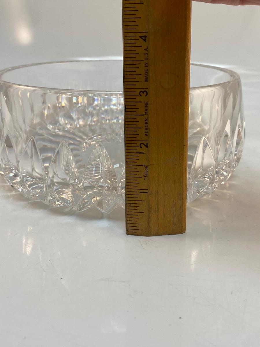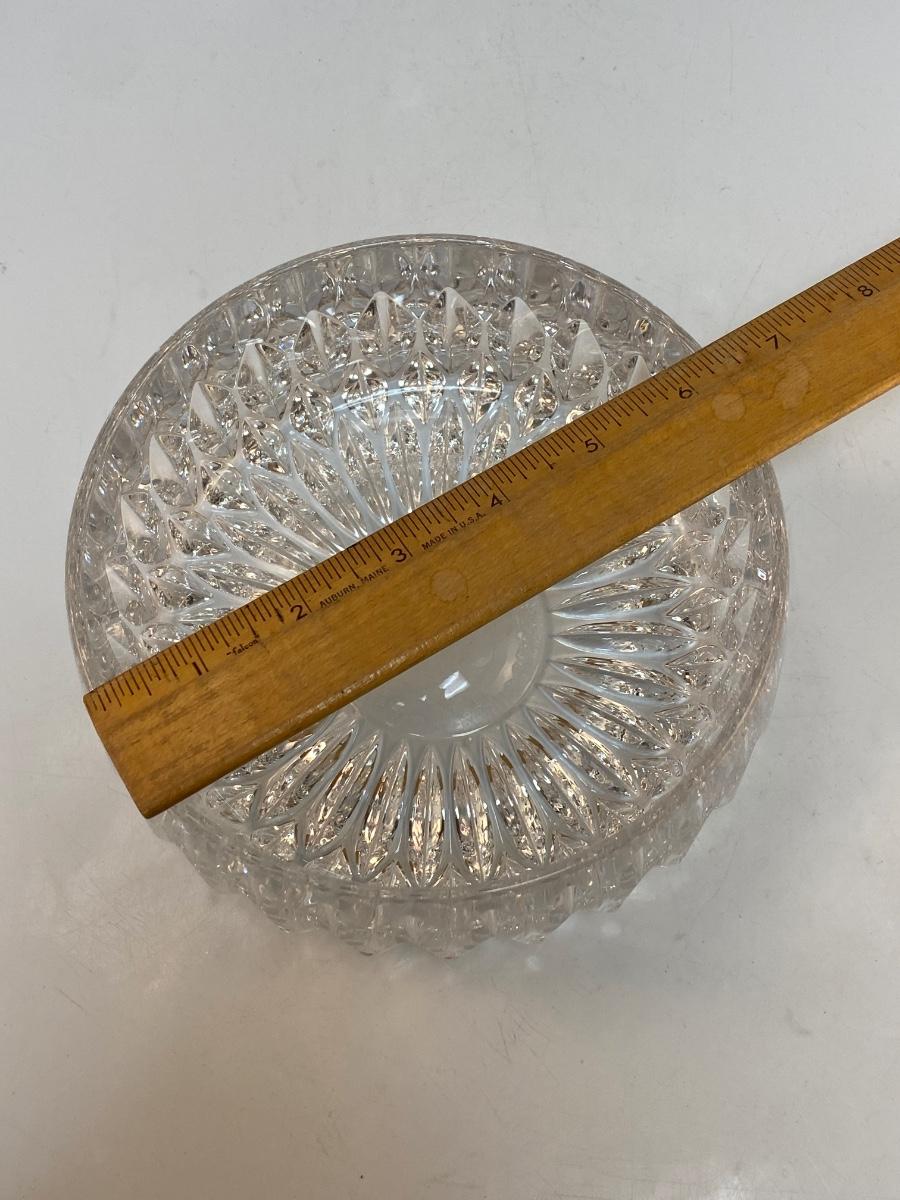 Elegant Cut Crystal Serving Dish Console Bowl. In good condition. Thick cut crystal. No branding marks found. About 6.5" wide and 3" deep.