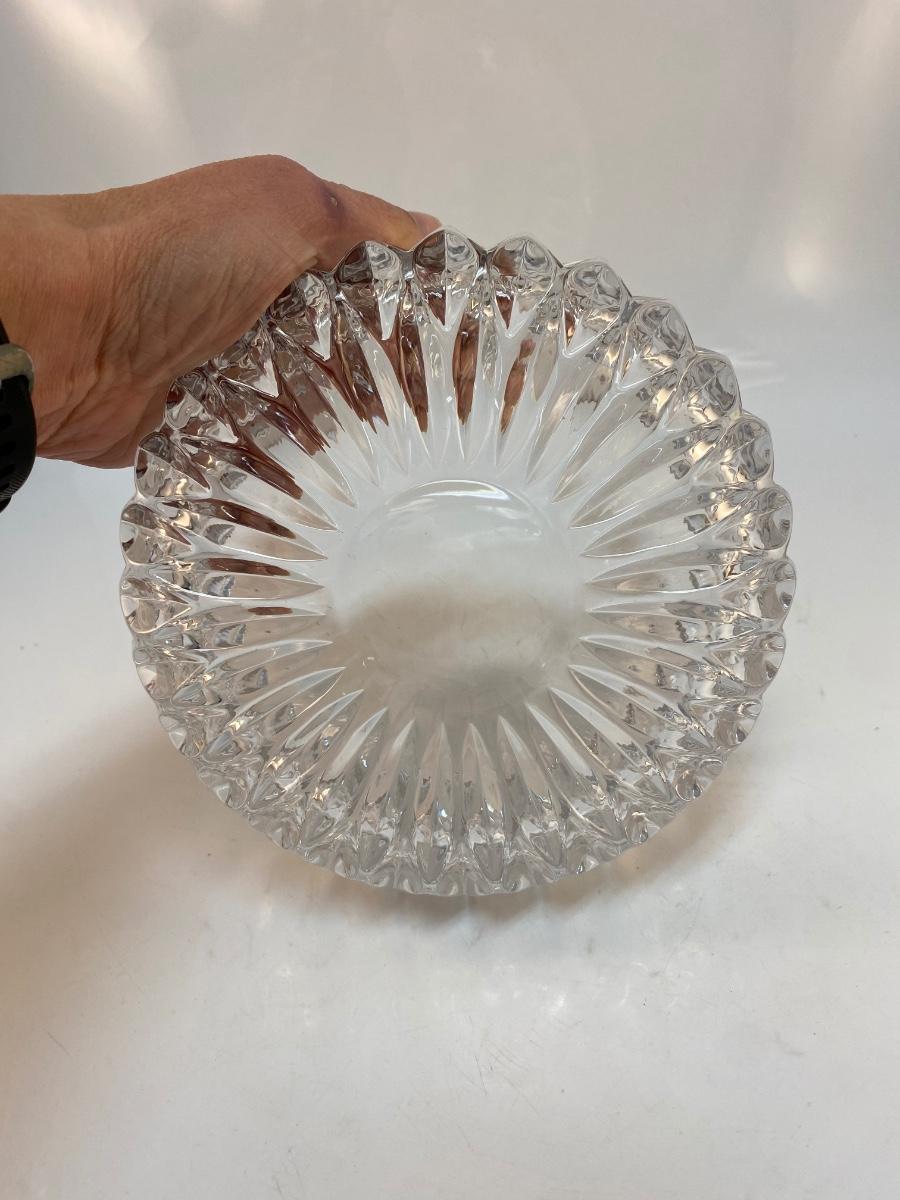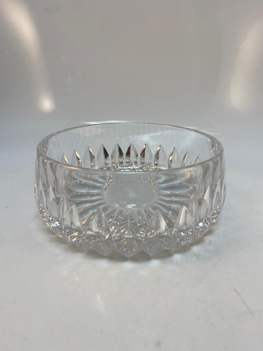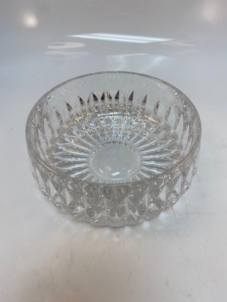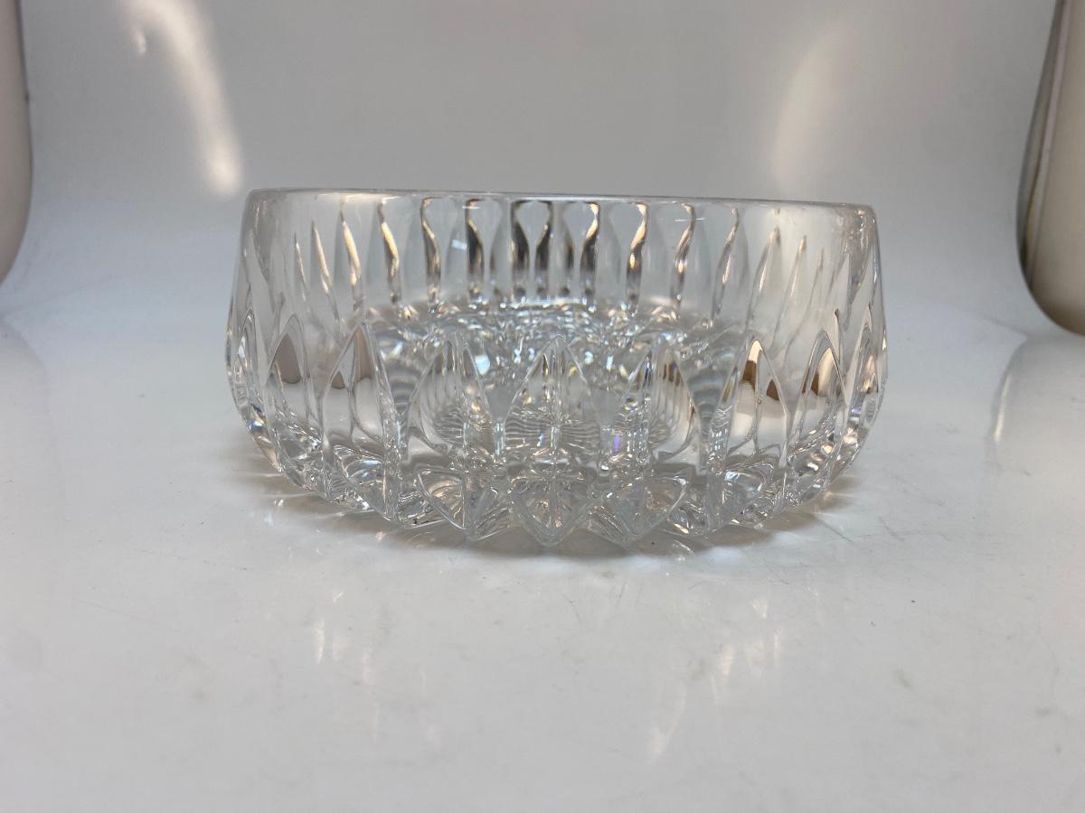 Elegant Cut Crystal Serving Dish Console Bowl. In good condition. Thick cut crystal. No branding marks found. About 6.5" wide and 3" deep.