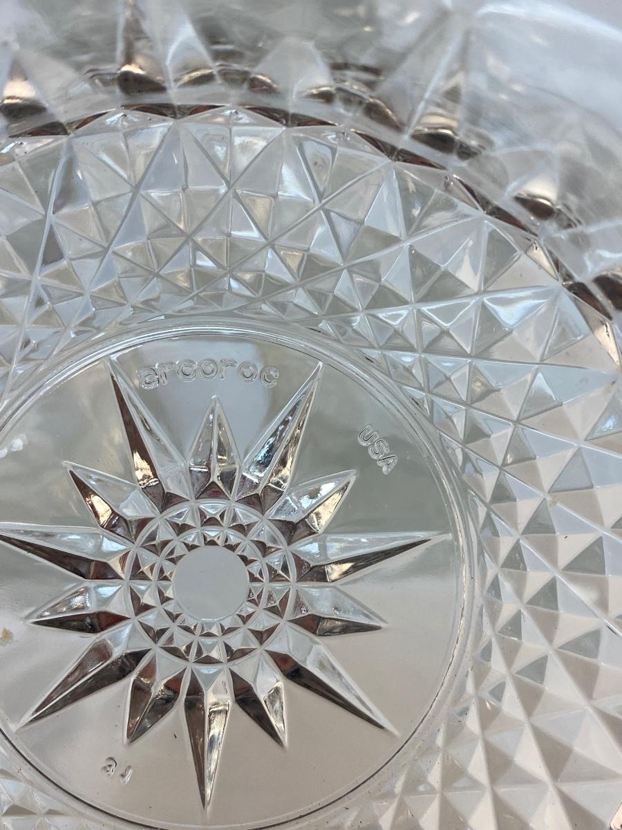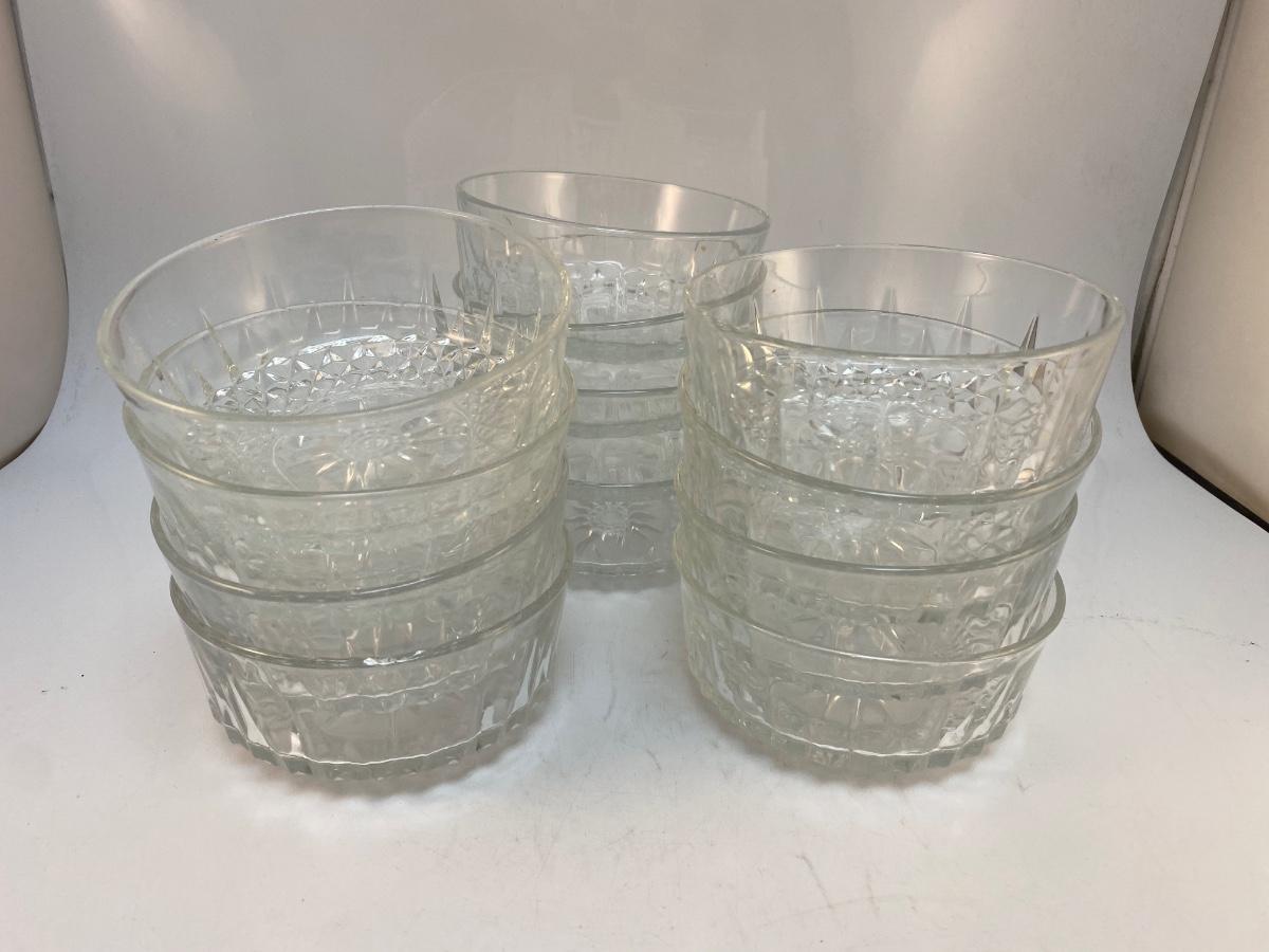 Set of 12 Arcoroc France USA Pressed Glass Salad Cereal Soup Bowls. In good used conditions. Some are newer than others as some are marked France, and some are marked USA.